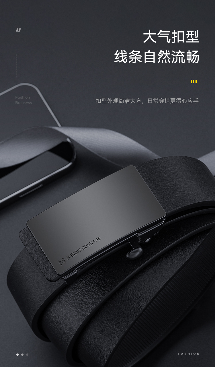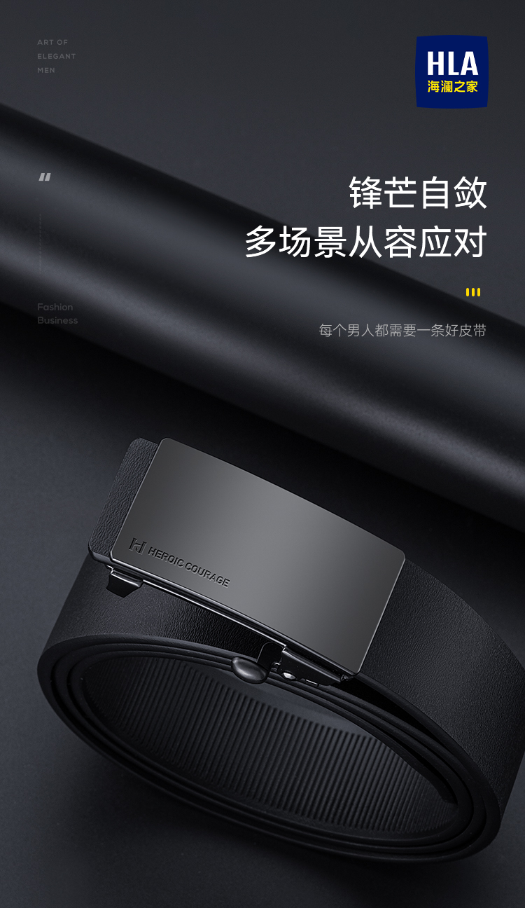 Heilan Home Men's Belt Toothless Automatic Buckle Inner Wear Belt 2025 New Business Versatile Genuine Leather Trouser Belt