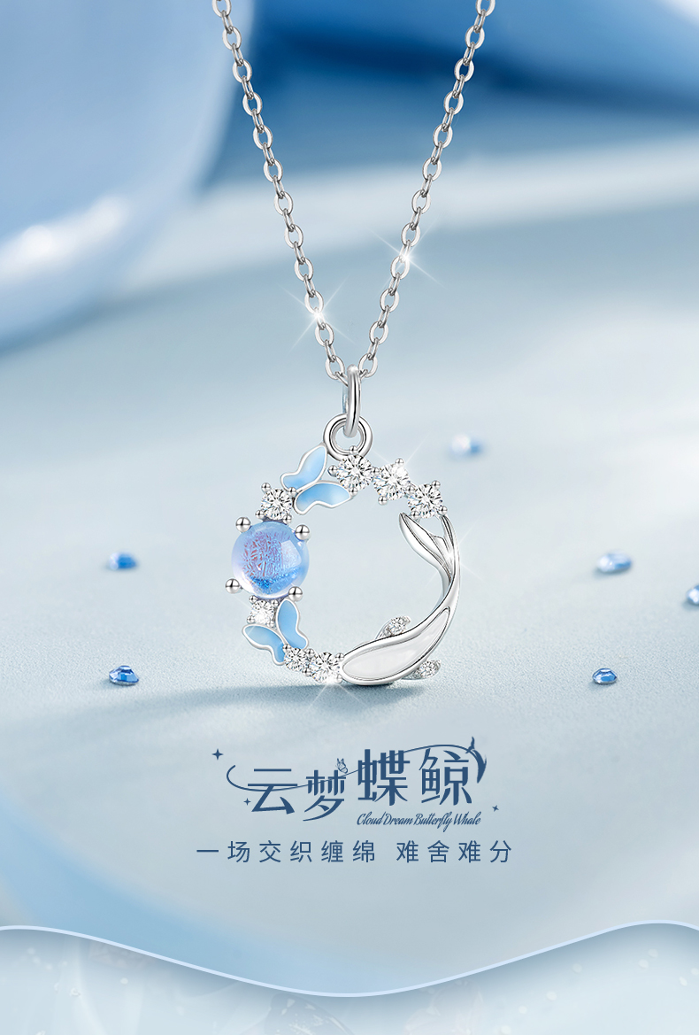 Cloud Dream Butterfly Whale Necklace for Women 999 Pure Silver Light Luxury Niche 2025 New Popular Clavicle Chain Birthday Gift for Girlfriend