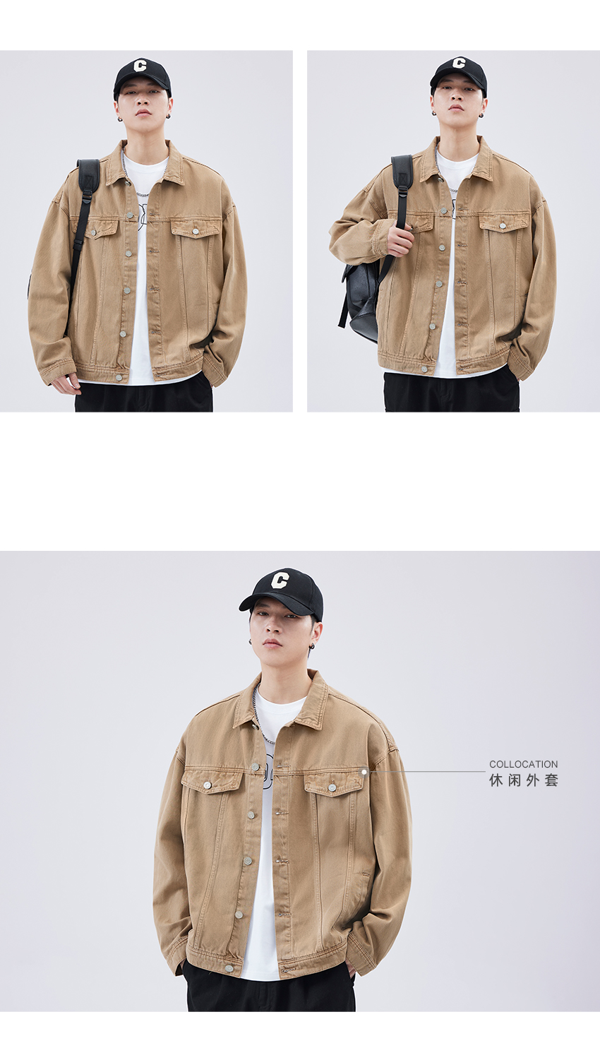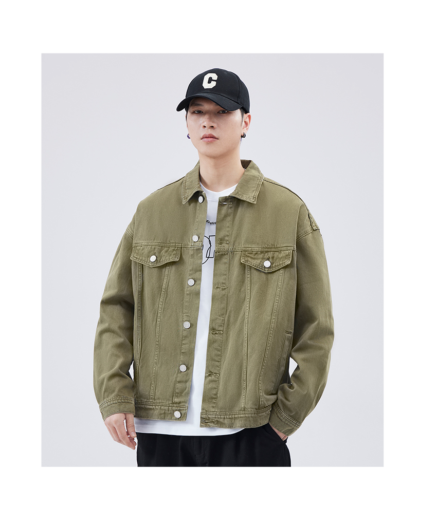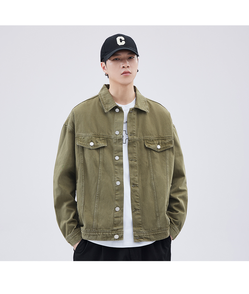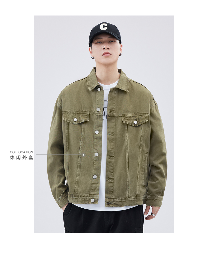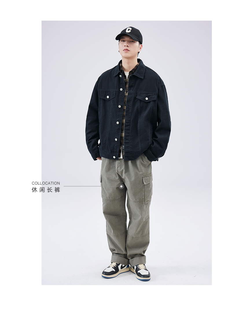 Fafc2024 Autumn Pure Cotton Denim Shirt Men's American Style Solid Color Trendy Casual Versatile Jacket Long Sleeve Coat
