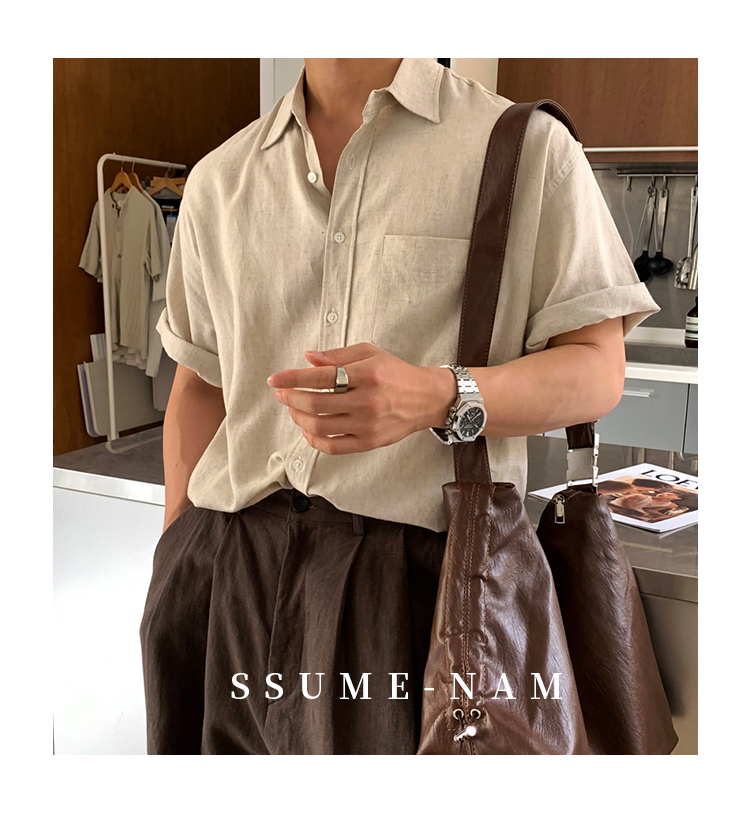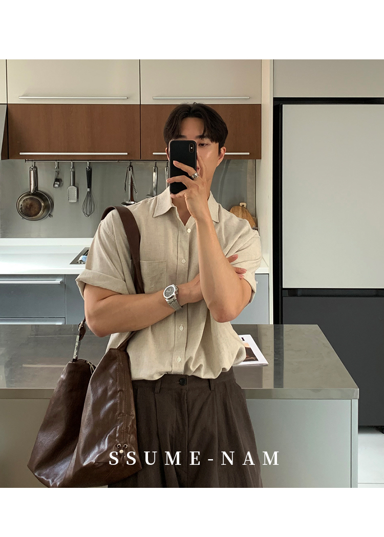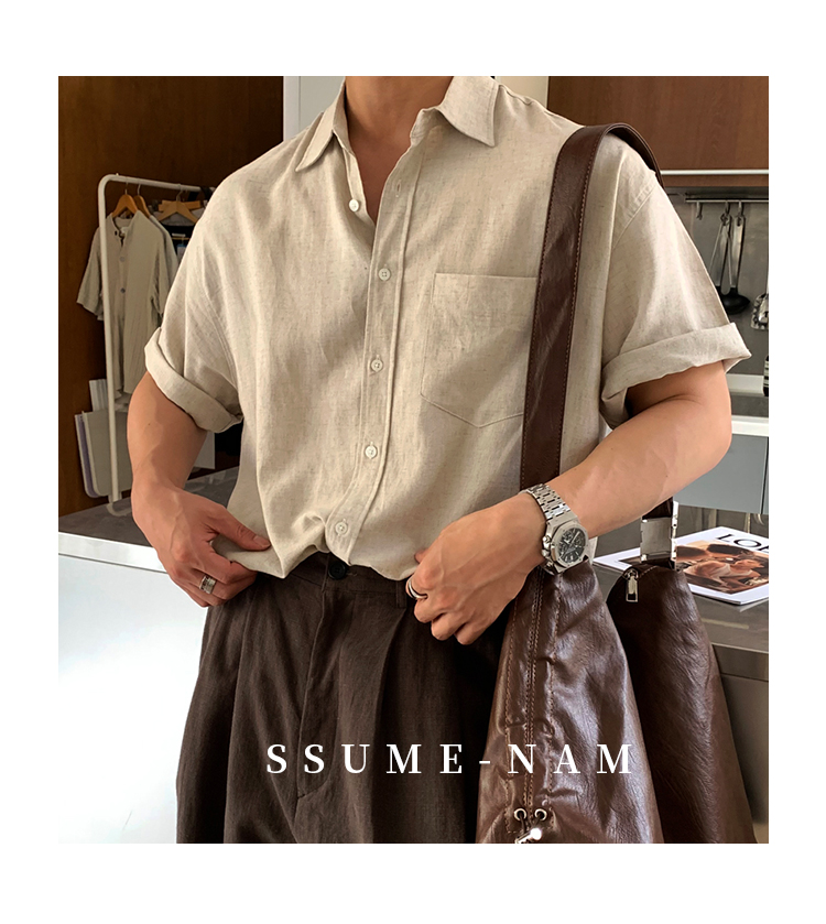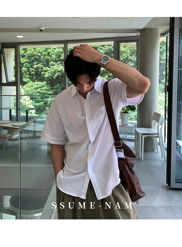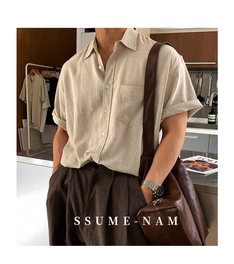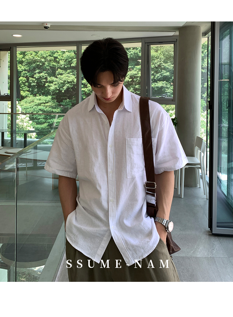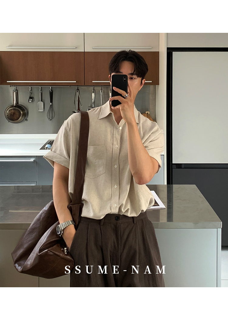 Ssumenam'Old Money Style Linen Fabric' Short-Sleeve Shirt for Men, Summer Thin Breathable High-End Shirt