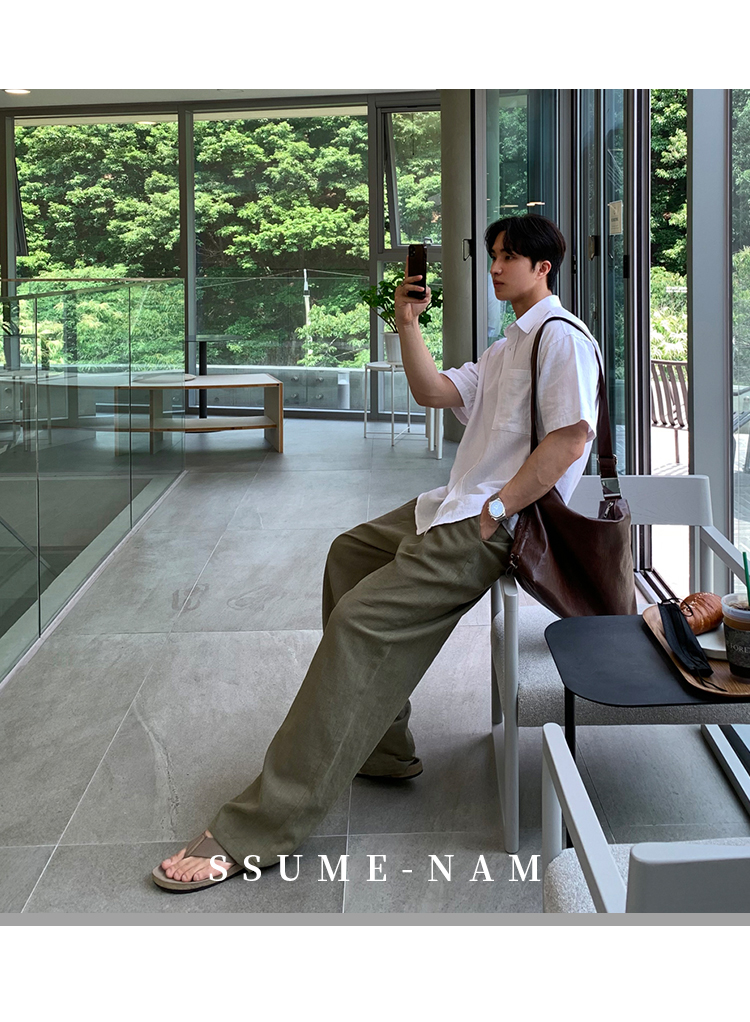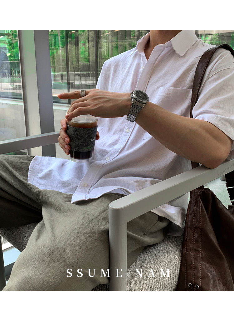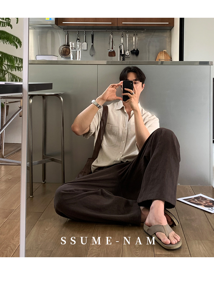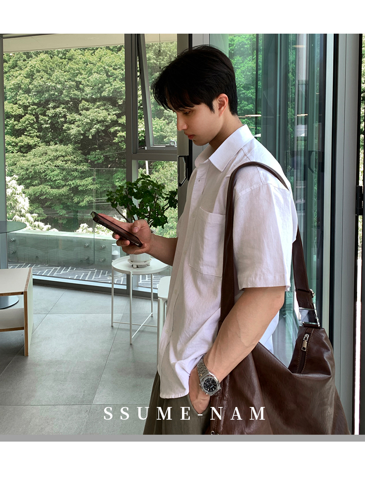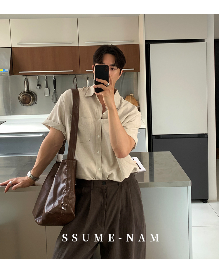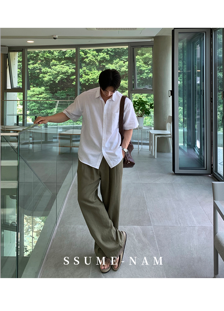 Ssumenam'Old Money Style Linen Fabric' Short-Sleeve Shirt for Men, Summer Thin Breathable High-End Shirt