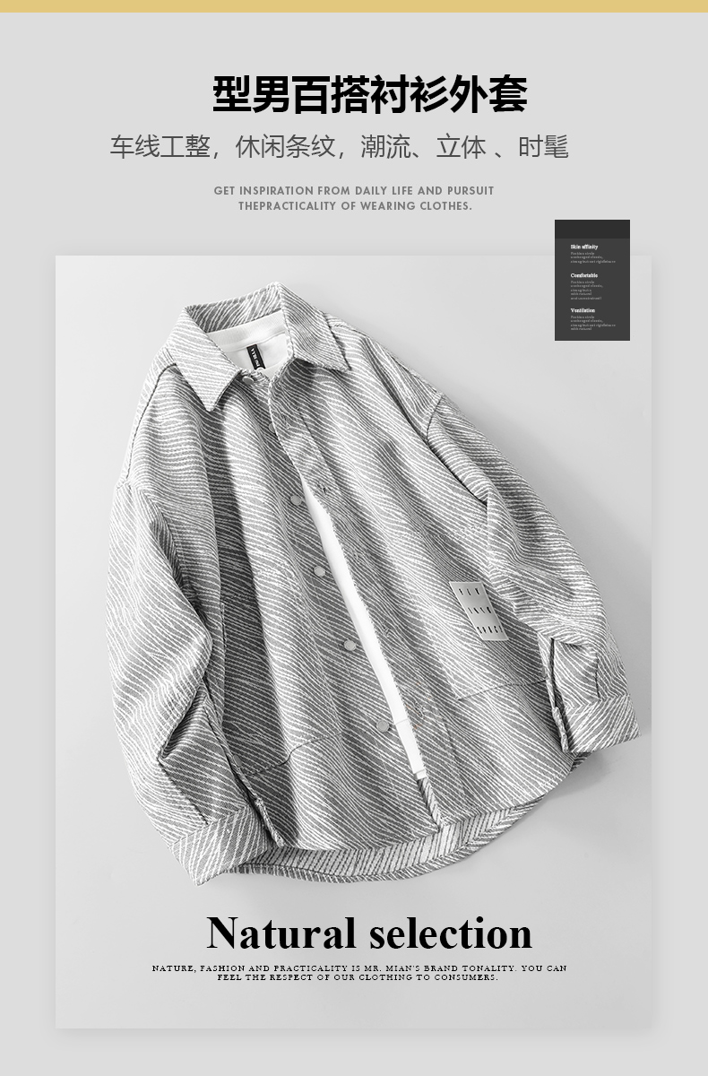American Casual Style Shirt Jacket for Men, Spring and Autumn, Retro, Mature Style, Cool and Loose Hong Kong Style Shirt Jacket