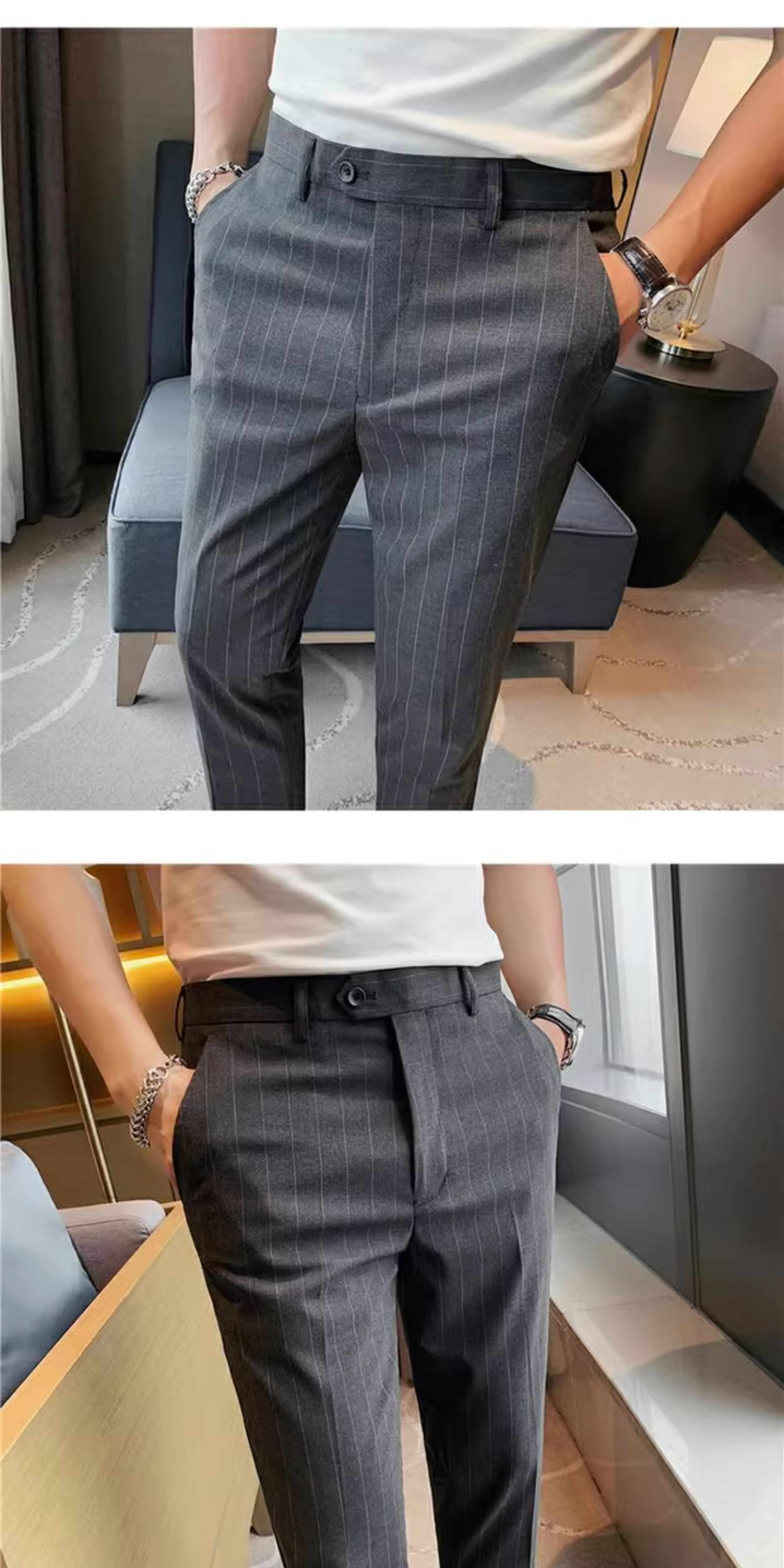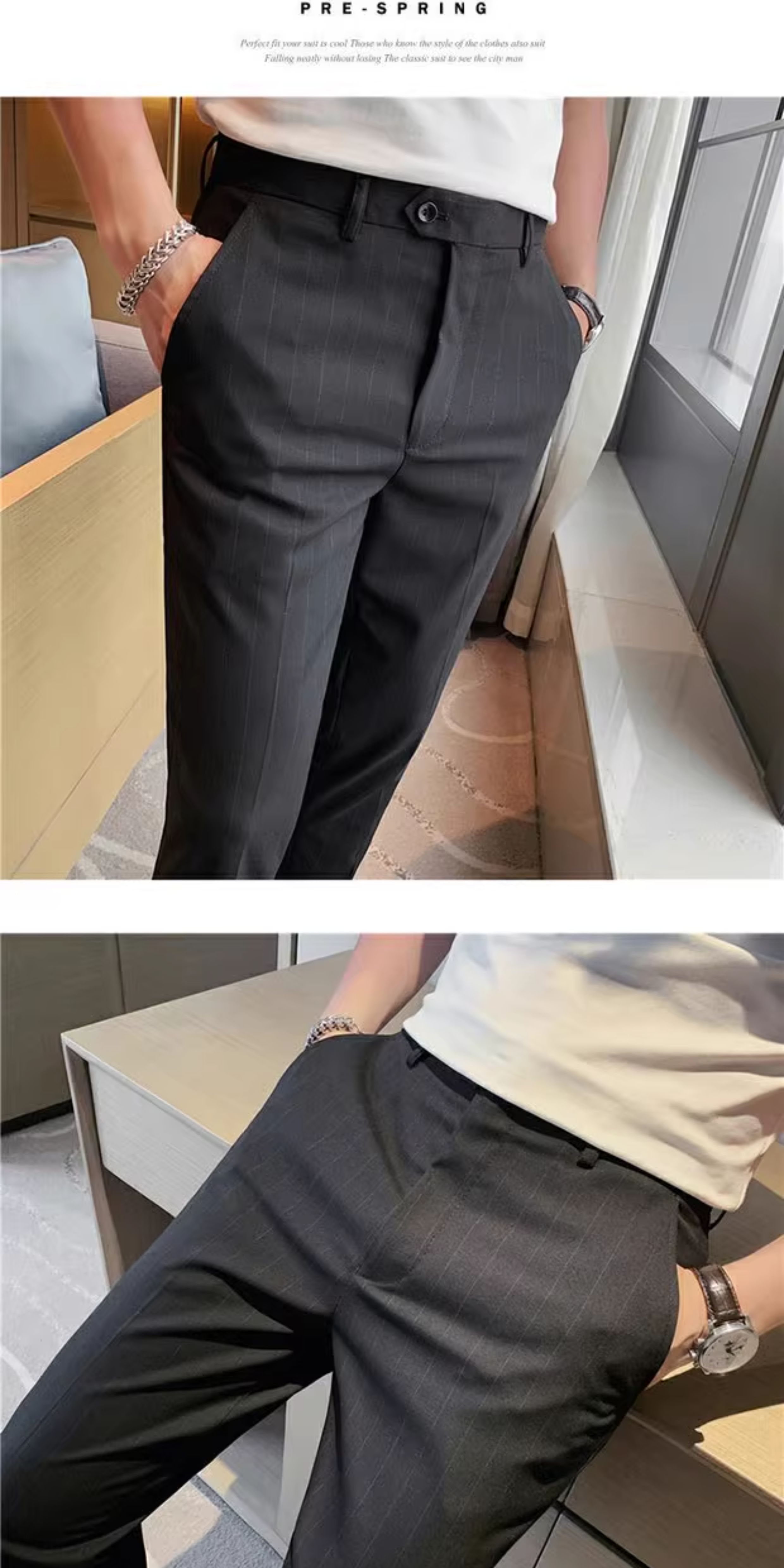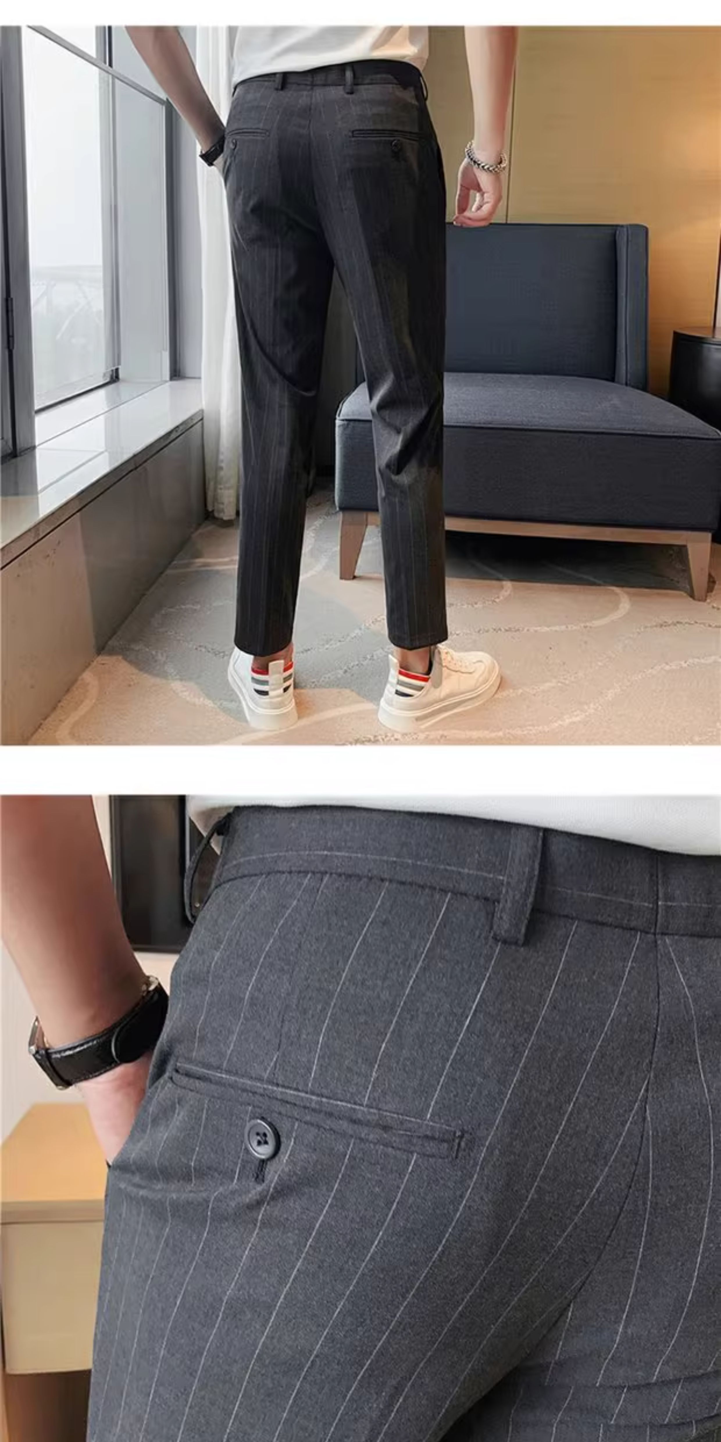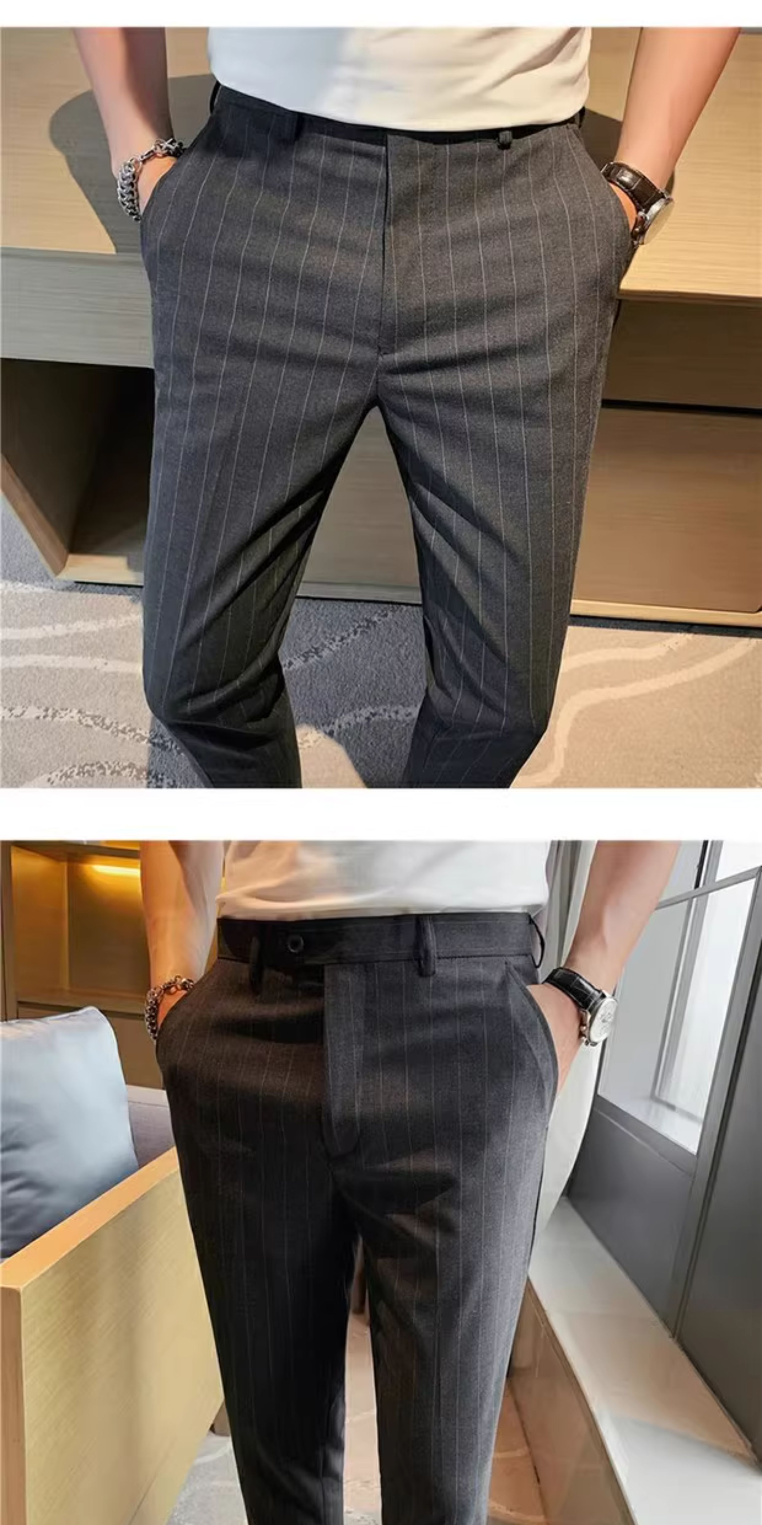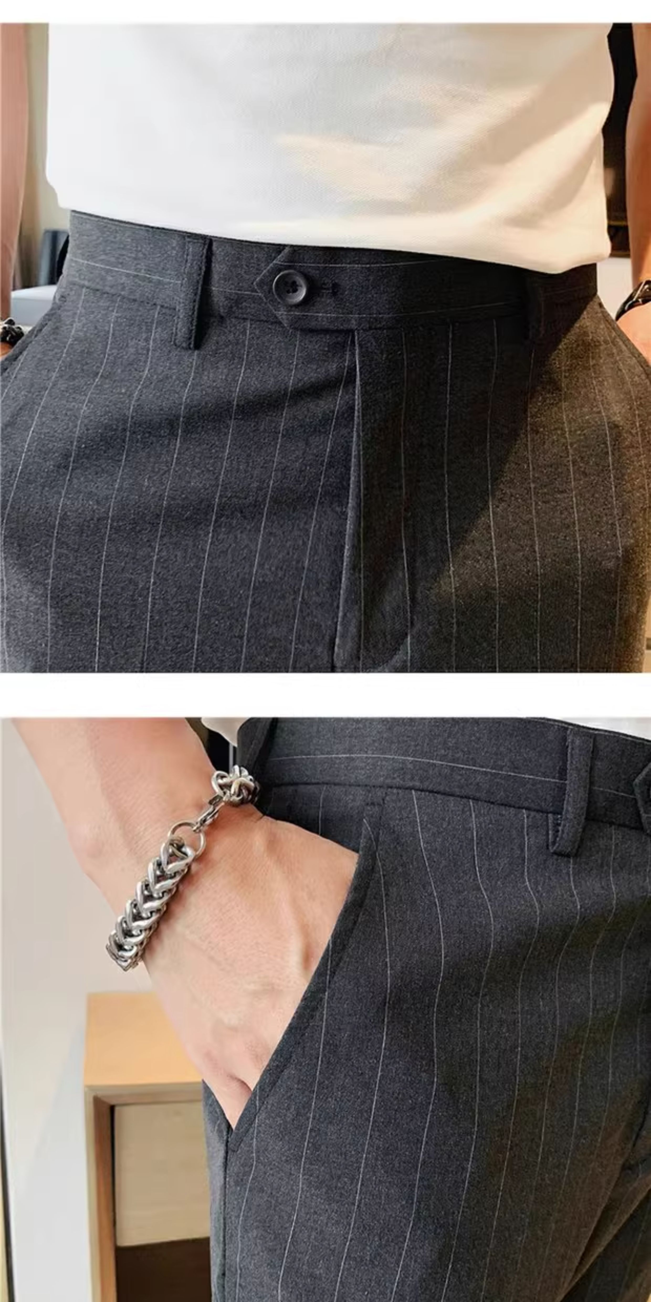 2025 Striped Casual Dress Pants with a High-End Feel, Business Formal Slim-Fit Cropped Pants for Men, Fleece-Lined Suit Trousers
