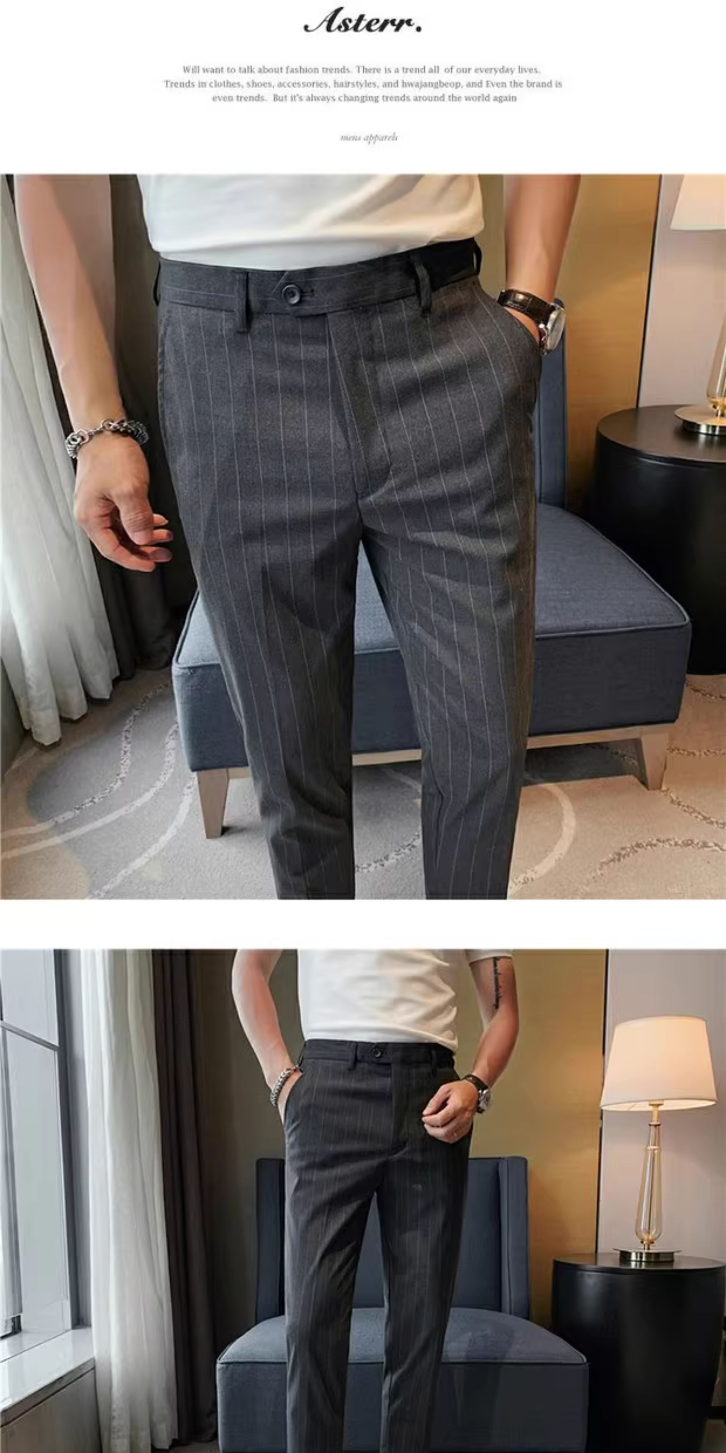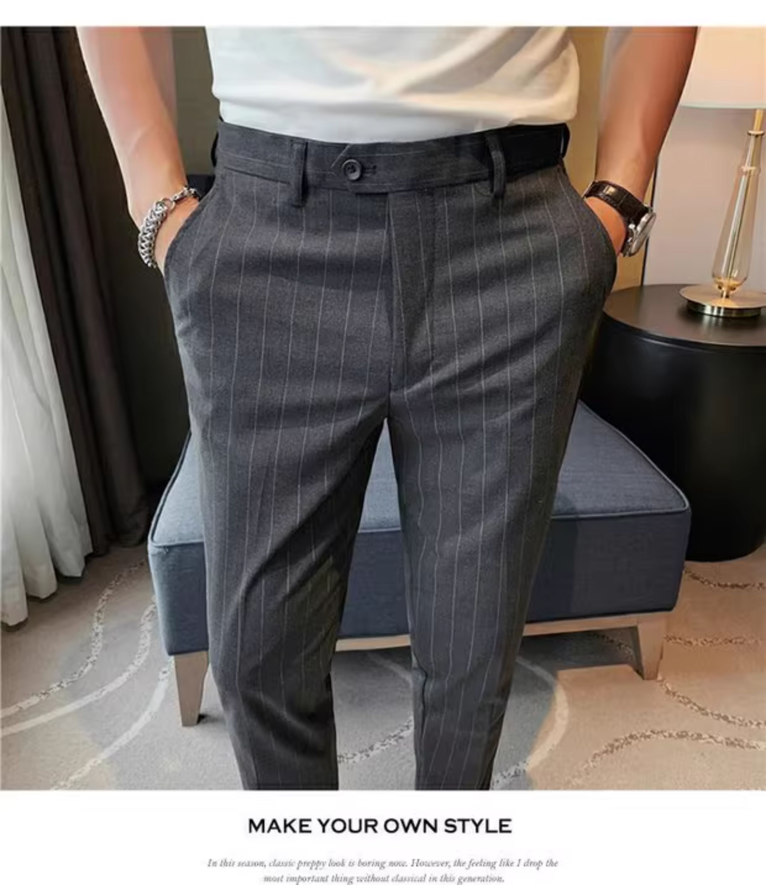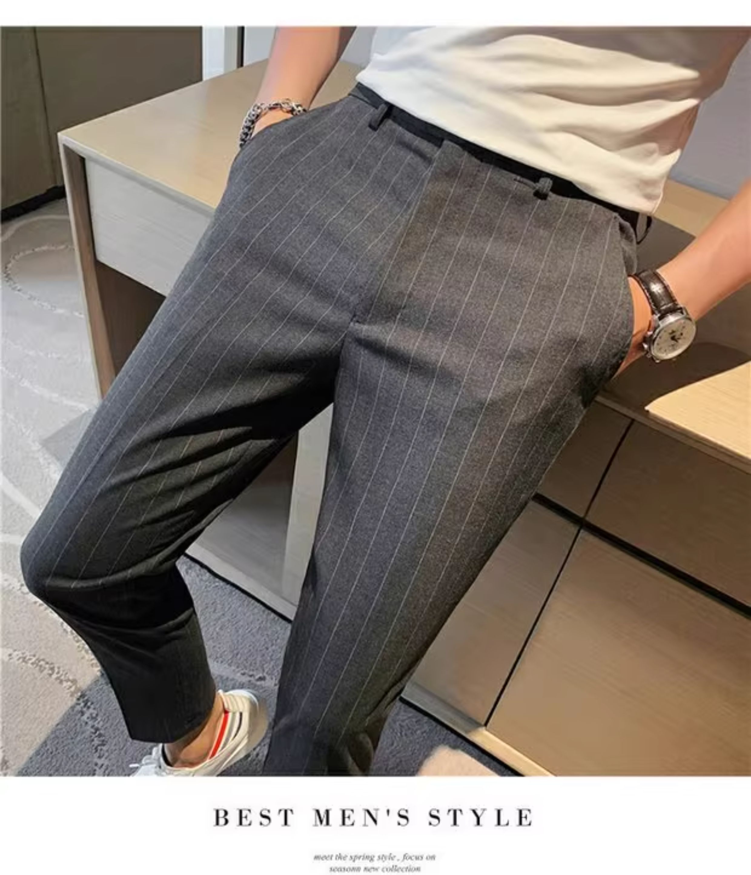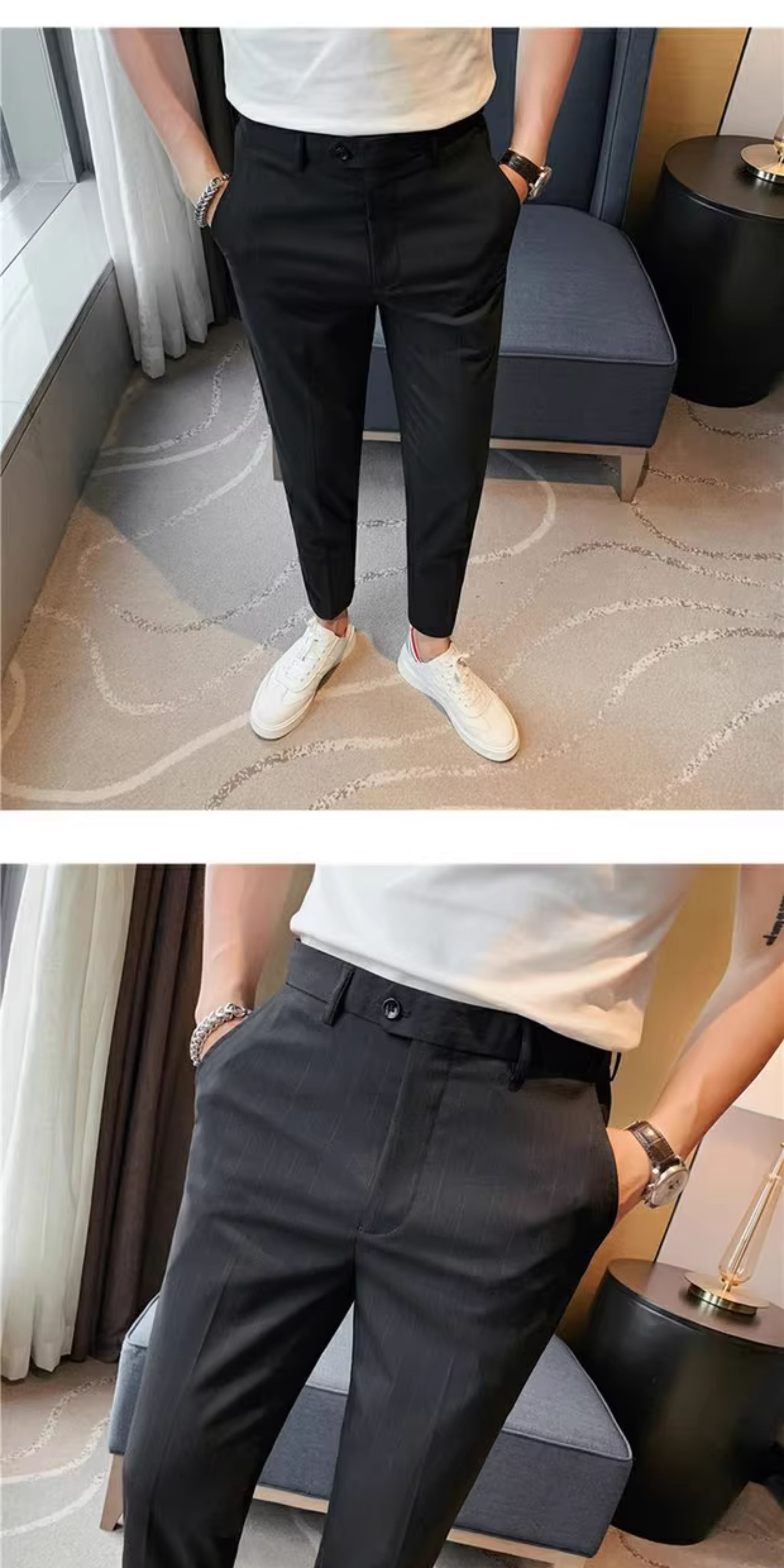 2025 Striped Casual Dress Pants with a High-End Feel, Business Formal Slim-Fit Cropped Pants for Men, Fleece-Lined Suit Trousers