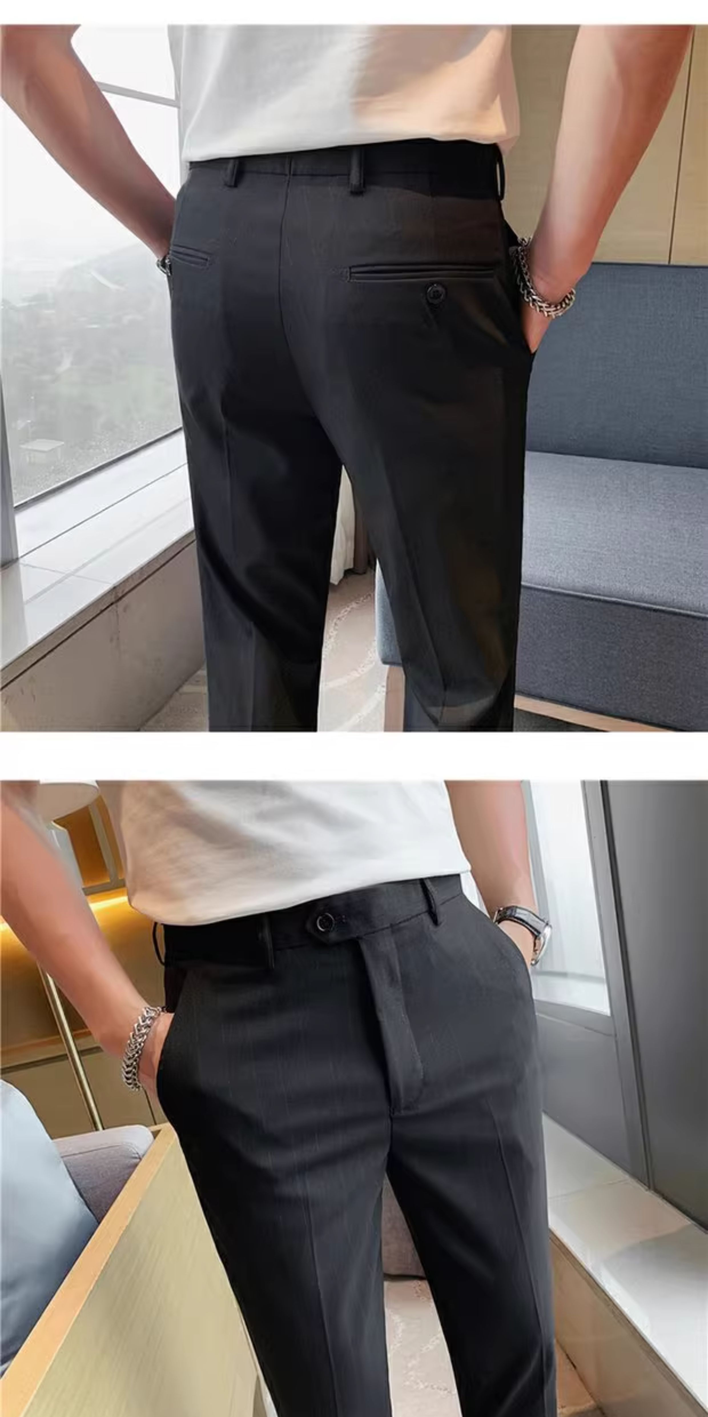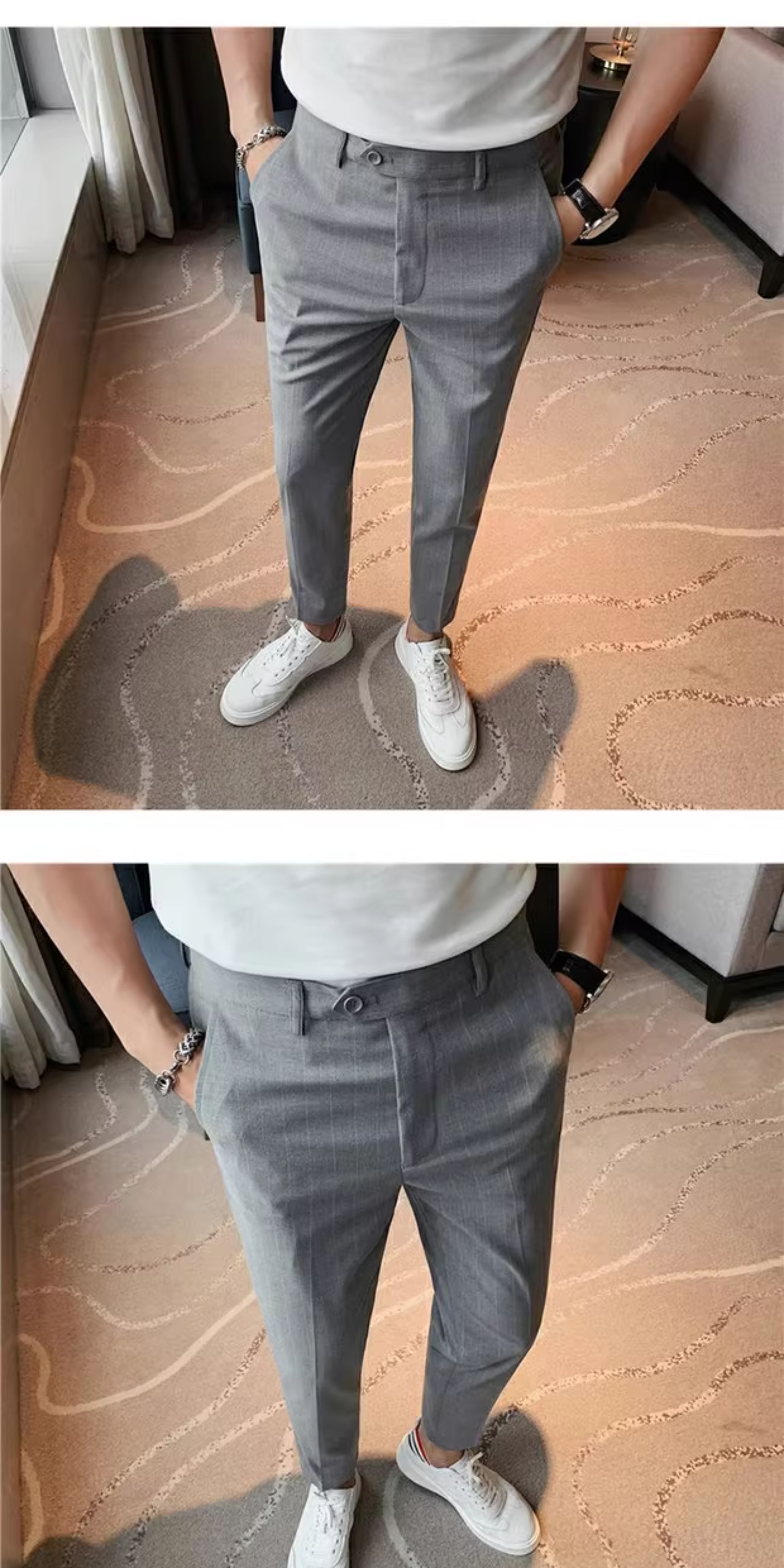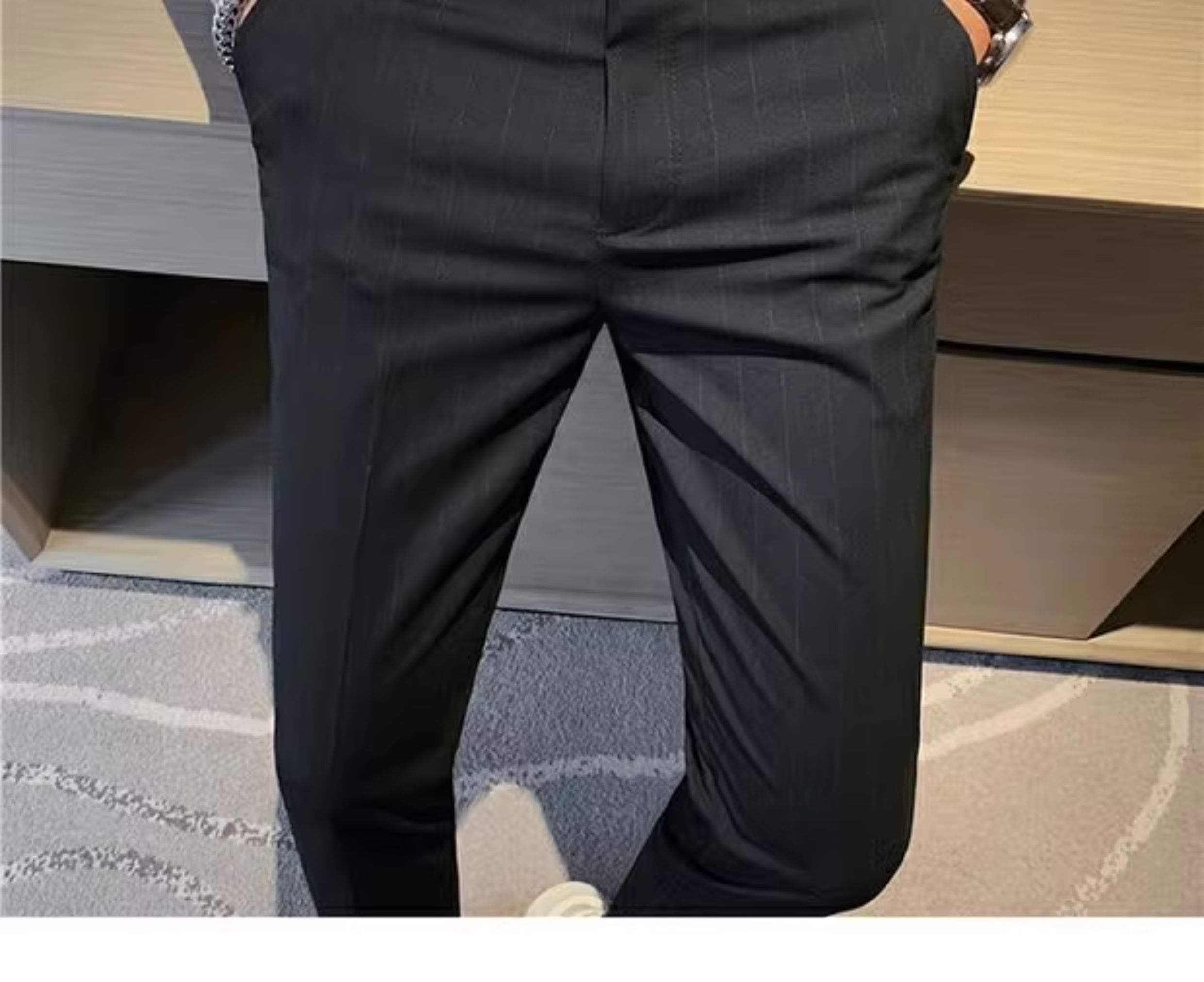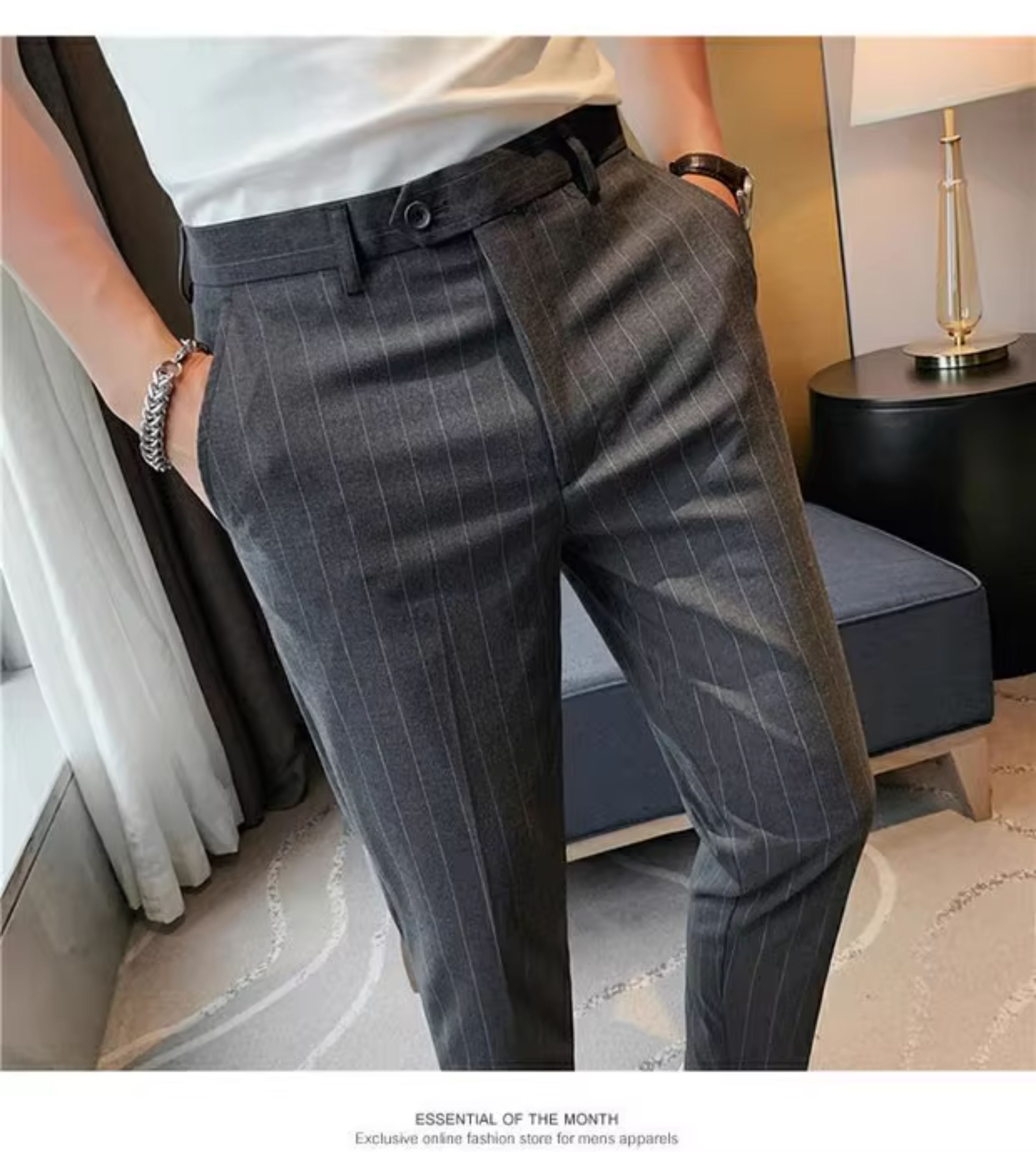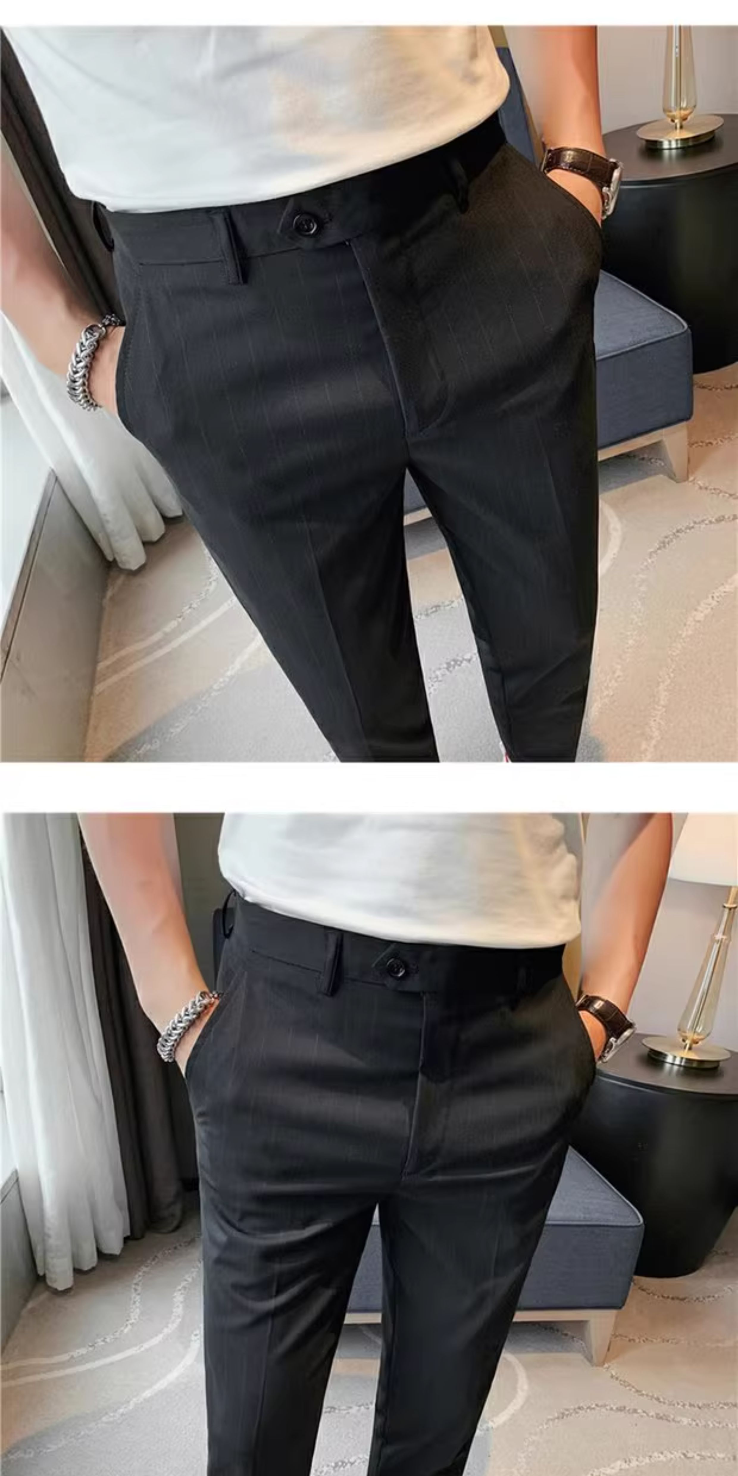 2025 Striped Casual Dress Pants with a High-End Feel, Business Formal Slim-Fit Cropped Pants for Men, Fleece-Lined Suit Trousers