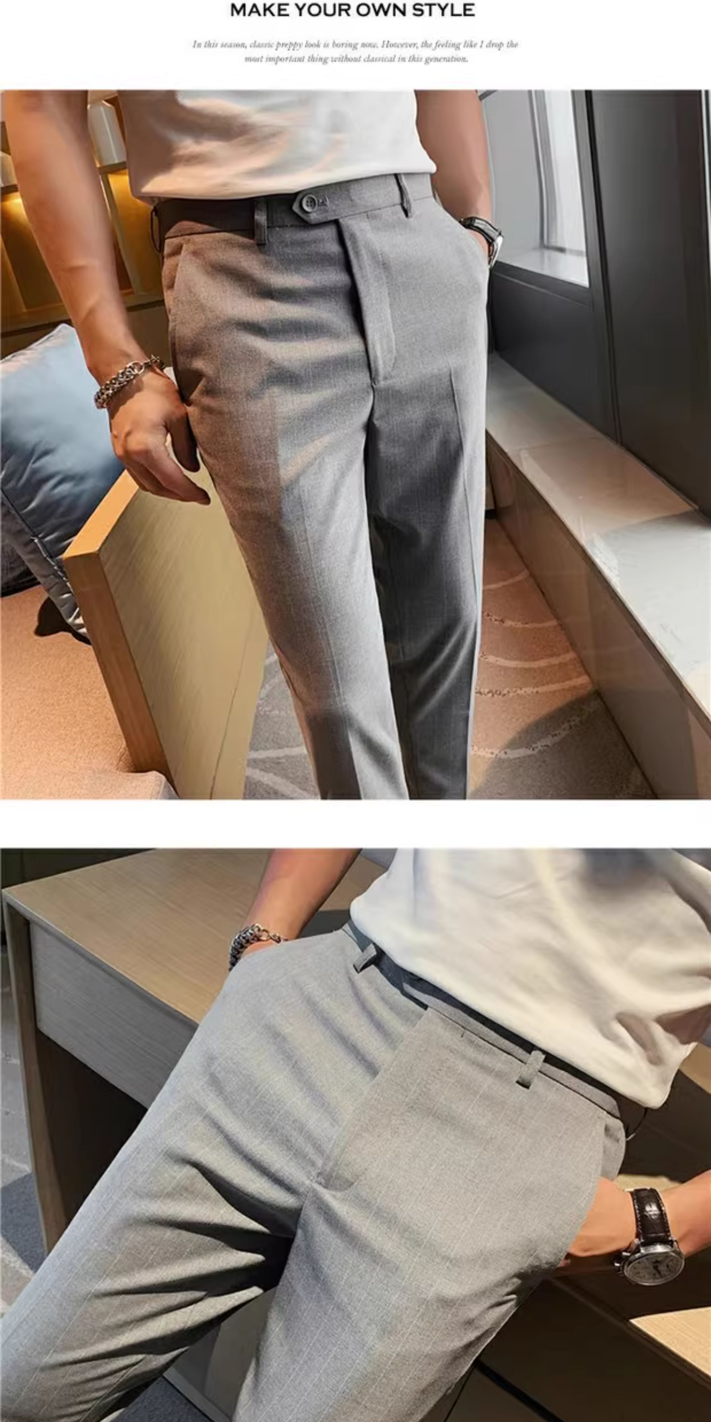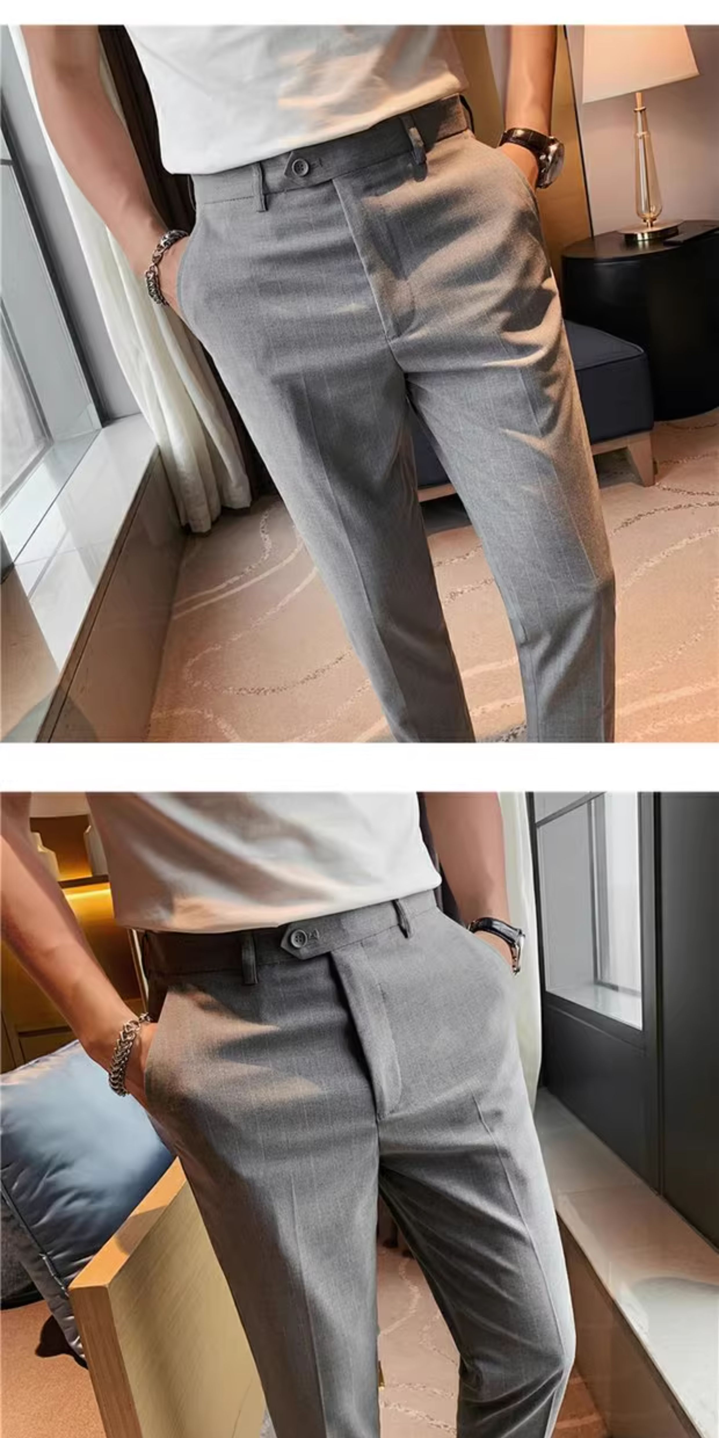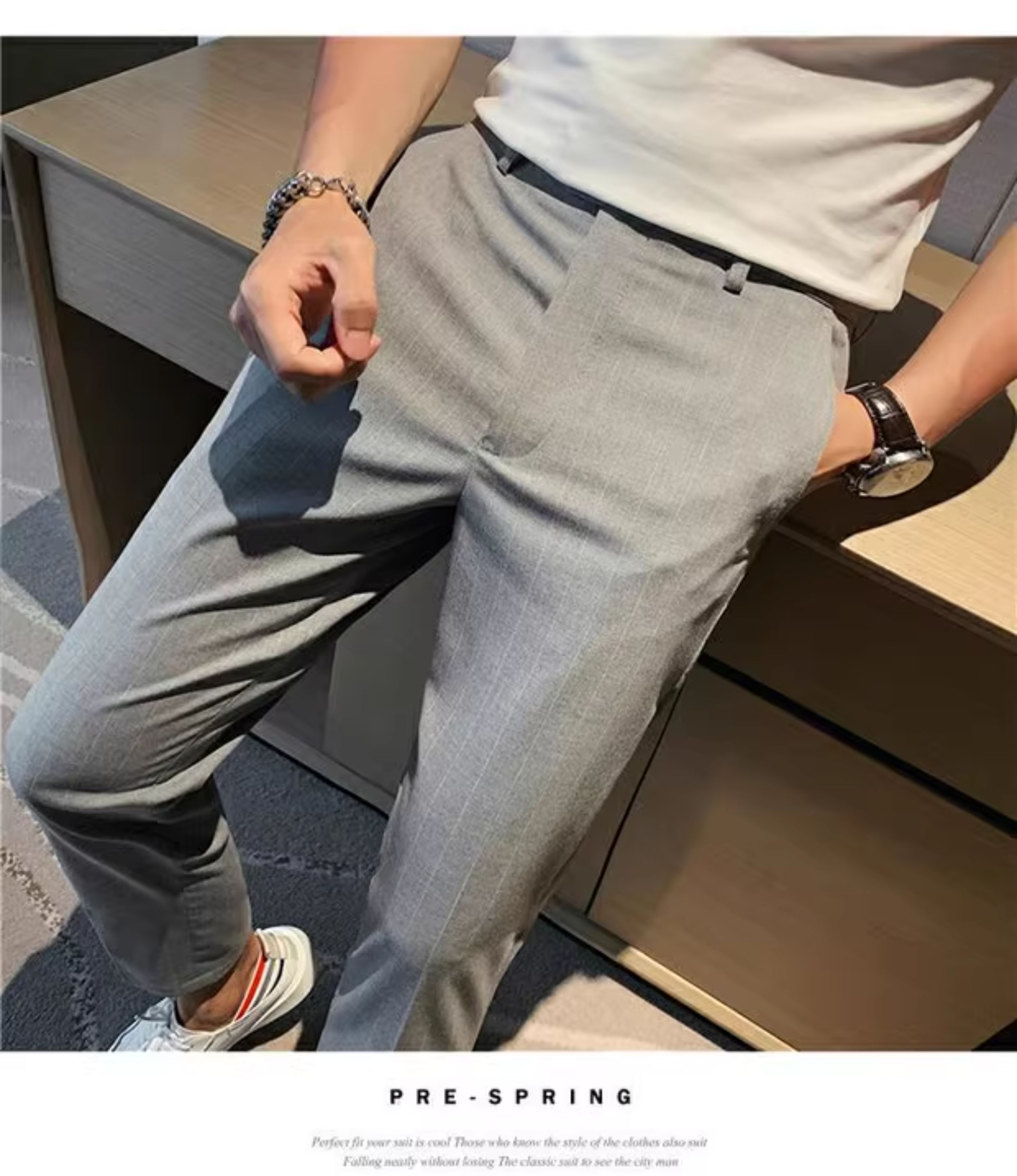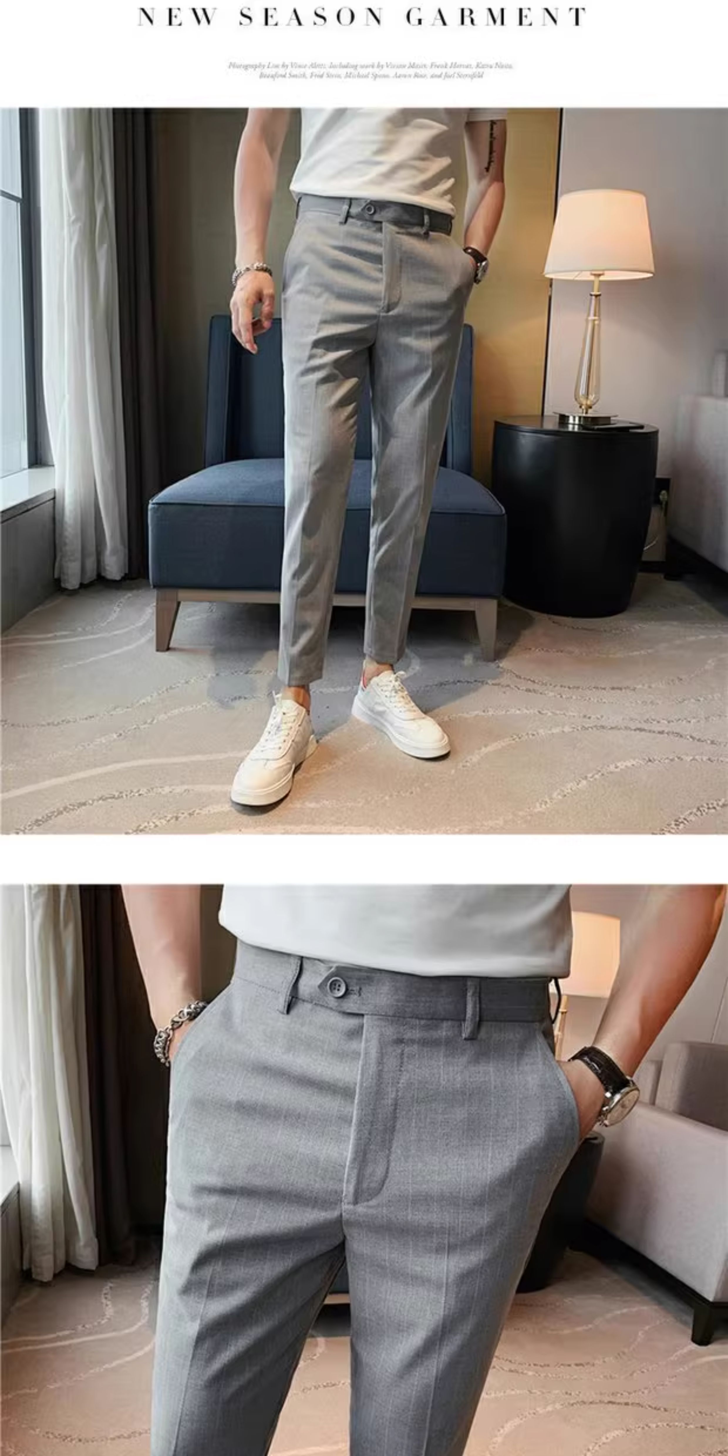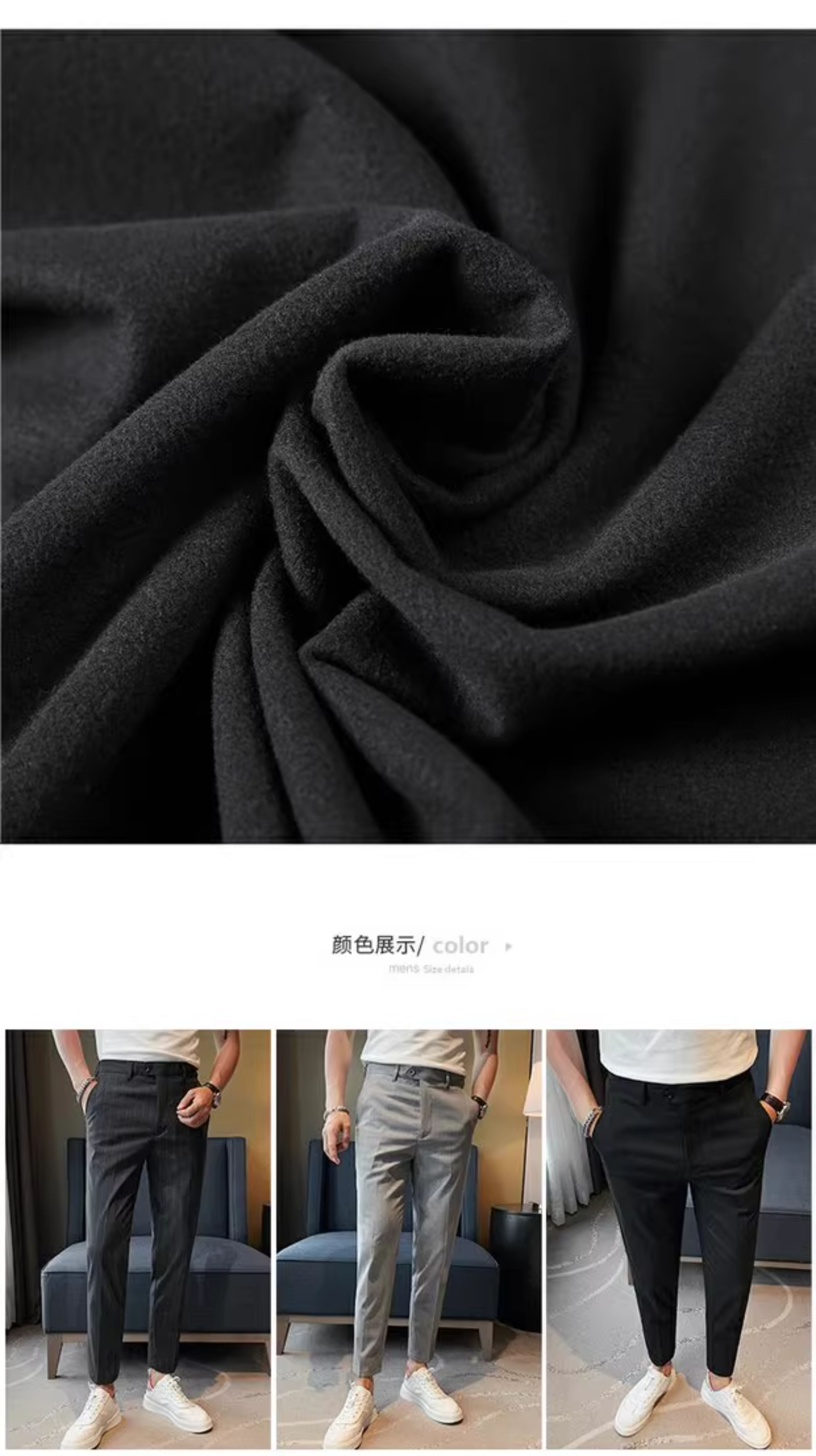 2025 Striped Casual Dress Pants with a High-End Feel, Business Formal Slim-Fit Cropped Pants for Men, Fleece-Lined Suit Trousers