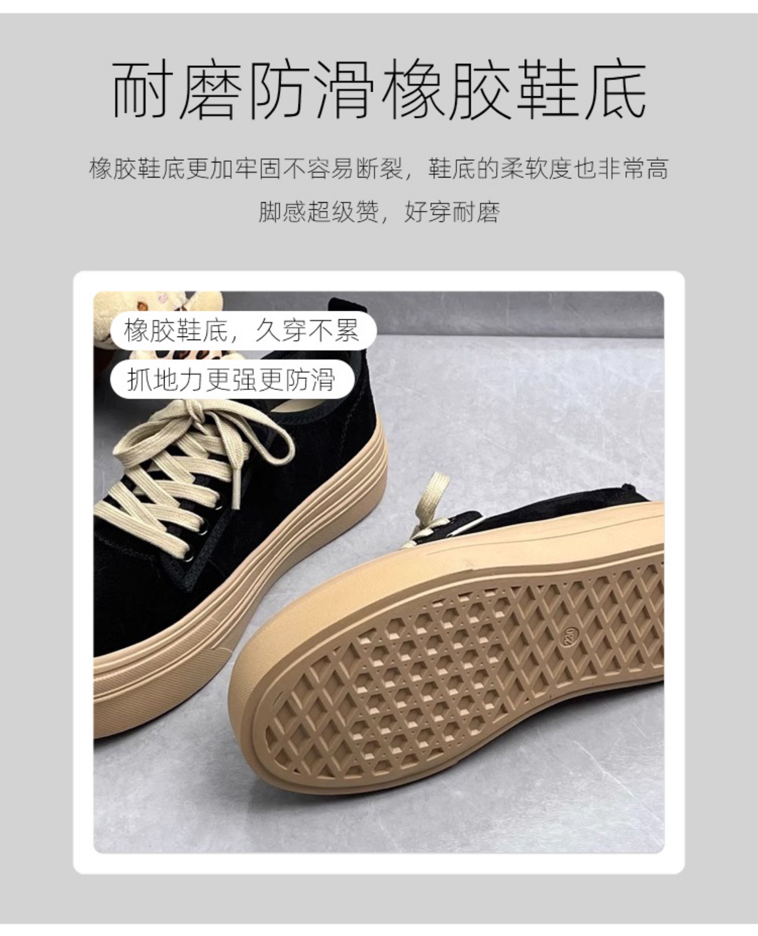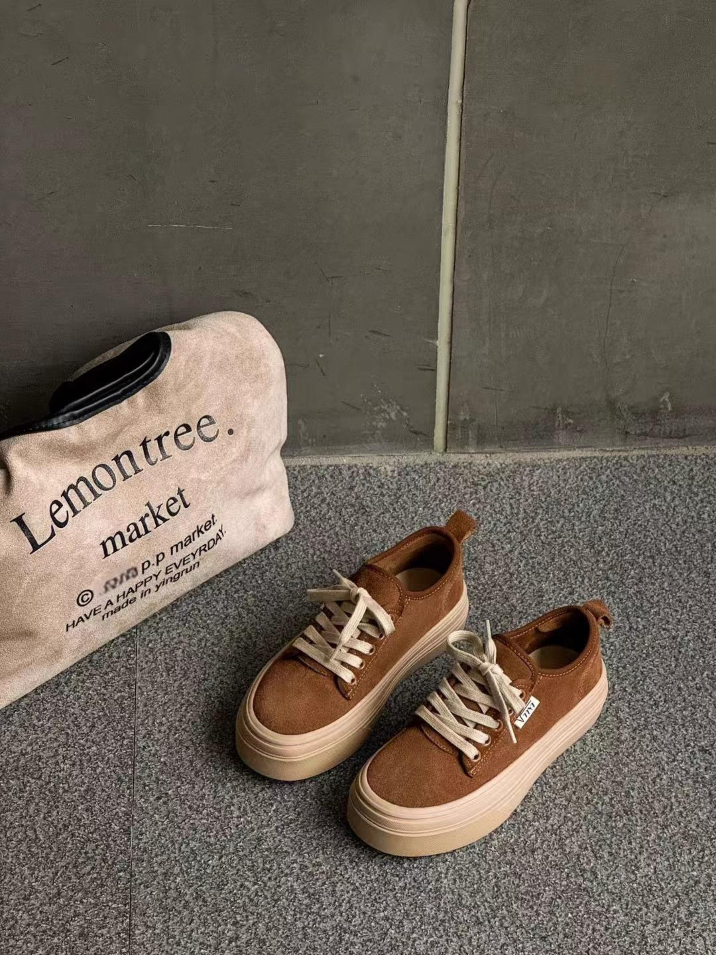 Hong Kong Thick-Soled Retro British Style Genuine Leather Suede Sneakers for Women 2025 Spring New Round-Toe Versatile Casual Canvas Shoes