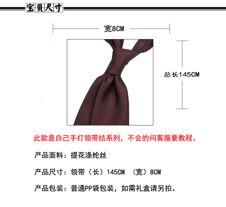 Solid Color Men's Business Formal Wear, Plain Dark Pattern Tie, Hand-Tied 8cm, Wedding Business Suit Store, Burgundy Tie