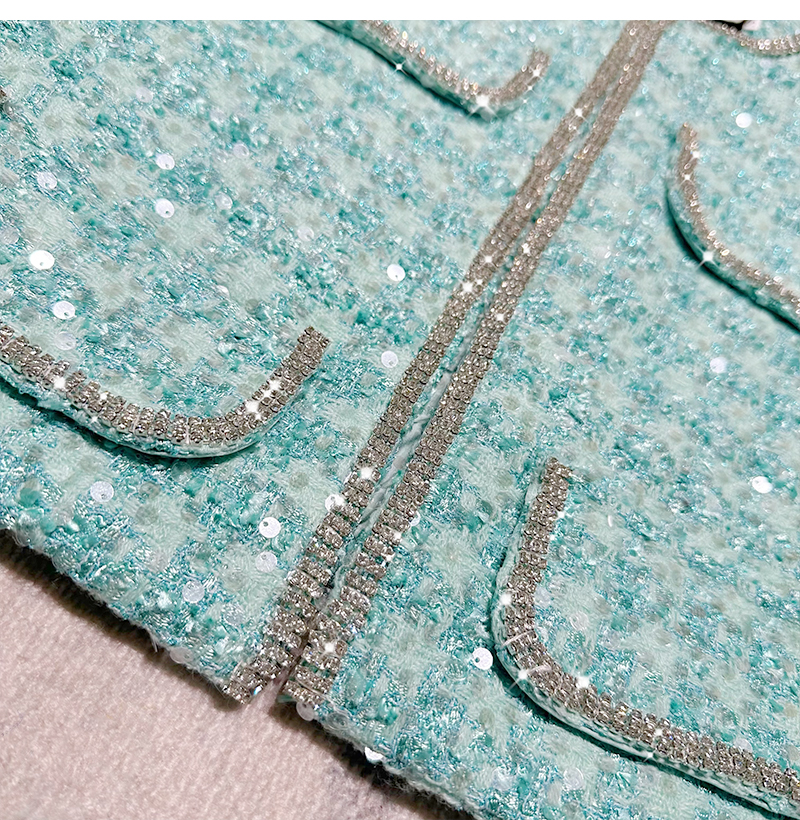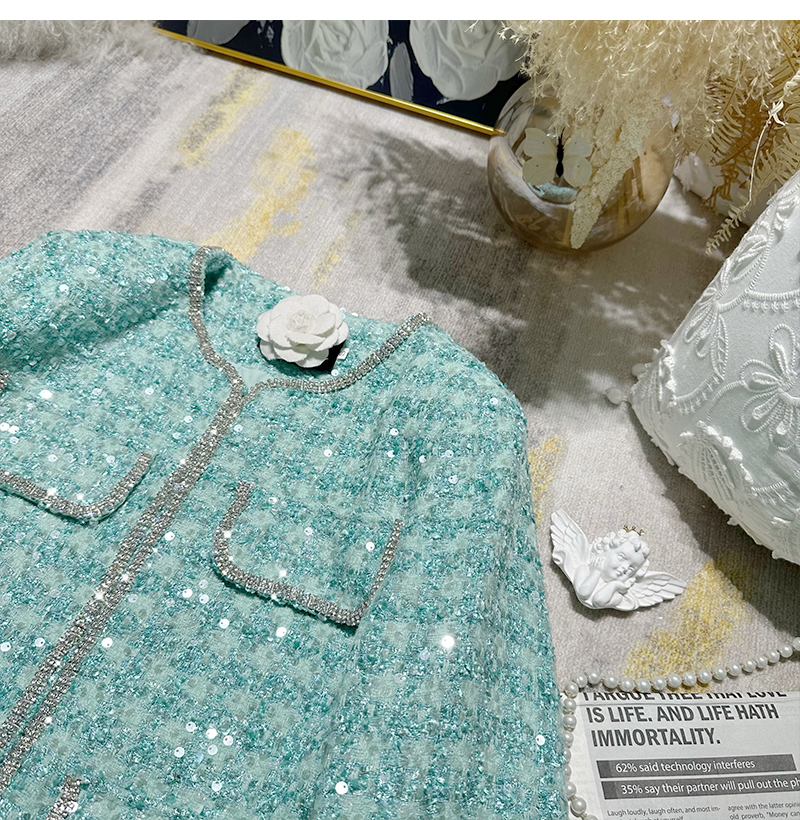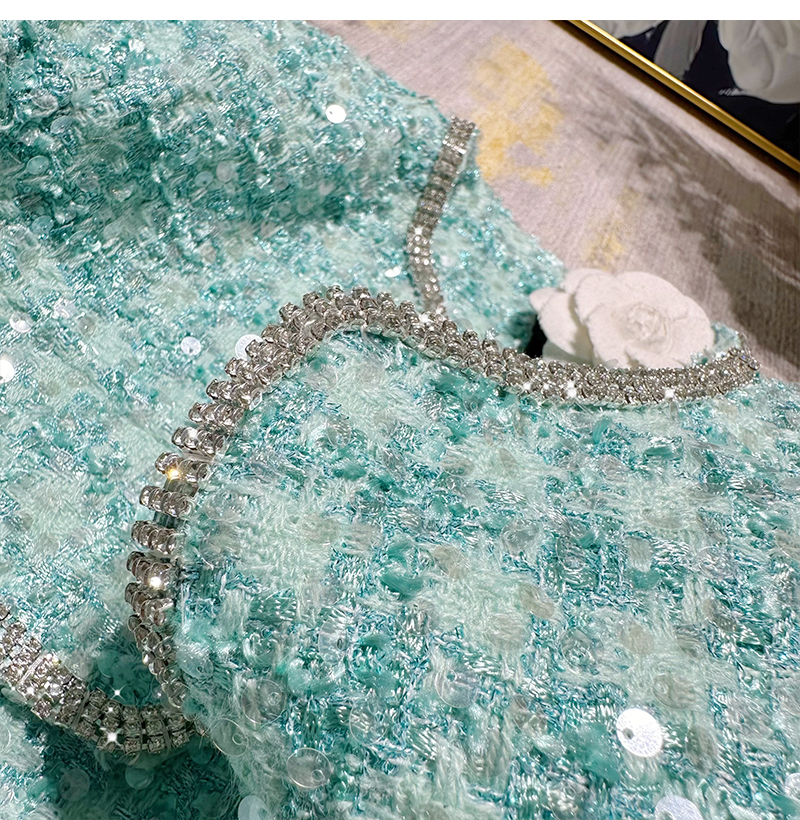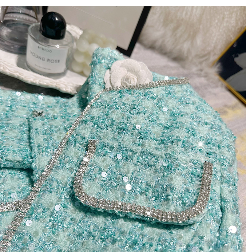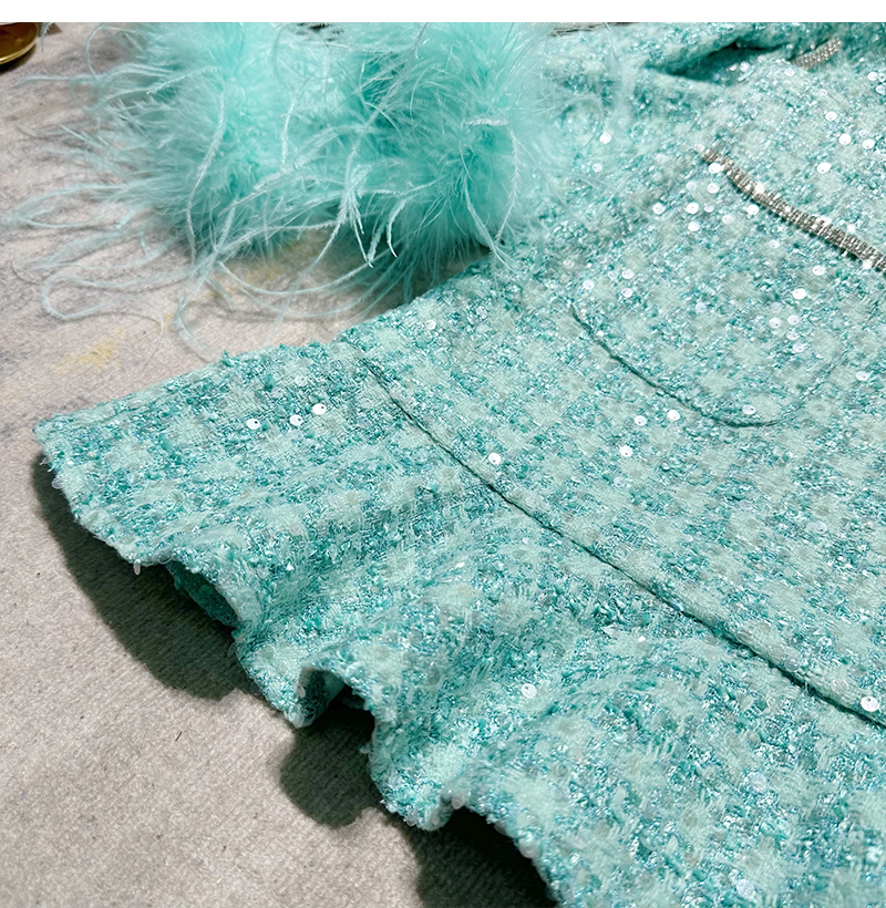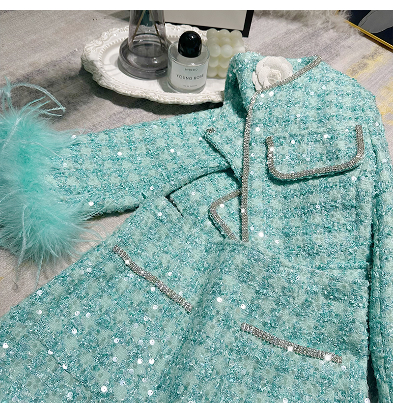 Ffmiss ◆ High-End Studded Feather Tassel Tweed Short Coat and Palace-Style Sequin Woven Short Skirt Set