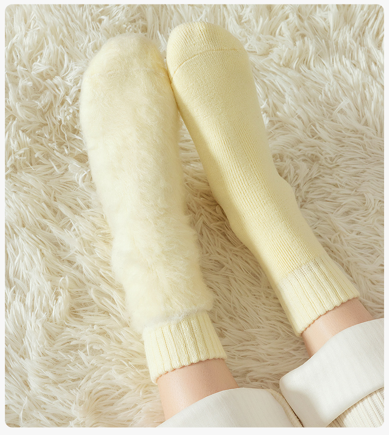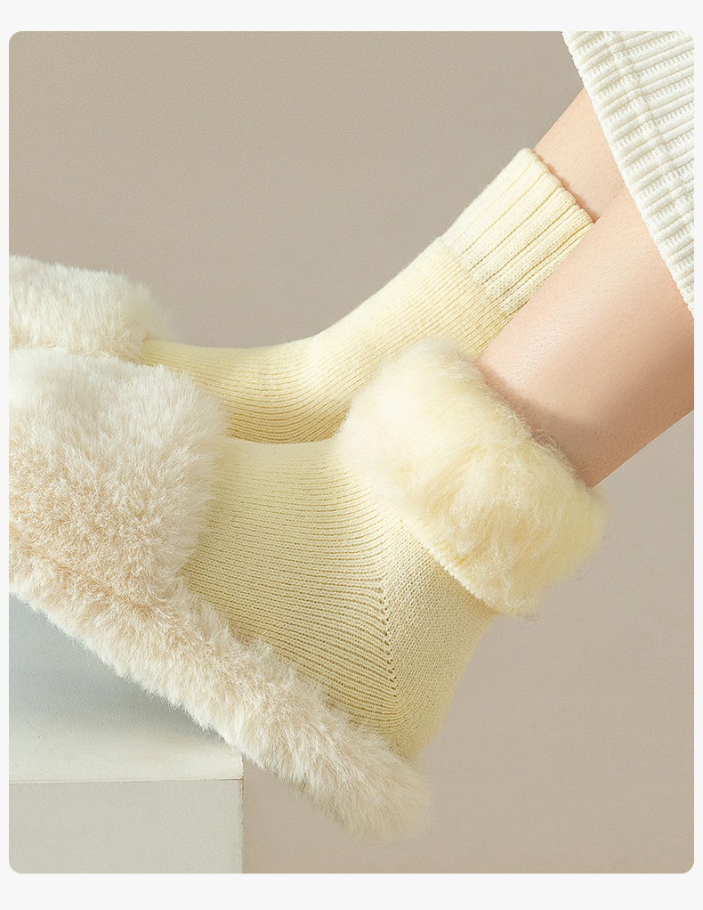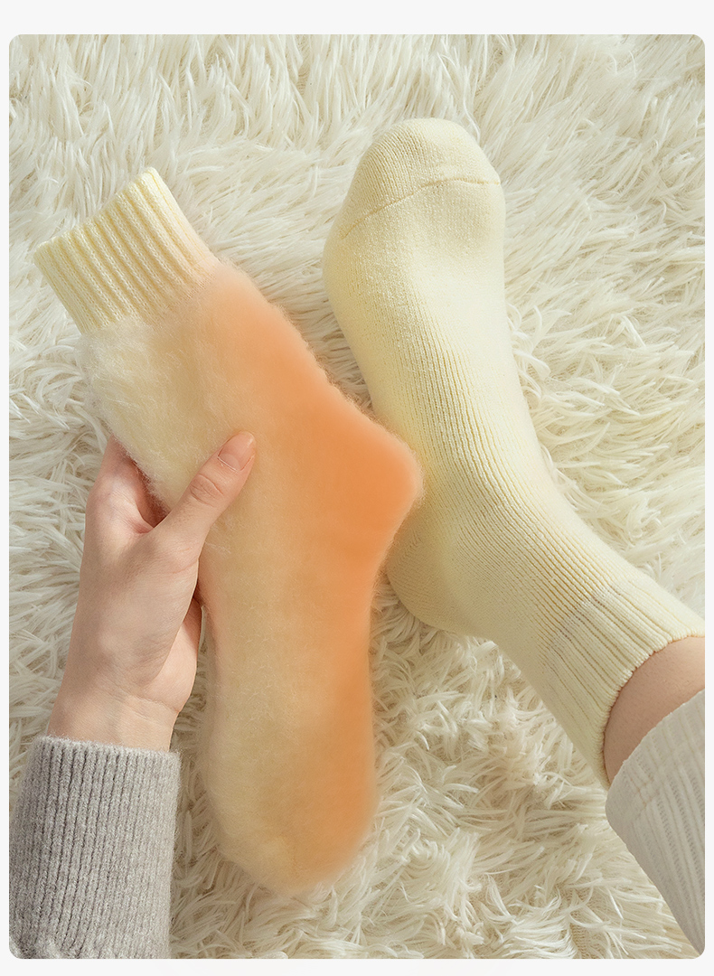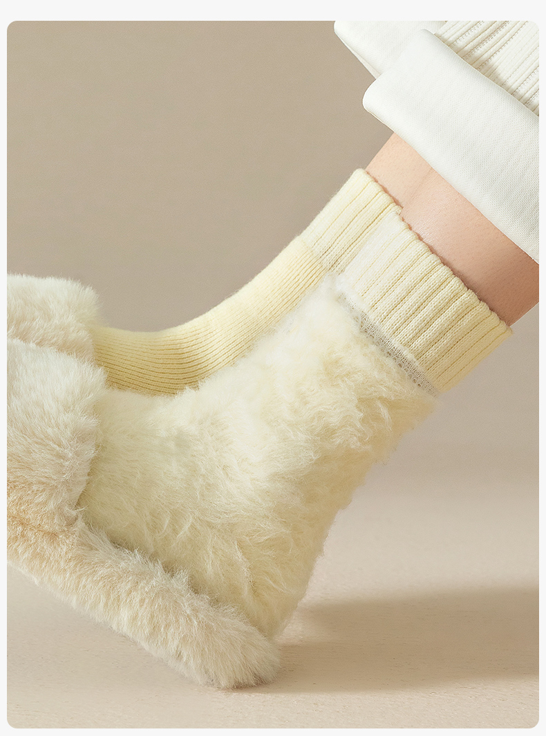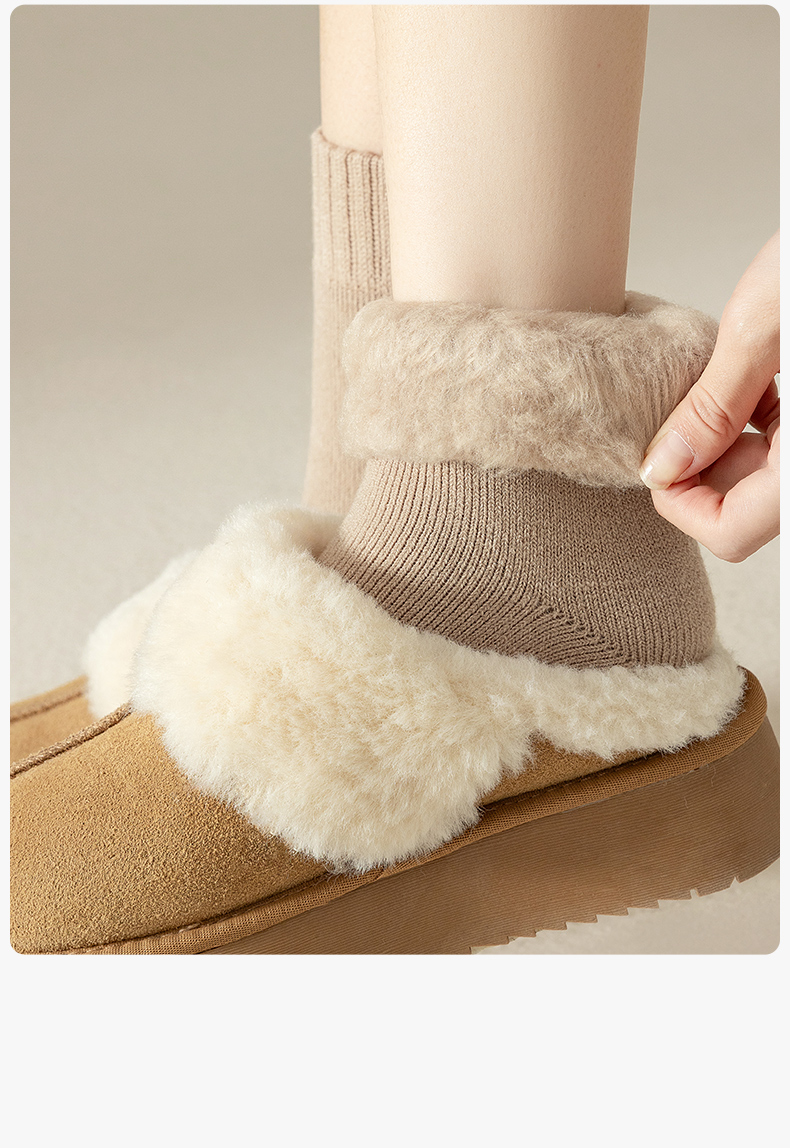 Cashmere Socks for Women, Autumn and Winter Style, Fleece-Lined and Thickened Wool Mid-Calf Socks, Warm Winter Long Socks, Suitable for Pairing with Snow Boots, Cotton Socks
