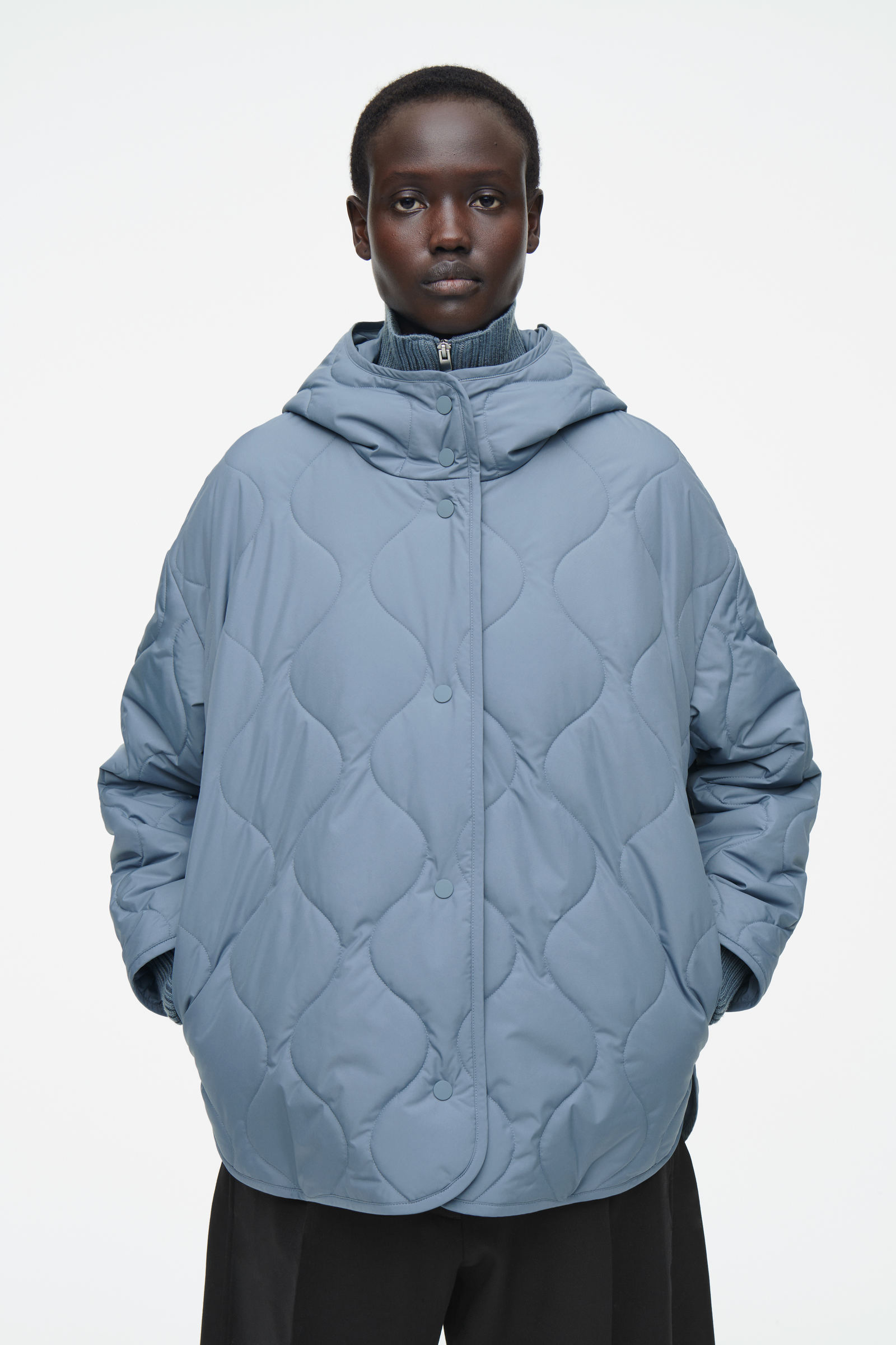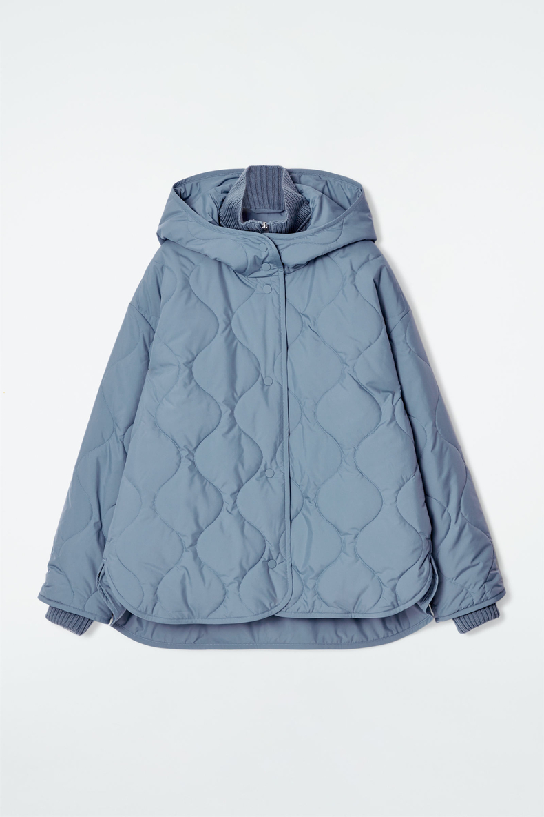 Cos Women's Casual Quilted Hooded Jacket Blue New Product 1258273001