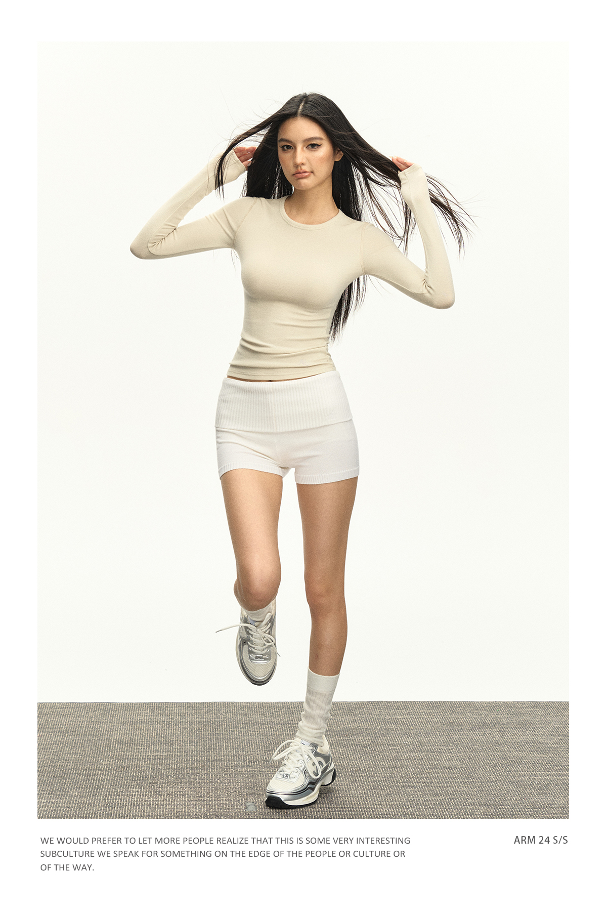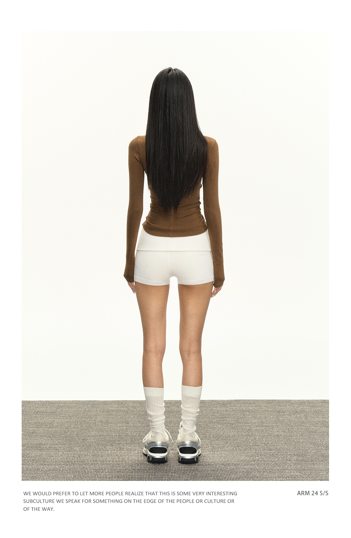 Ariseism American Retro White Low-Waisted Knitted Hip-Hugging Shorts for Women, Spring and Summer New Slimming Tight Hot Pants