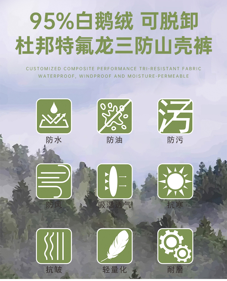 Detachable Goose down Workwear down Pants for Women, Suitable for Outdoor Wear, 2025 New Model, High-End, Lightweight, for Skiing, Windproof and Waterproof
