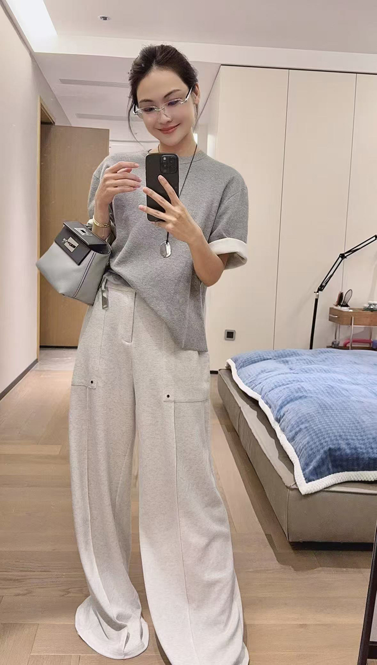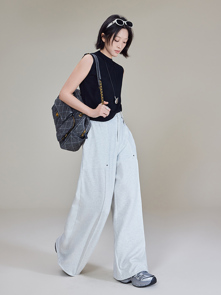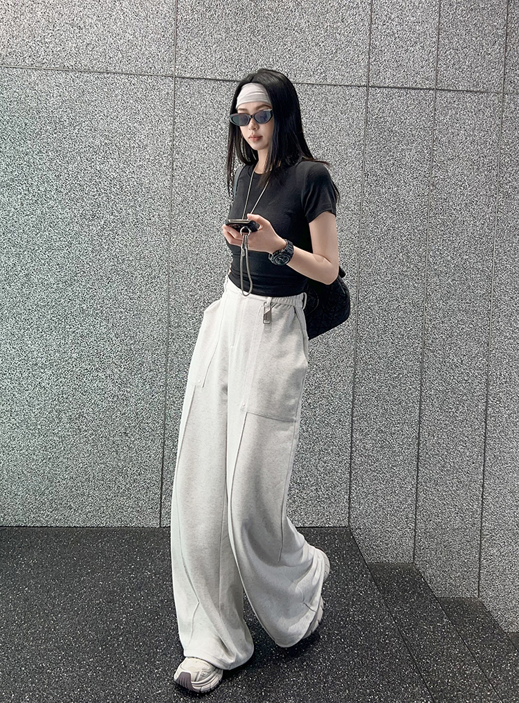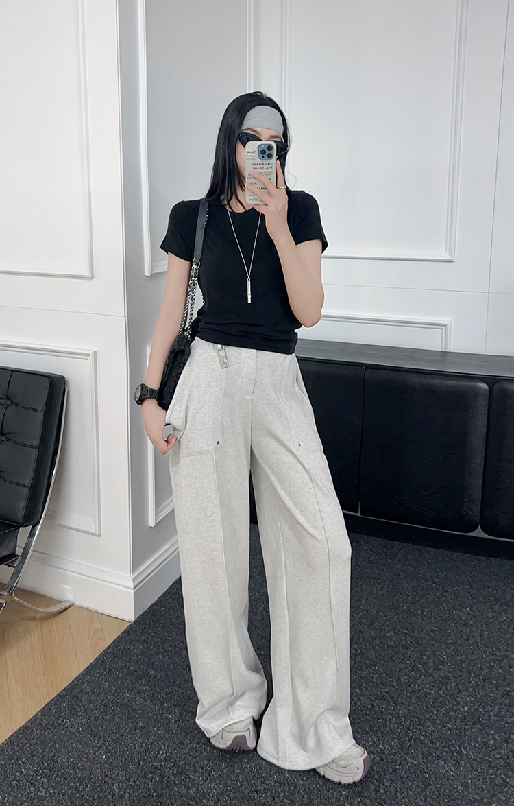 Meiyang【In Stock】Straight-Leg Sweatpants, Pique Cotton Loose Casual Wide-Leg Jogger Pants【Small 70】
