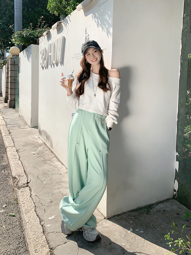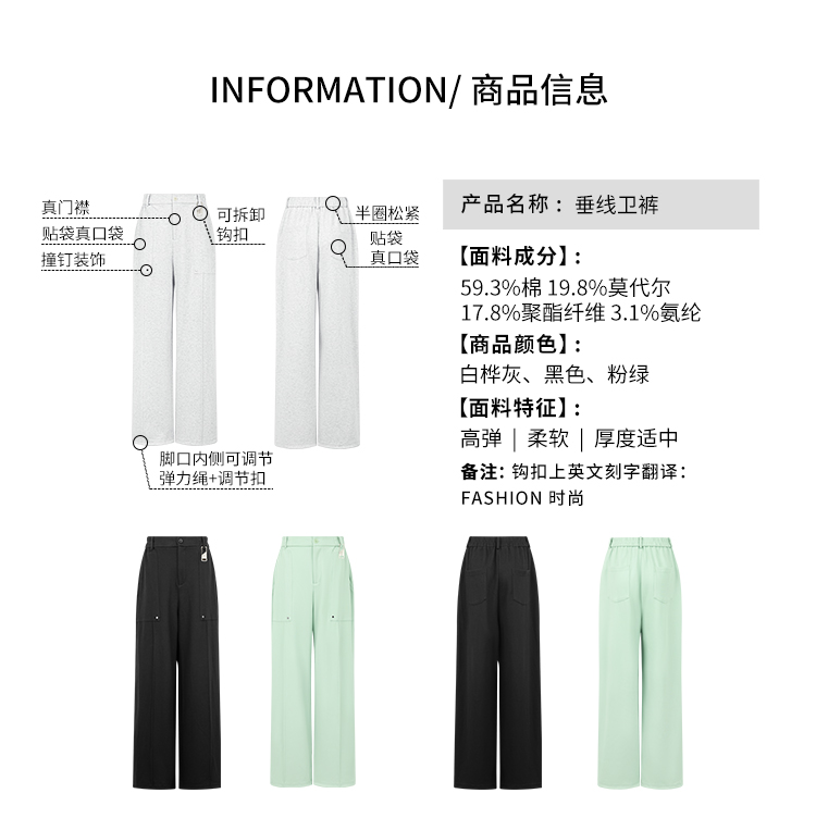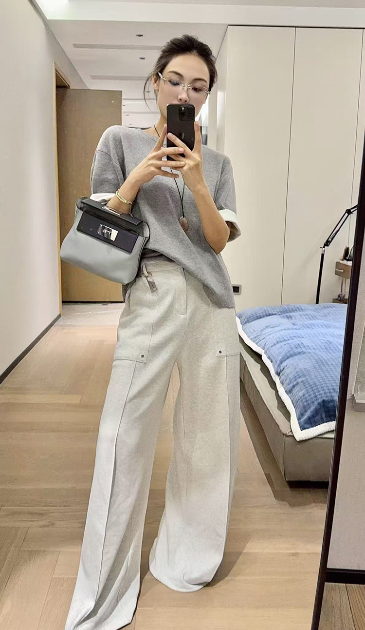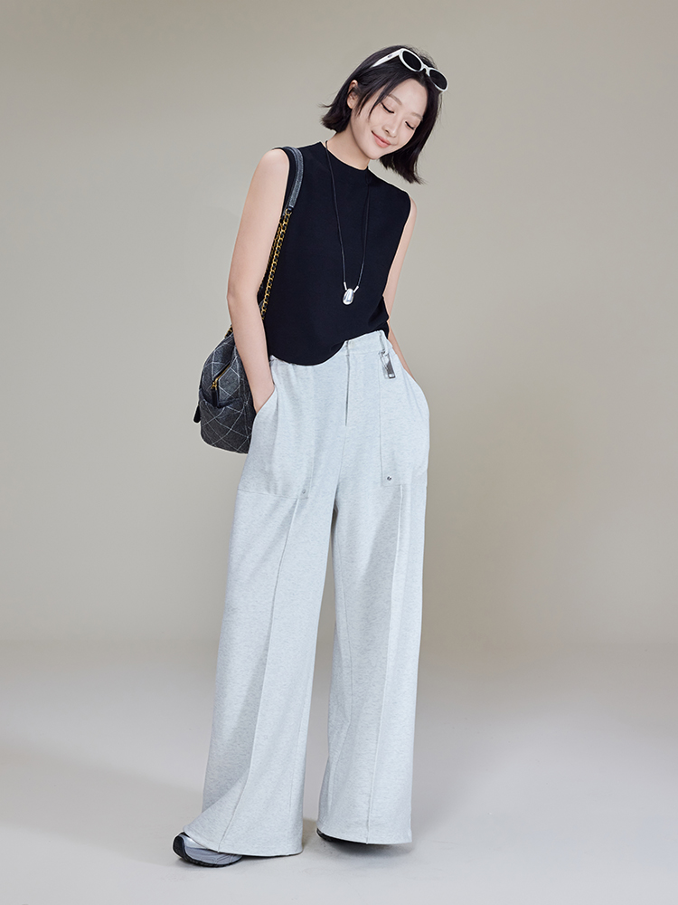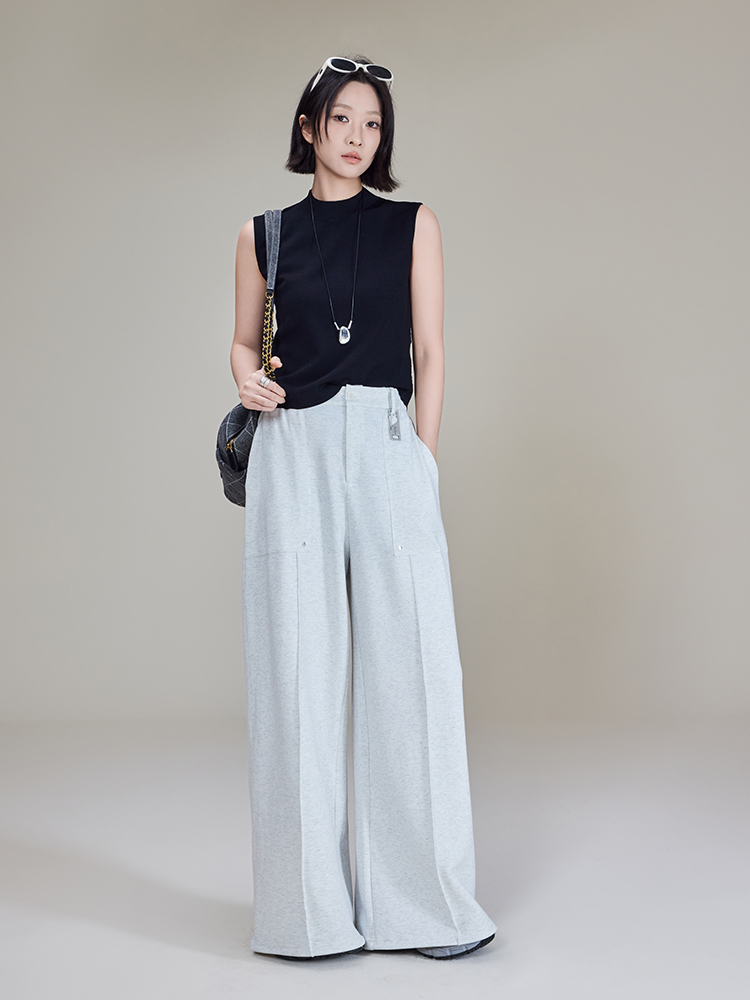 Meiyang【In Stock】Straight-Leg Sweatpants, Pique Cotton Loose Casual Wide-Leg Jogger Pants【Small 70】