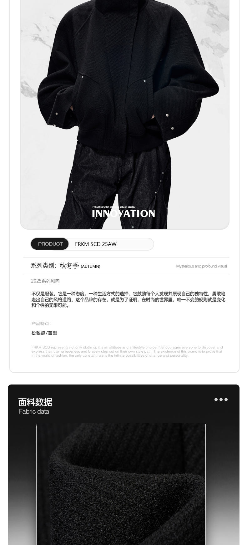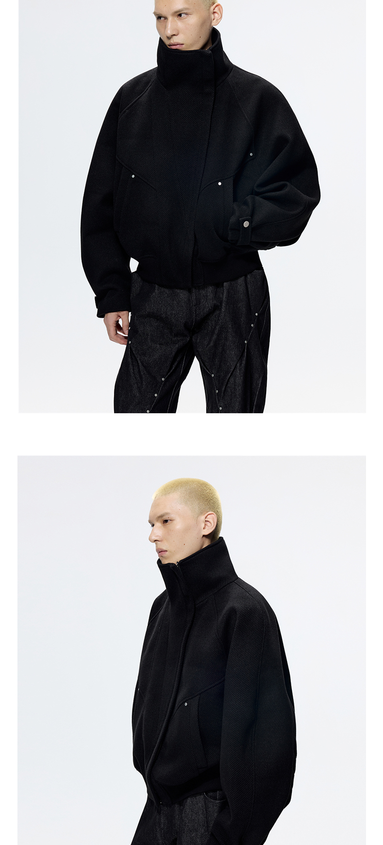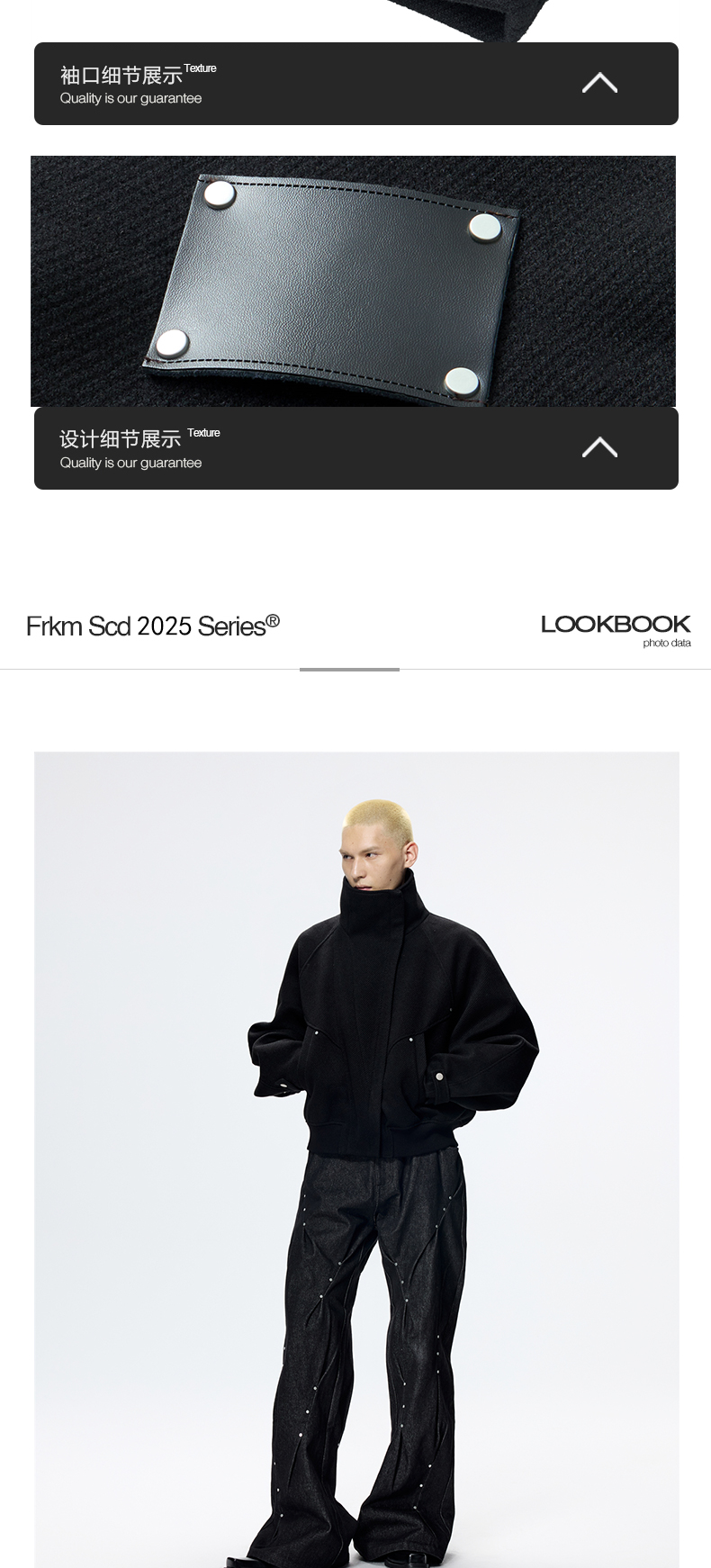Frkm Scd 25Aw Relaxed Woolen Coat, Cocoon-Shaped, Loose, Thickened, Warm, Autumn and Winter Stand-Up Collar Short Coat