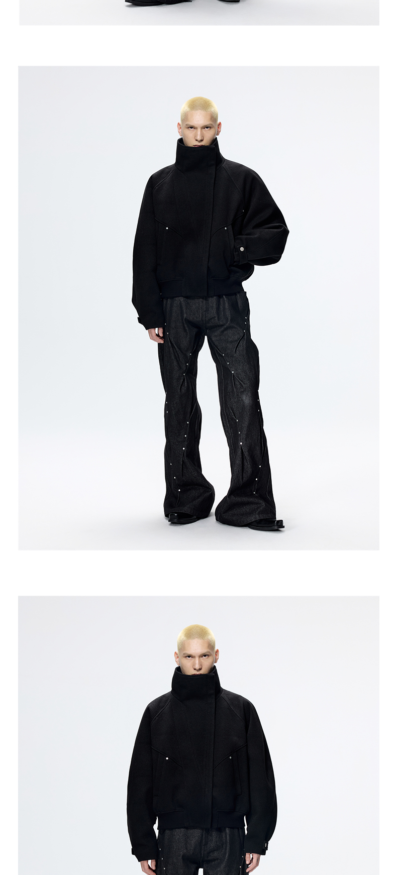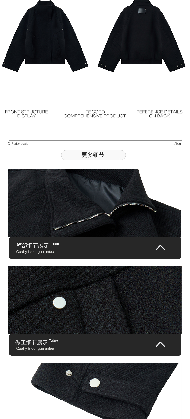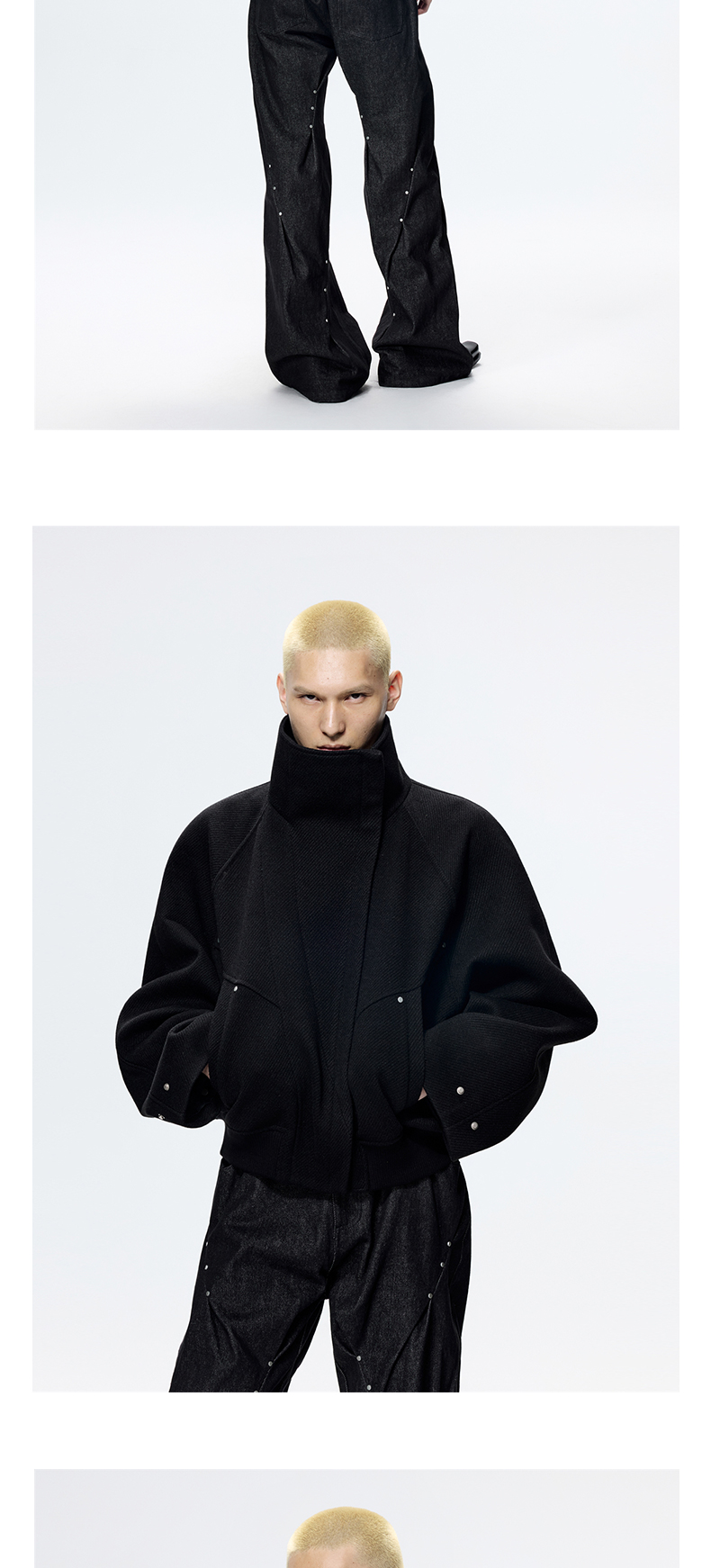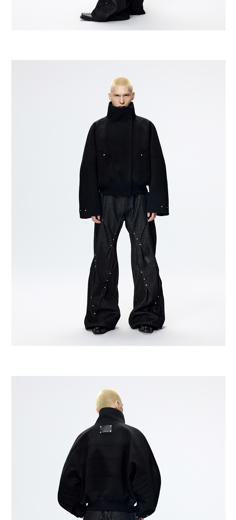 Frkm Scd 25Aw Relaxed Woolen Coat, Cocoon-Shaped, Loose, Thickened, Warm, Autumn and Winter Stand-Up Collar Short Coat