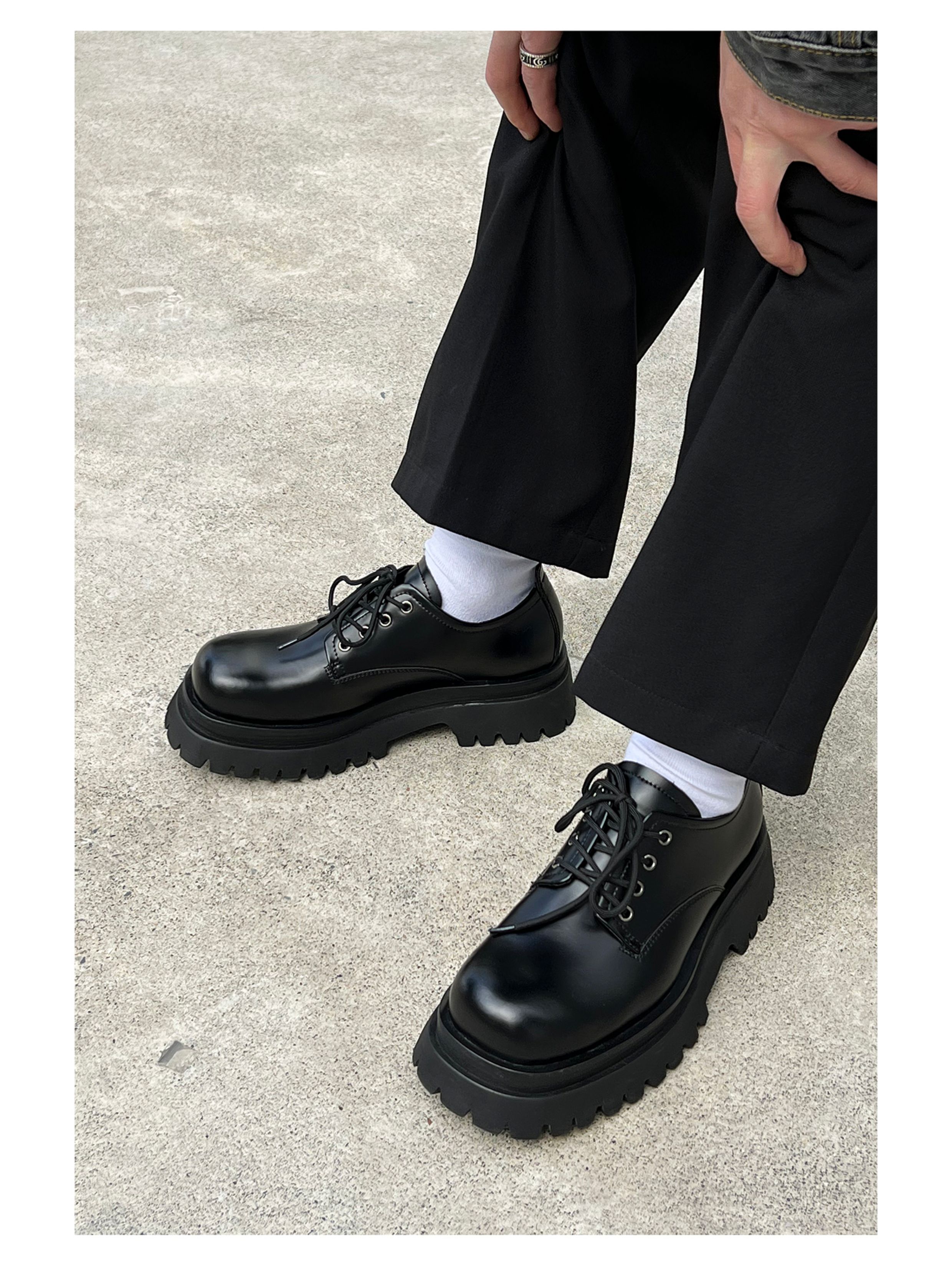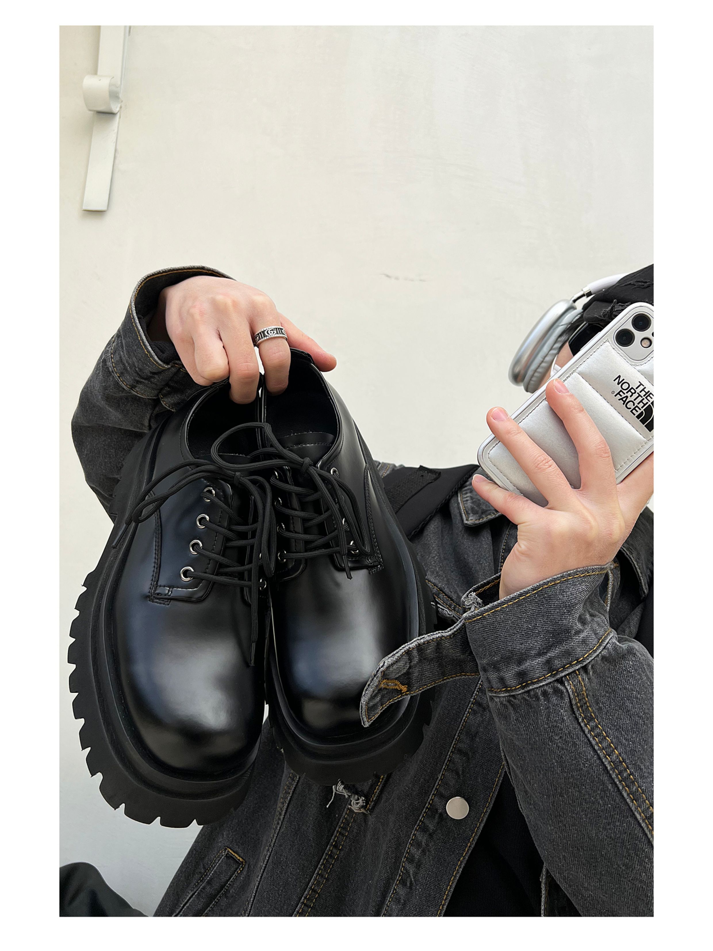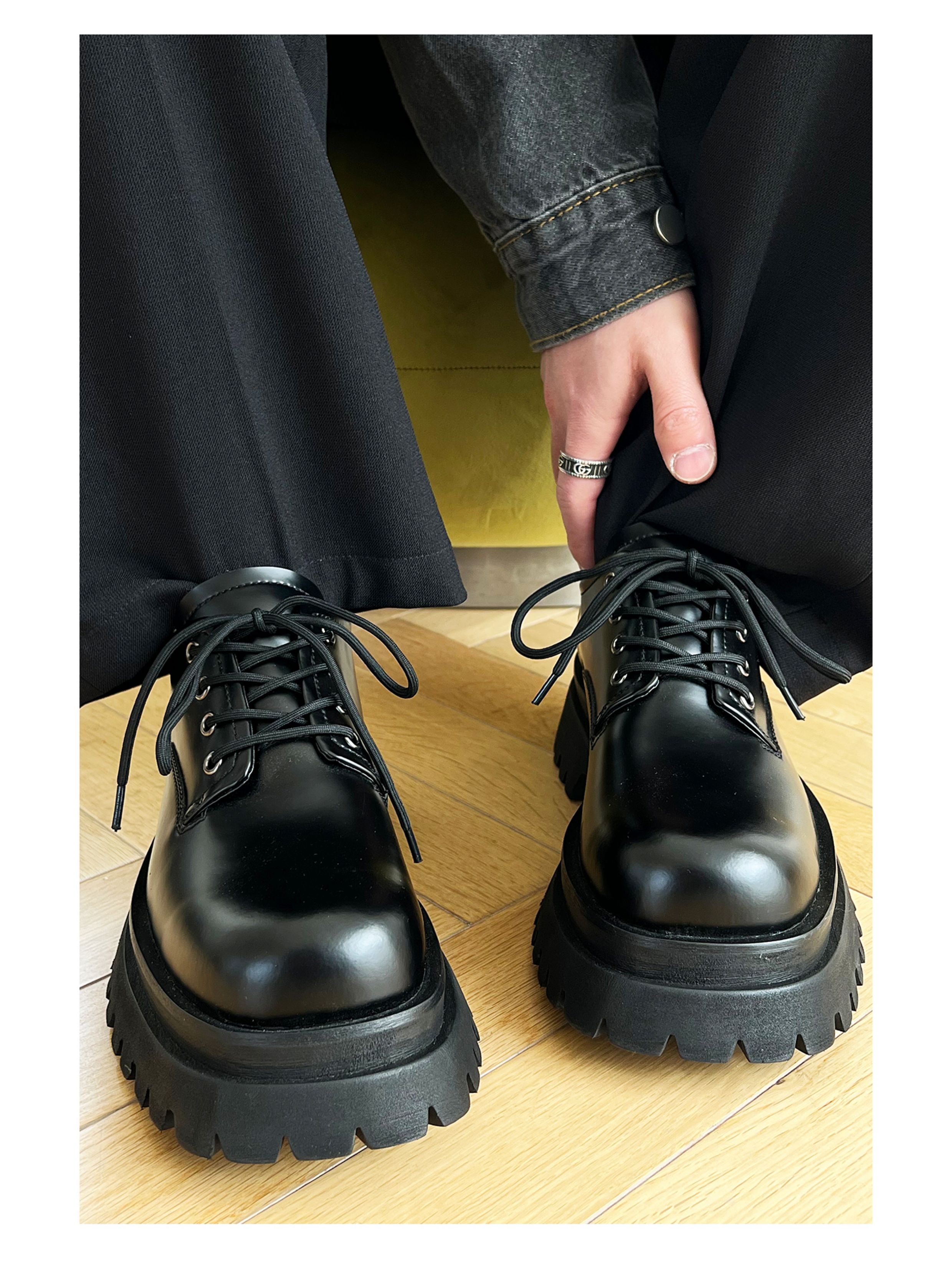 Hanqiao Diary [Black Blood Series] Cleanfit Black Thick-Soled Height-Increasing Leather Shoes Genuine Leather Large-Toe Derby Shoes for Men and Women