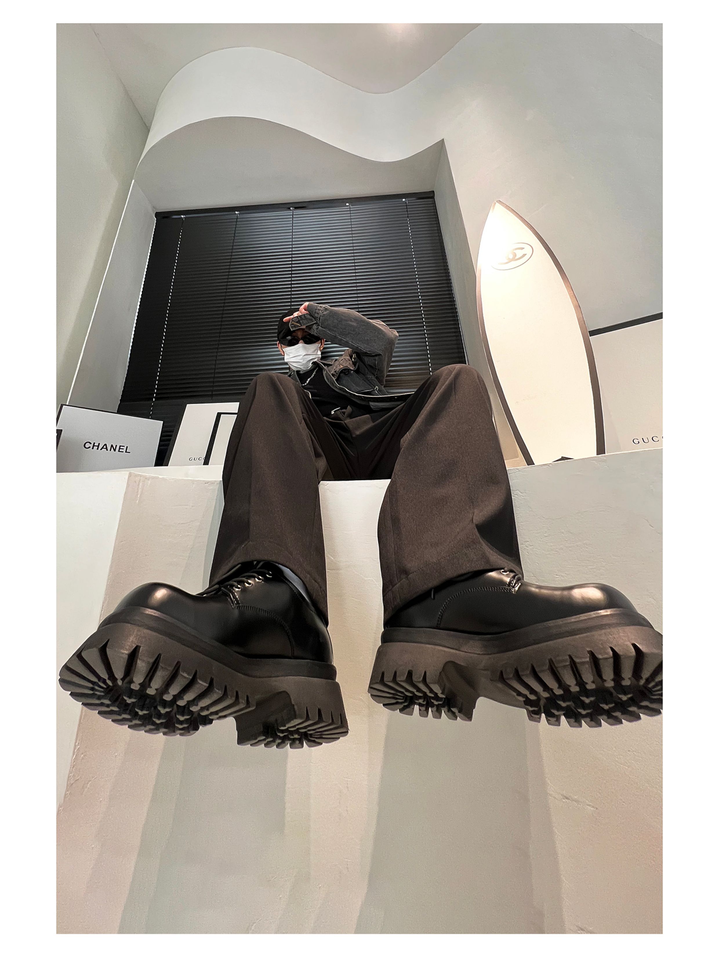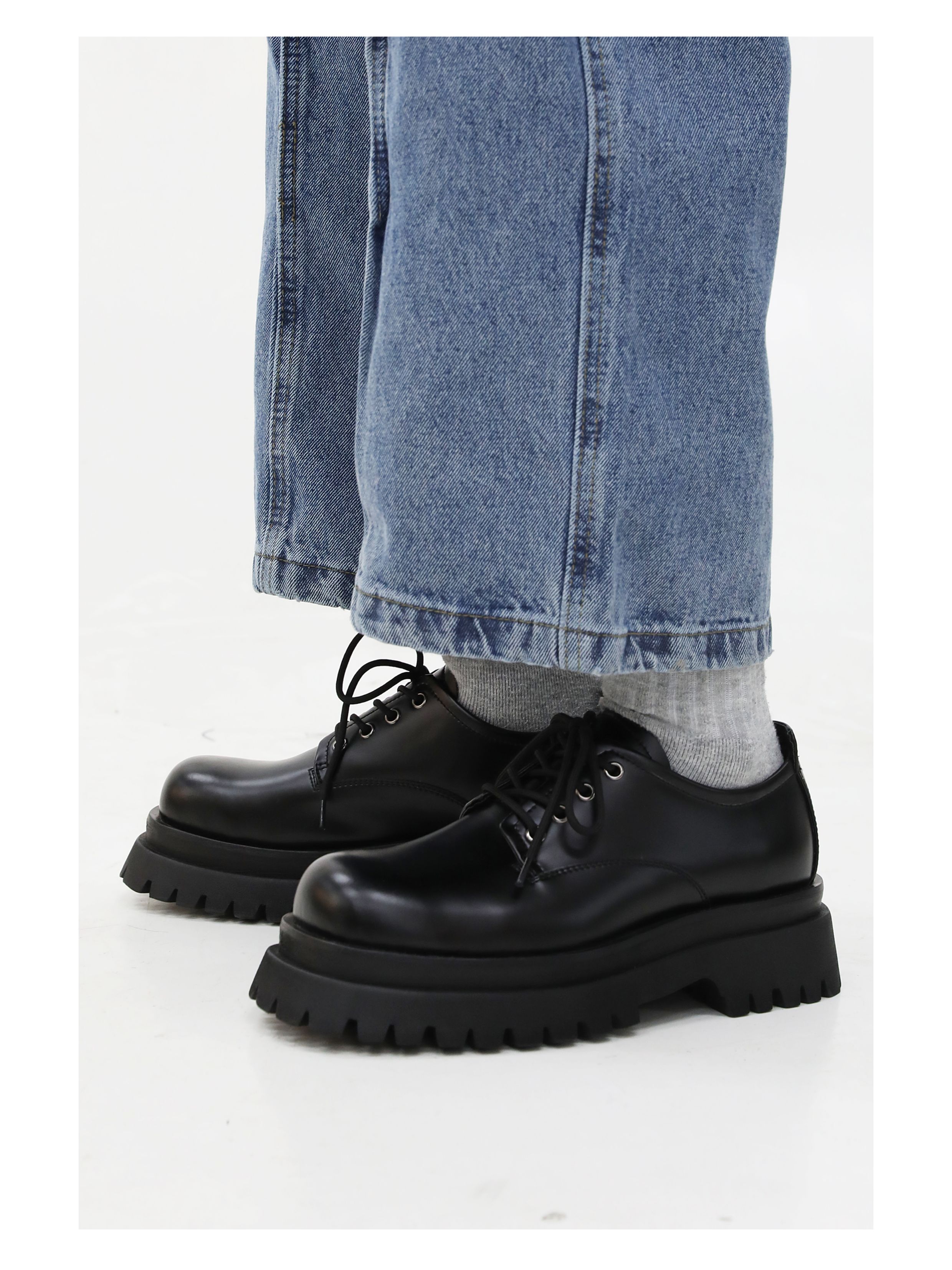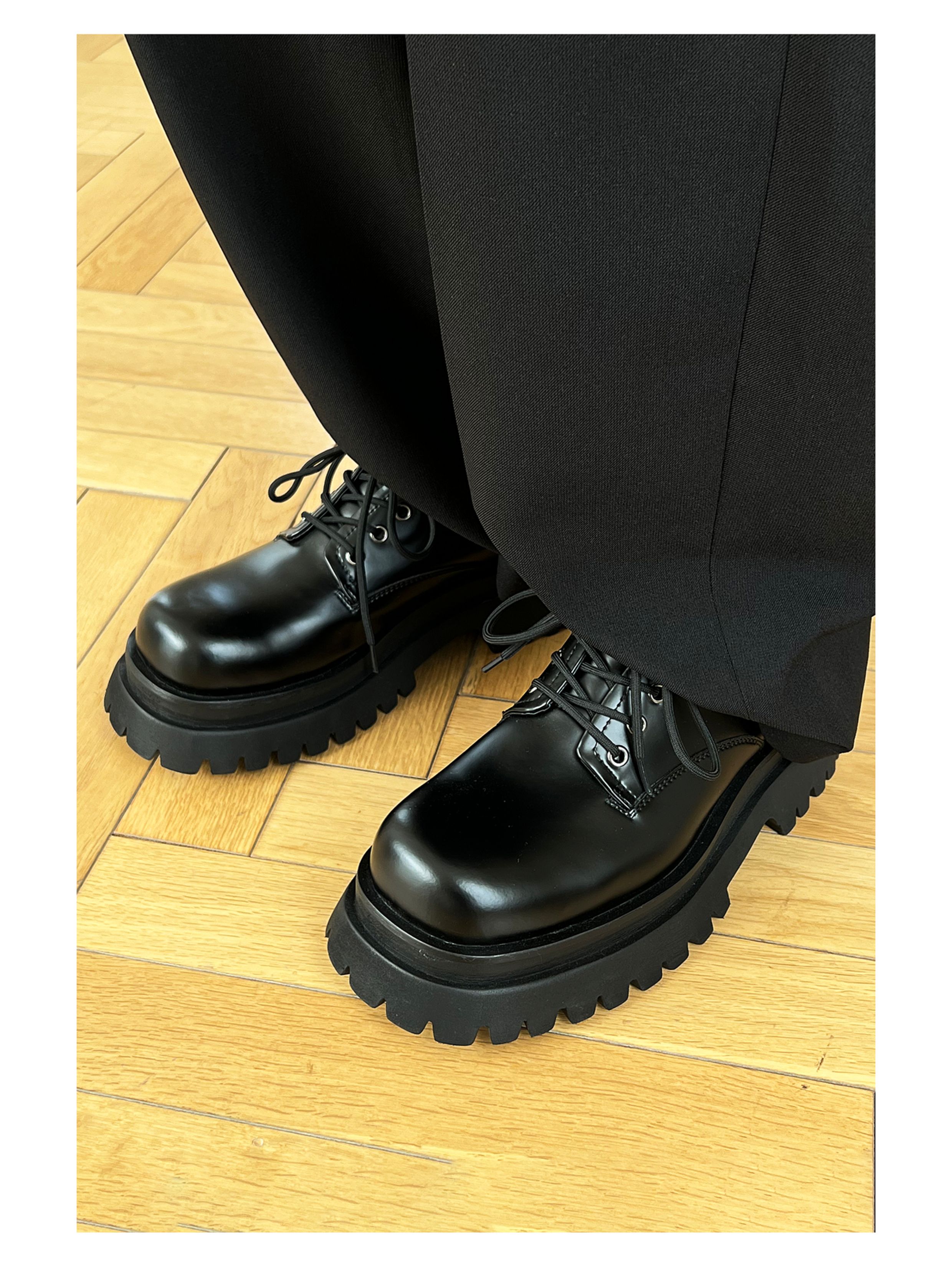 Hanqiao Diary [Black Blood Series] Cleanfit Black Thick-Soled Height-Increasing Leather Shoes Genuine Leather Large-Toe Derby Shoes for Men and Women