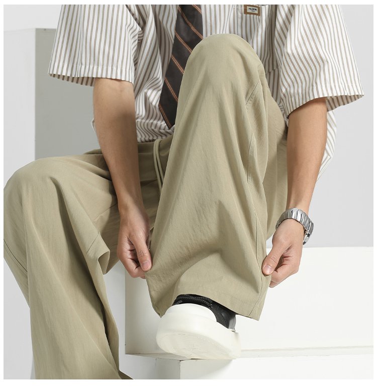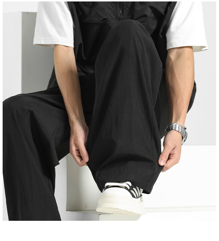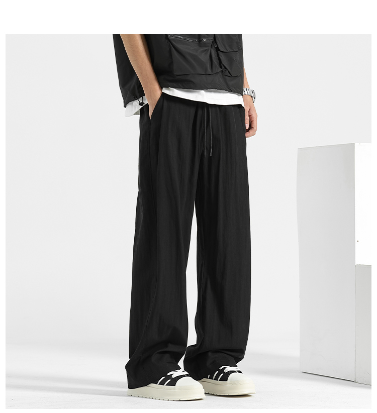 Men's Trendy High-End Summer Thin Quick-Dry Pants, Men's Ice Silk Drape Straight-Leg Casual Wide-Leg Yamamoto Pants