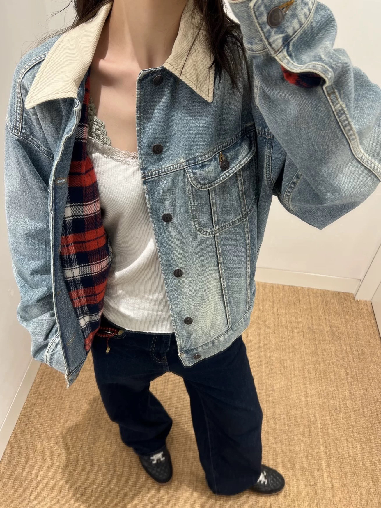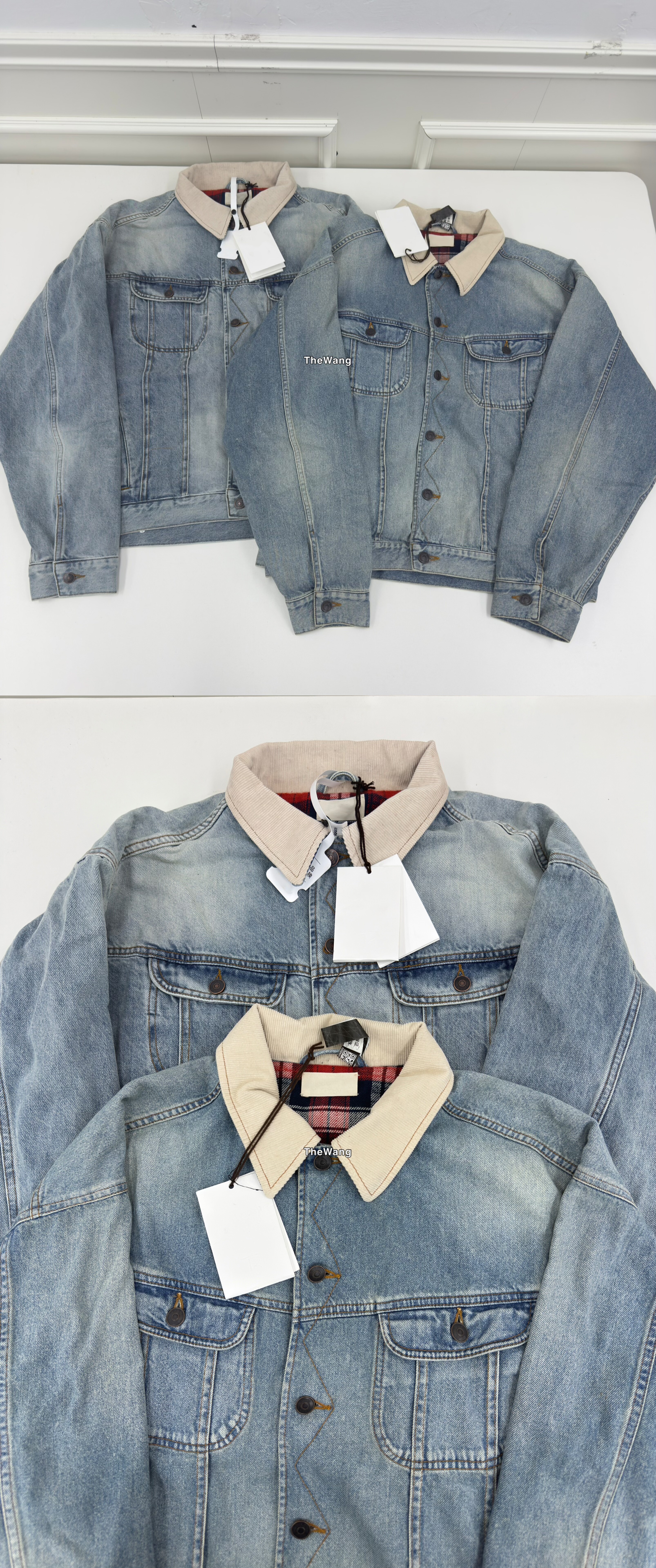 Row25Ssjoret Washed Blue Flannel Lined Denim Corduroy Lapel Jacket