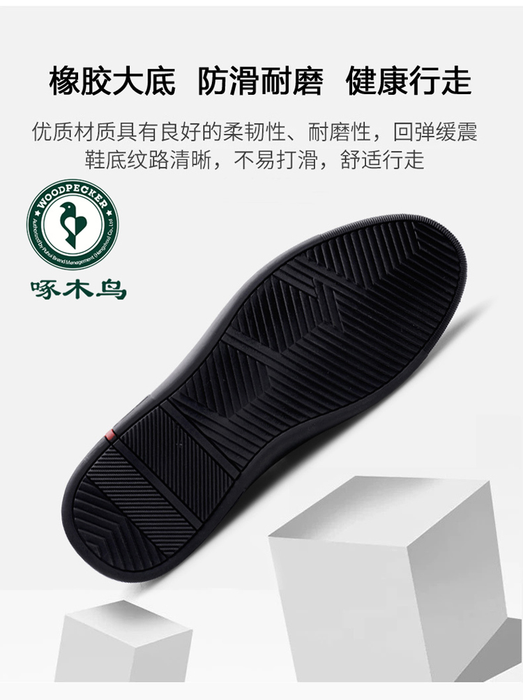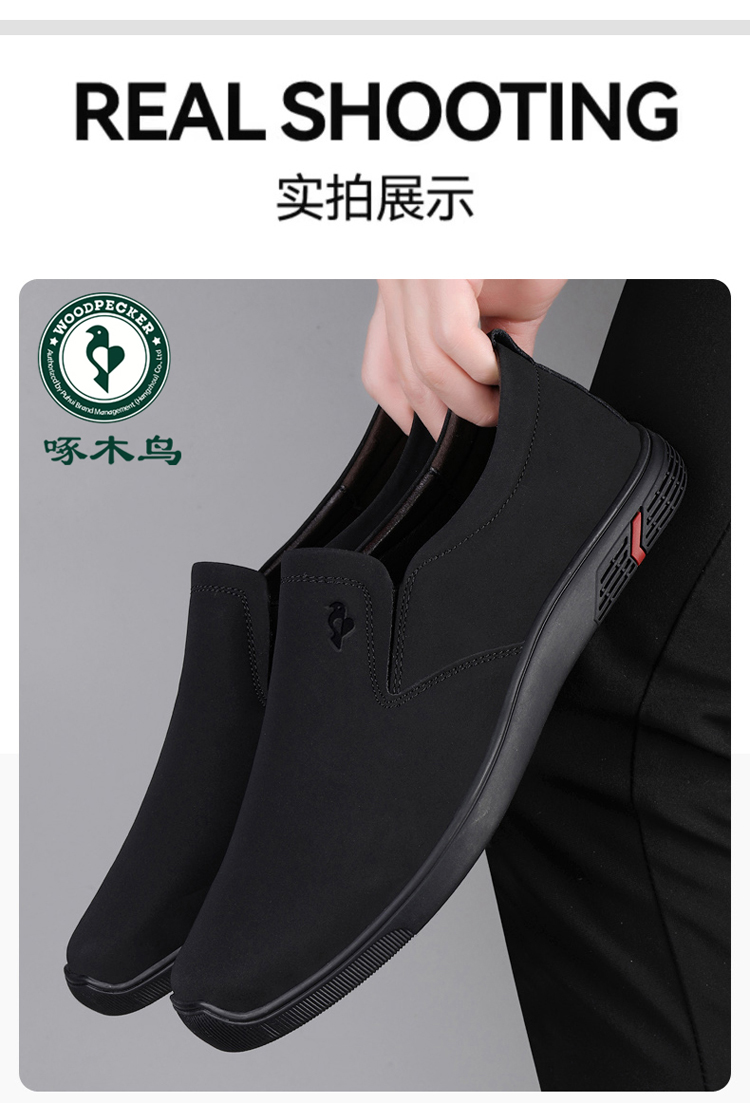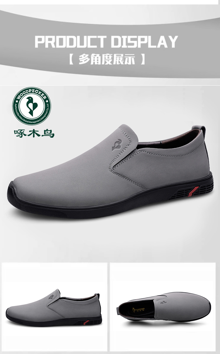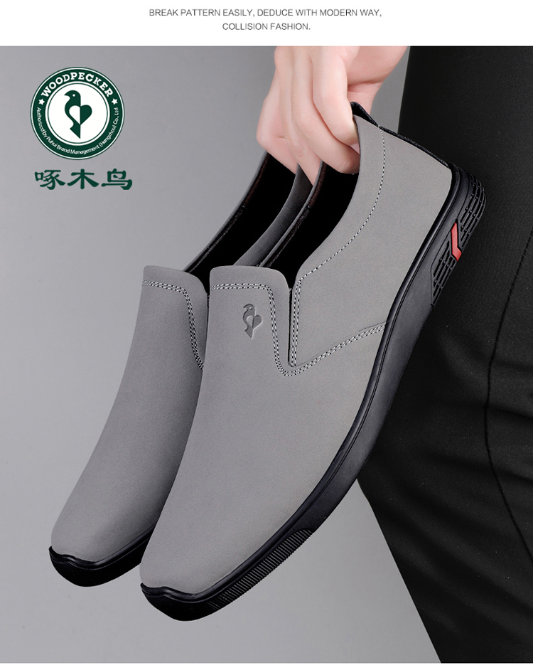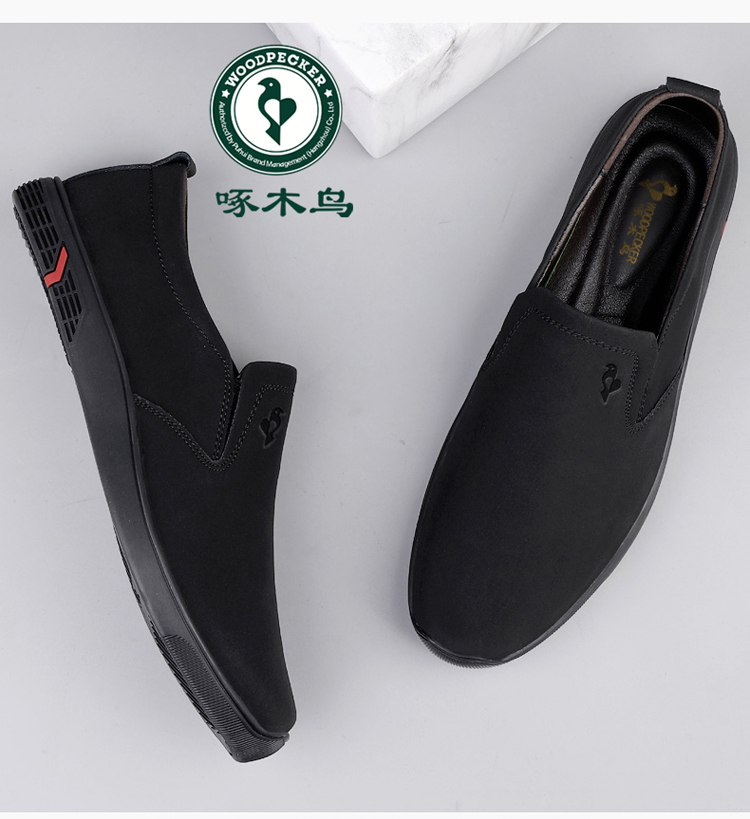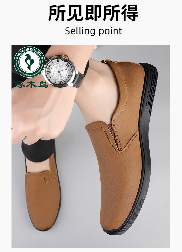 Woodpecker Men's Shoes Spring New Men's Casual Leather Shoes Genuine Cowhide Versatile Slip-On Soft Leather Soft Sole Dad Shoes