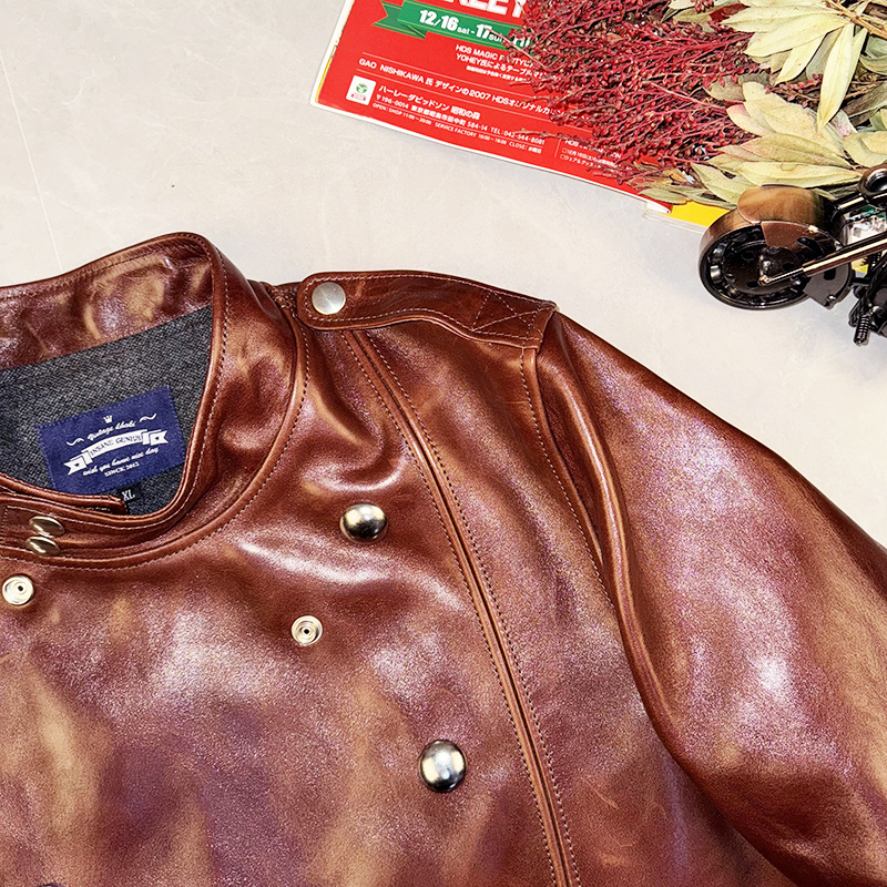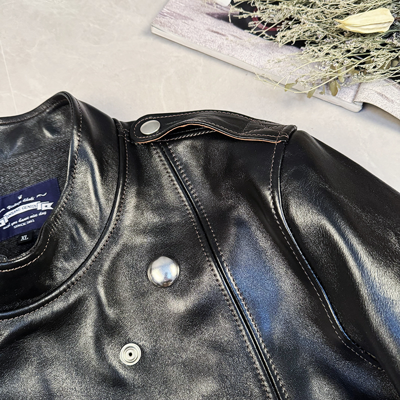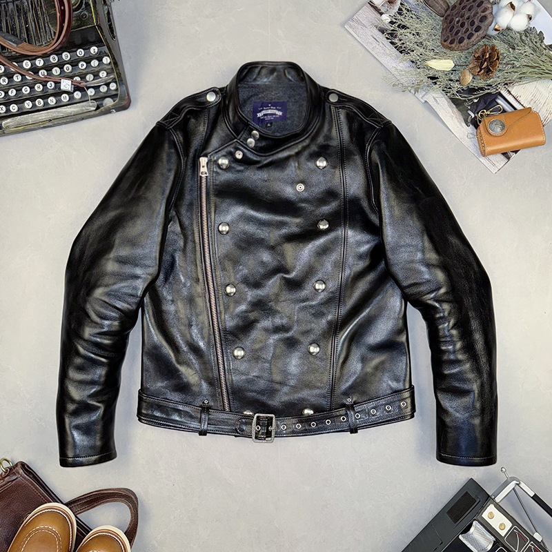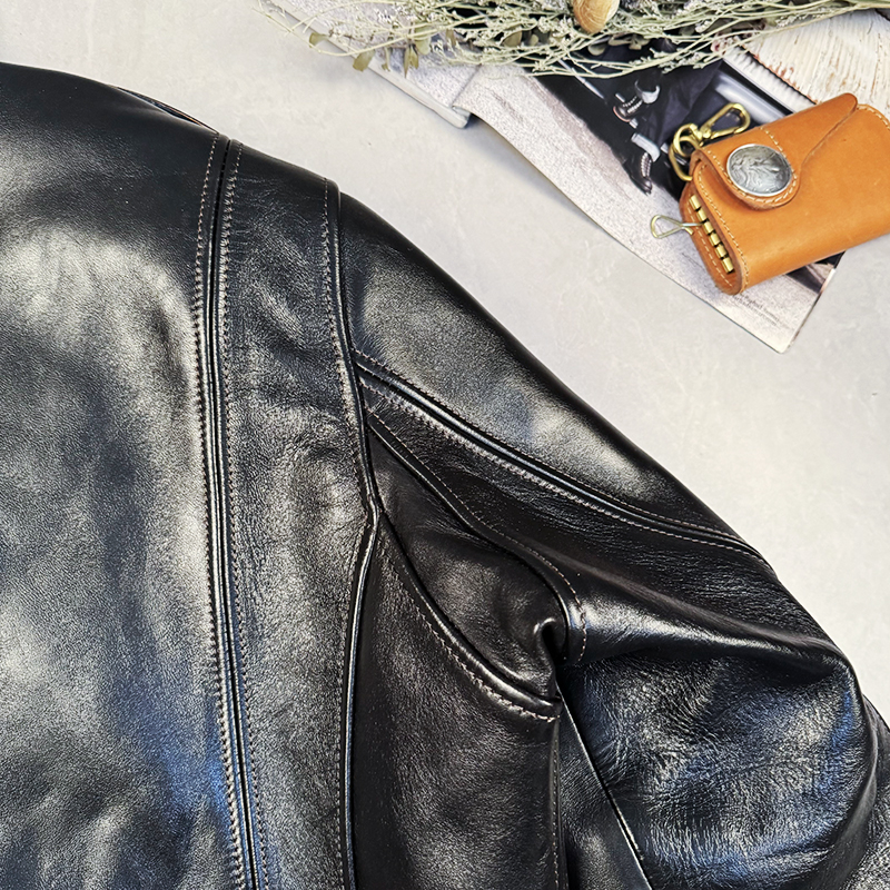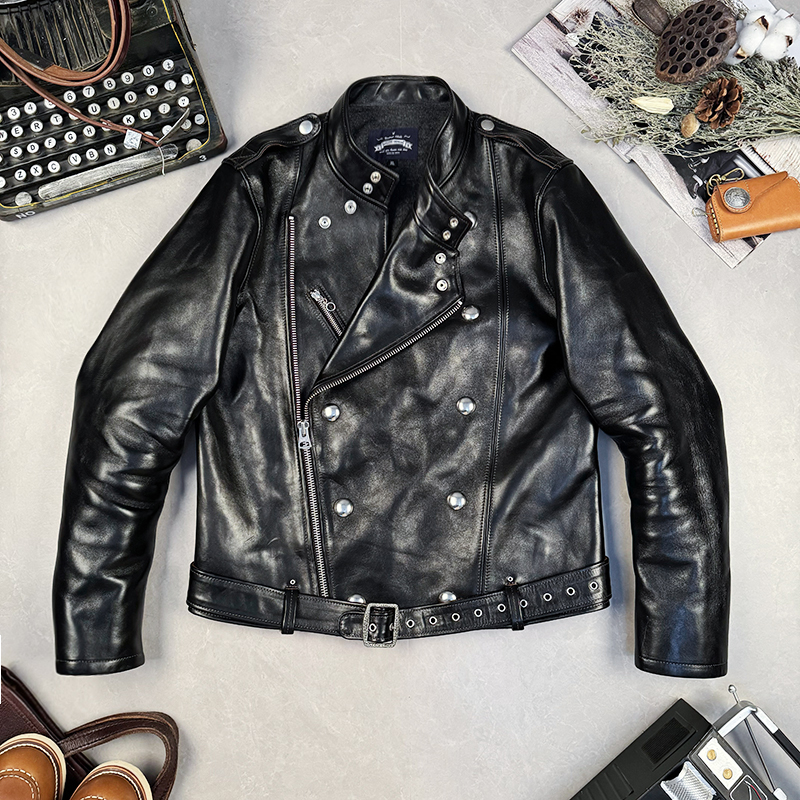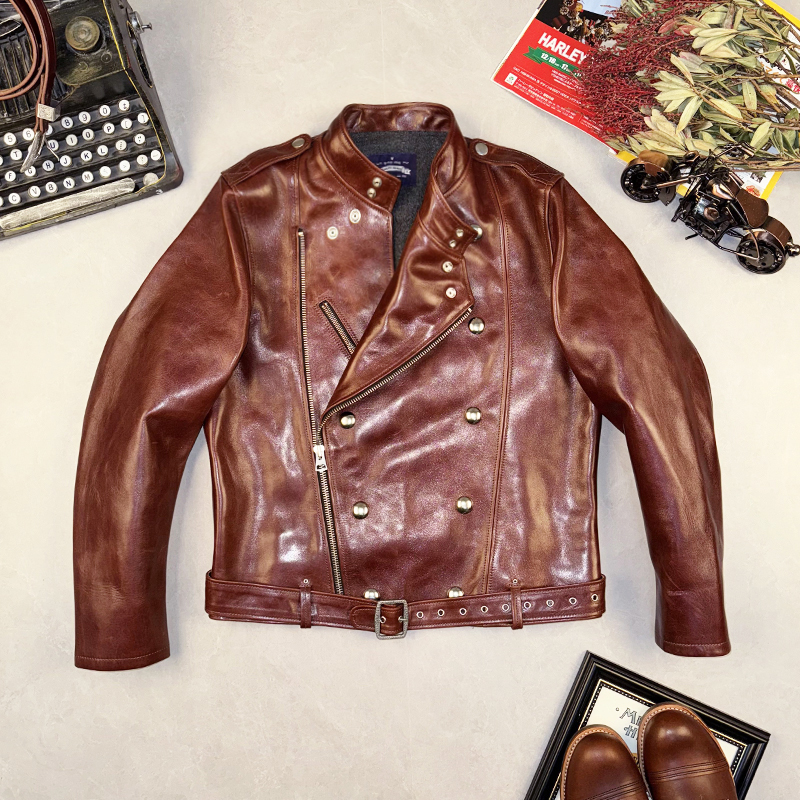 Heavyweight Tea Core Horse Leather J31 Pig Milk Vintage Khaki Slim Fit Stand Collar Genuine Leather Biker Diagonal Zipper Leather Jacket for Men