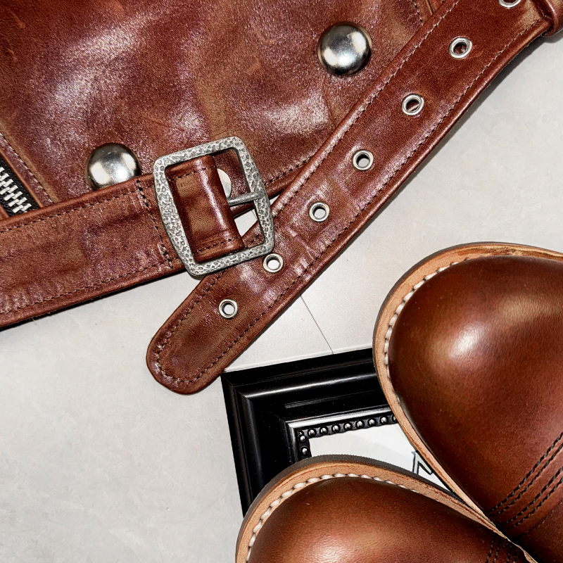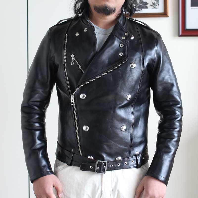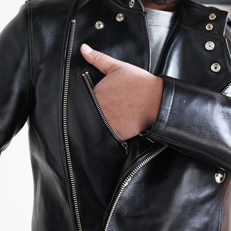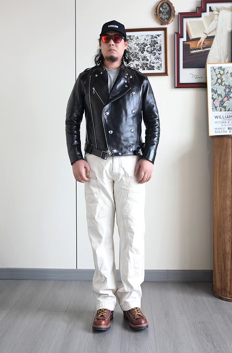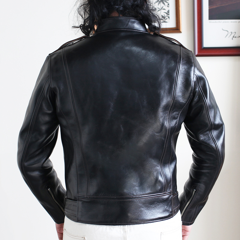 Heavyweight Tea Core Horse Leather J31 Pig Milk Vintage Khaki Slim Fit Stand Collar Genuine Leather Biker Diagonal Zipper Leather Jacket for Men