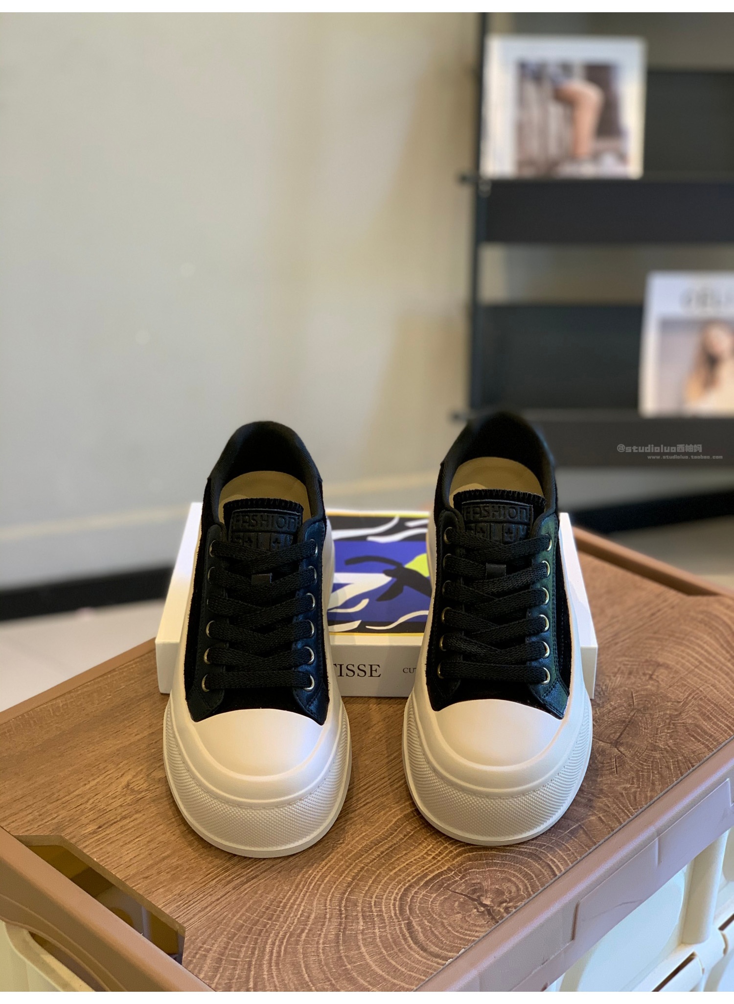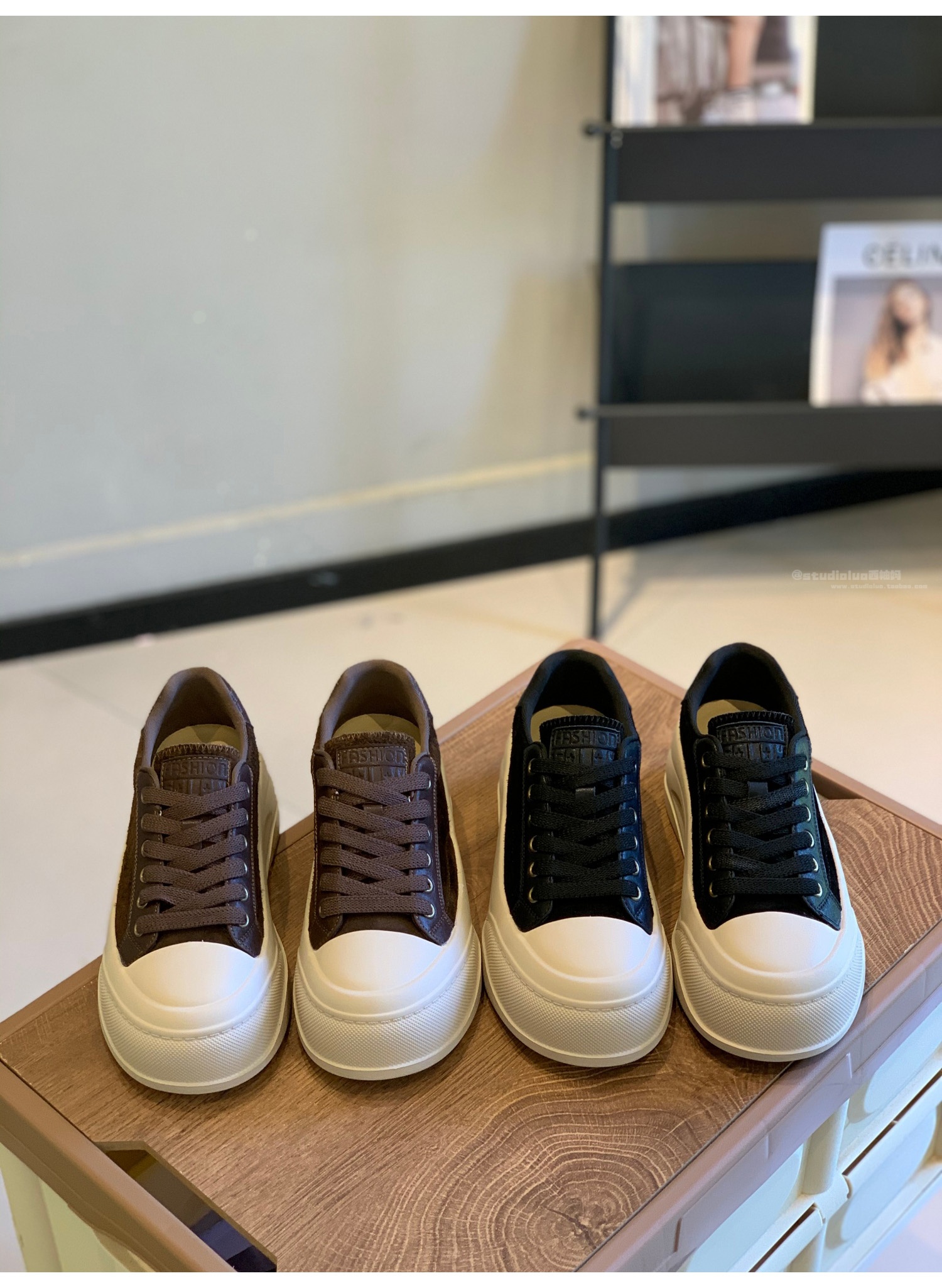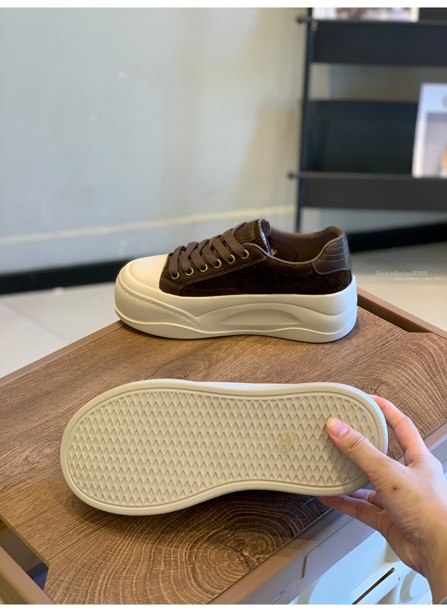 Hong Kong Genuine Leather Height-Increasing Lace-Up Thick-Soled White Sneakers for Women 2025 Spring and Autumn New Versatile Fashion Retro Casual Sneakers