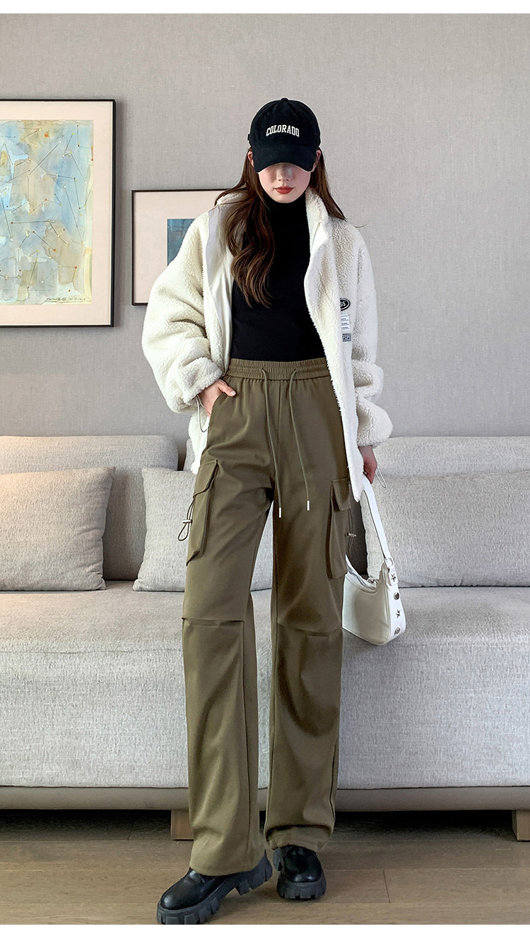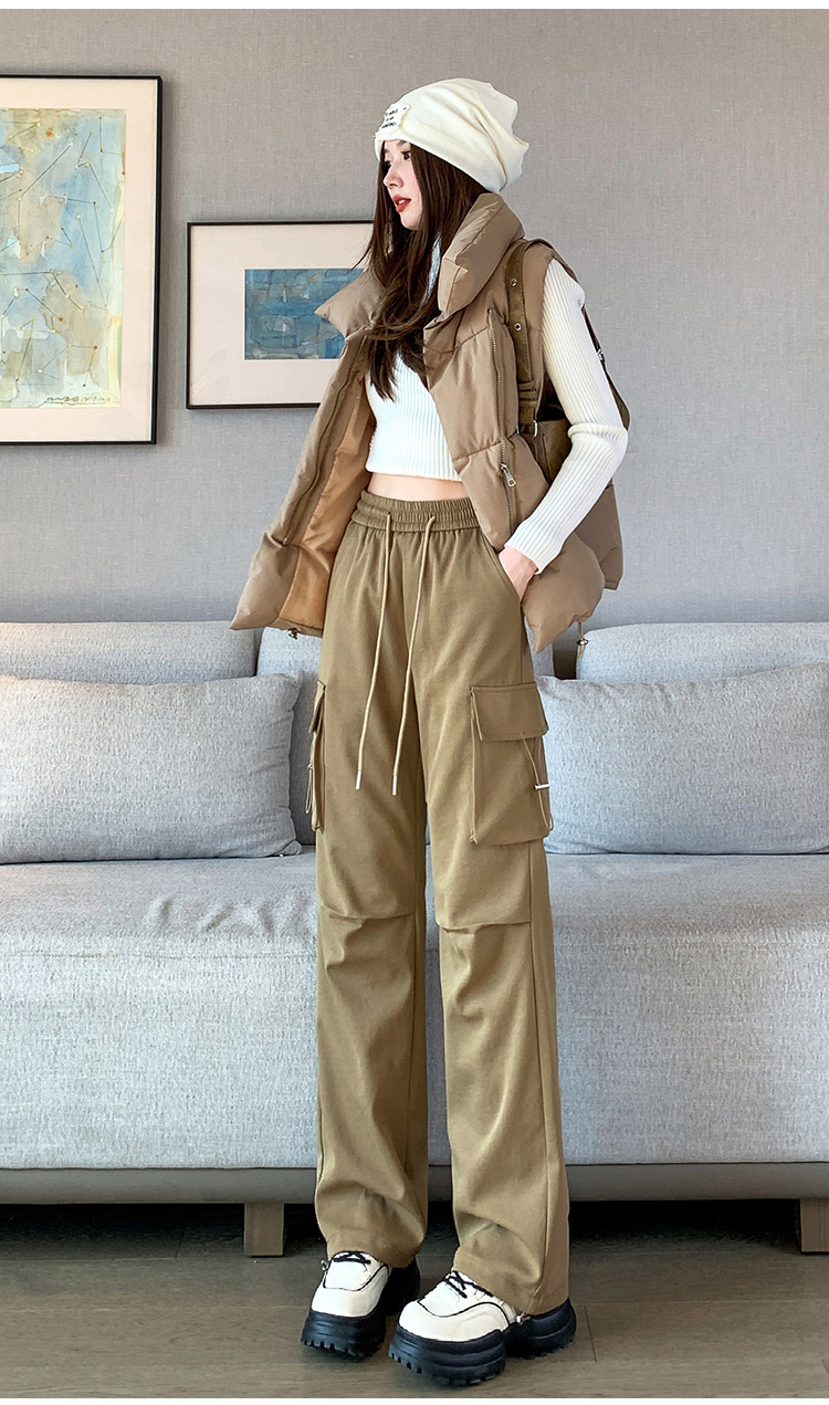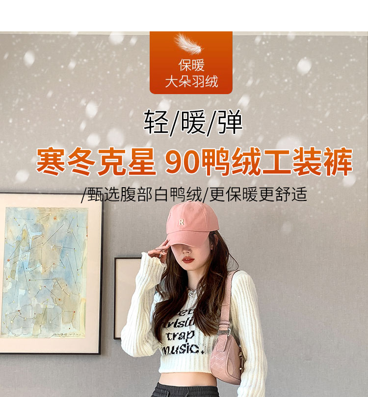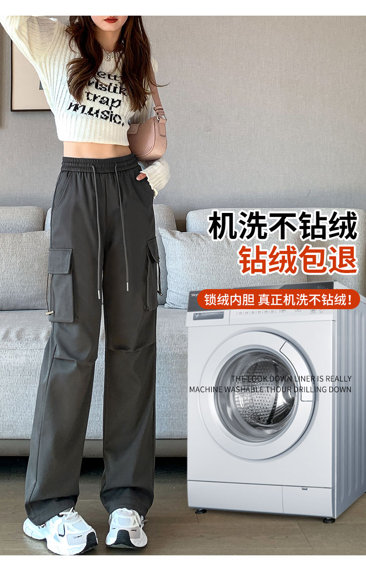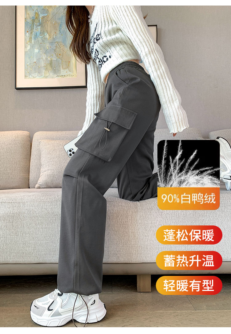 Workwear down Pants for Women, Suitable for Outdoor Wear, 2025 Winter New Model, High-Waisted, Fleece-Lined, Thickened, Windproof, Cold-Proof, Warm Cotton Pants for Northeast