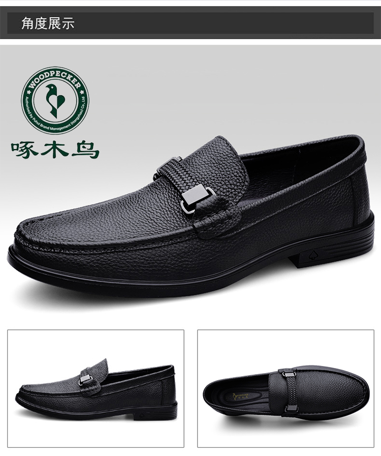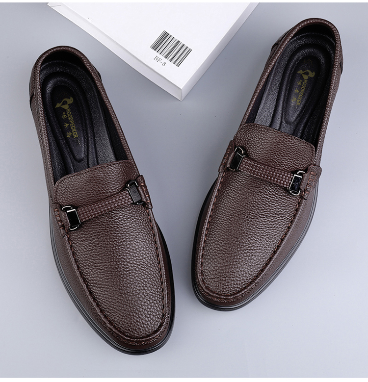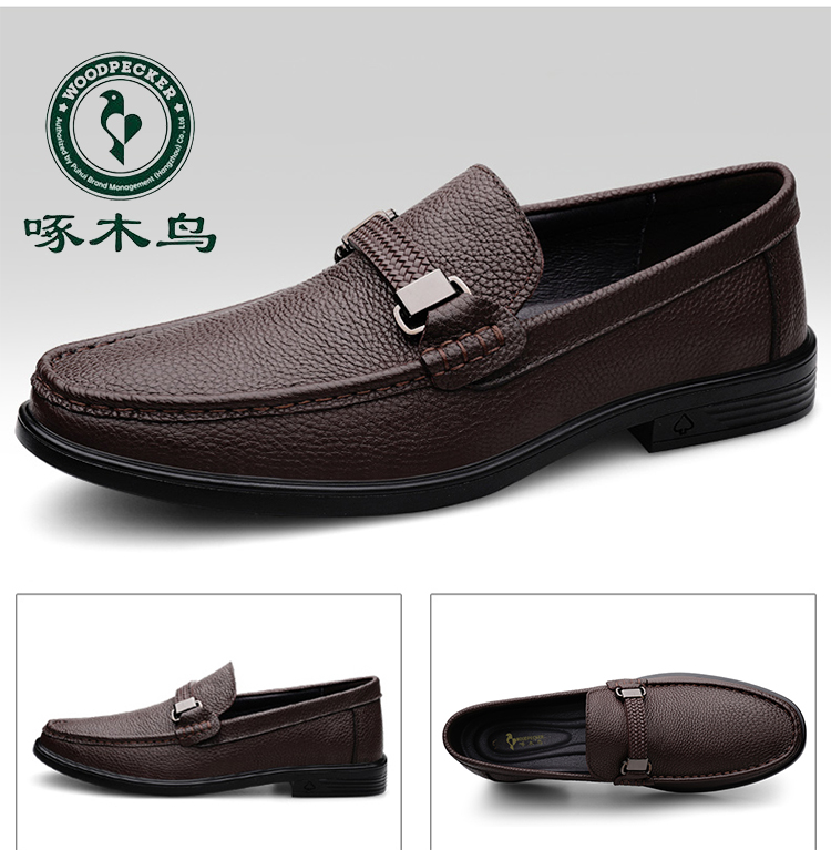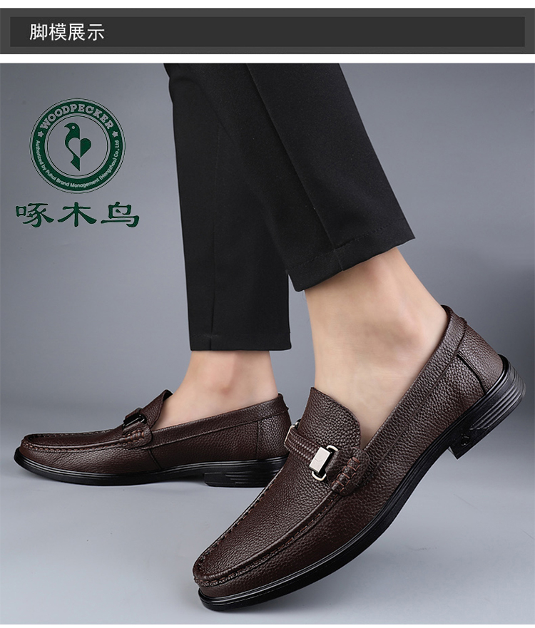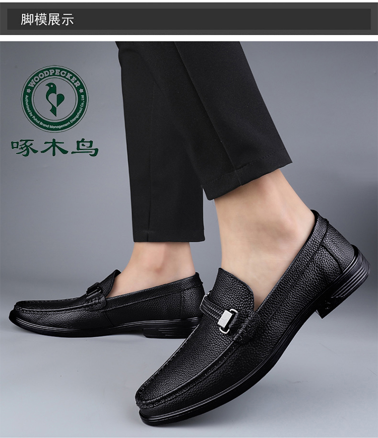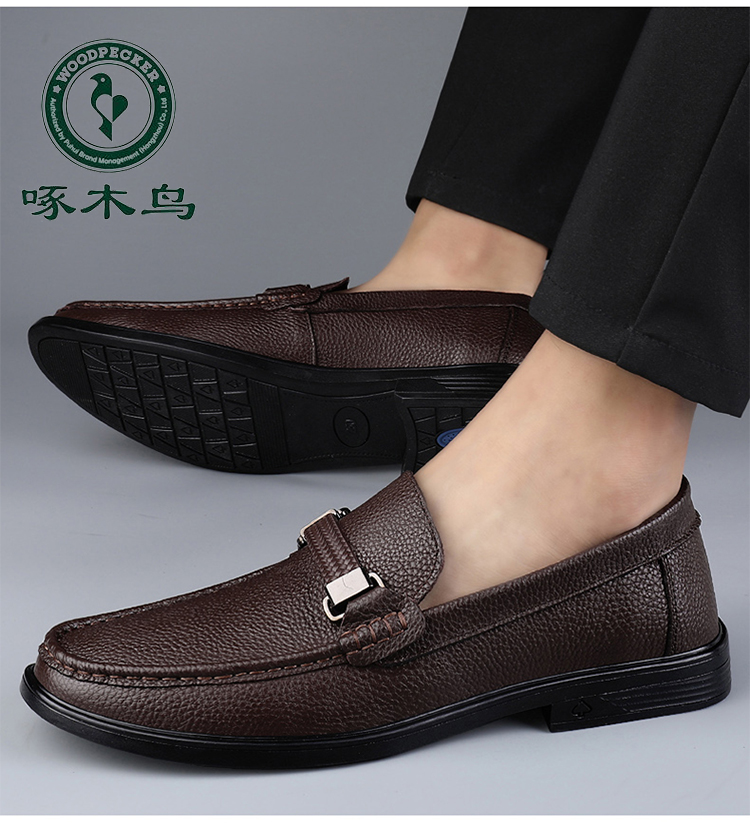 Woodpecker Men's Business Casual Leather Shoes Genuine Leather Beanie Shoes Men's 2025 Spring New Slip-On Middle-Aged and Elderly Men's Shoes
