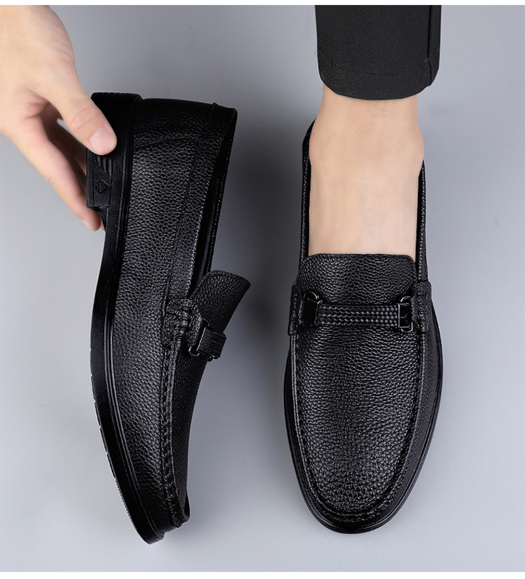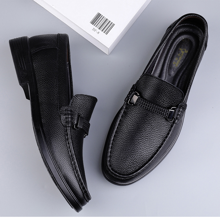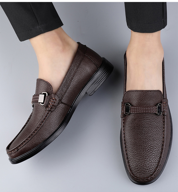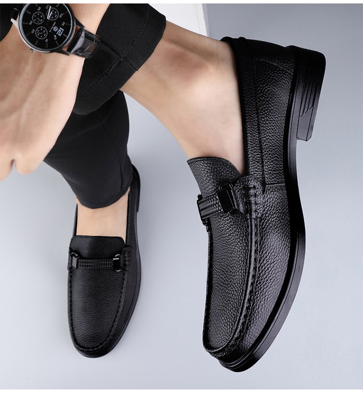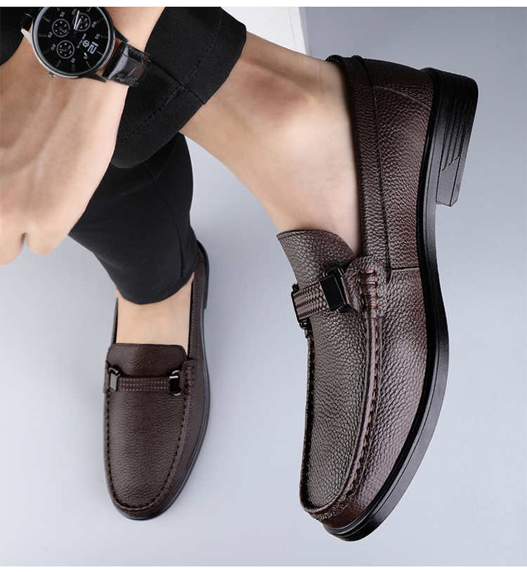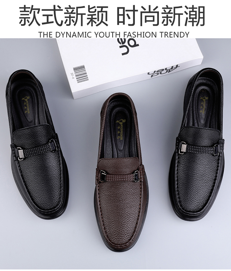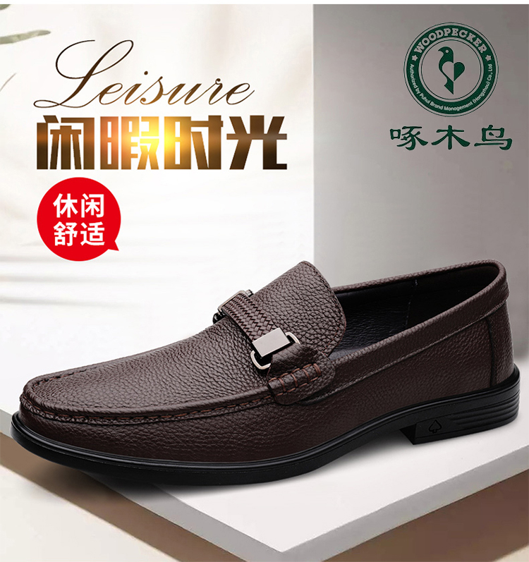 Woodpecker Men's Business Casual Leather Shoes Genuine Leather Beanie Shoes Men's 2025 Spring New Slip-On Middle-Aged and Elderly Men's Shoes