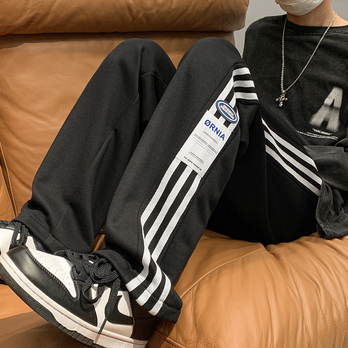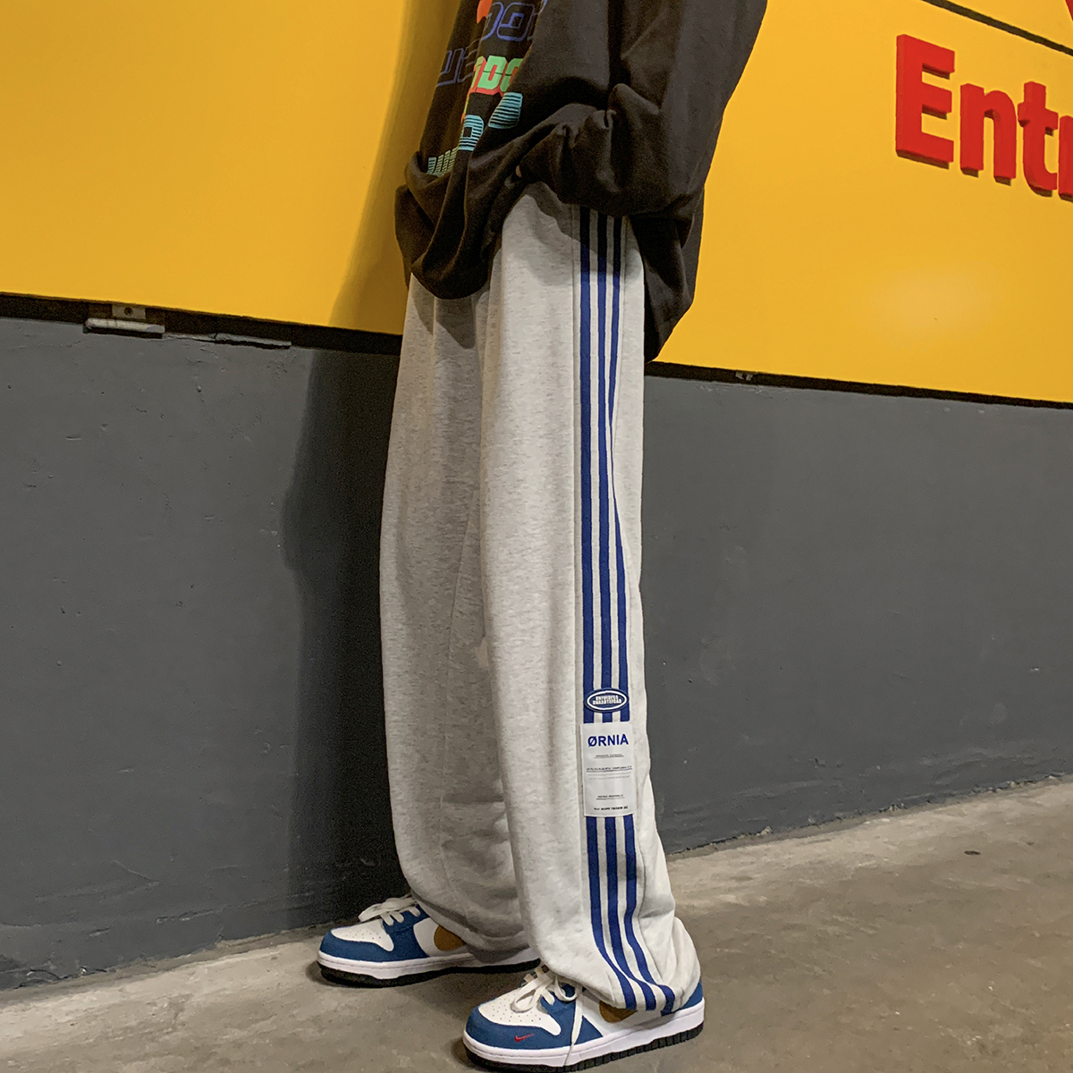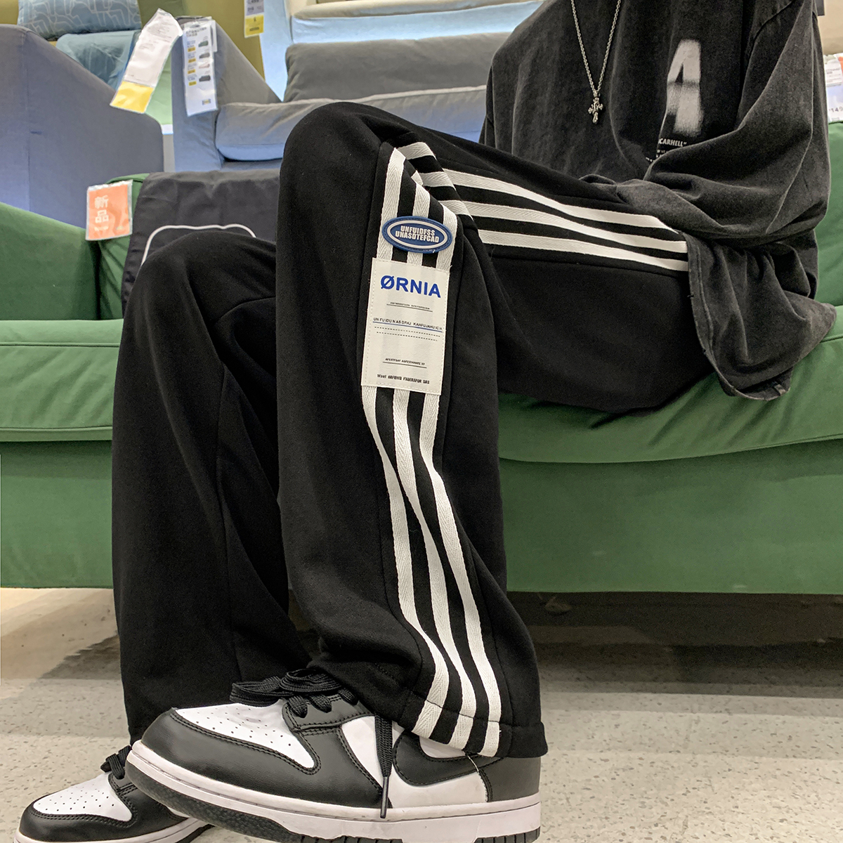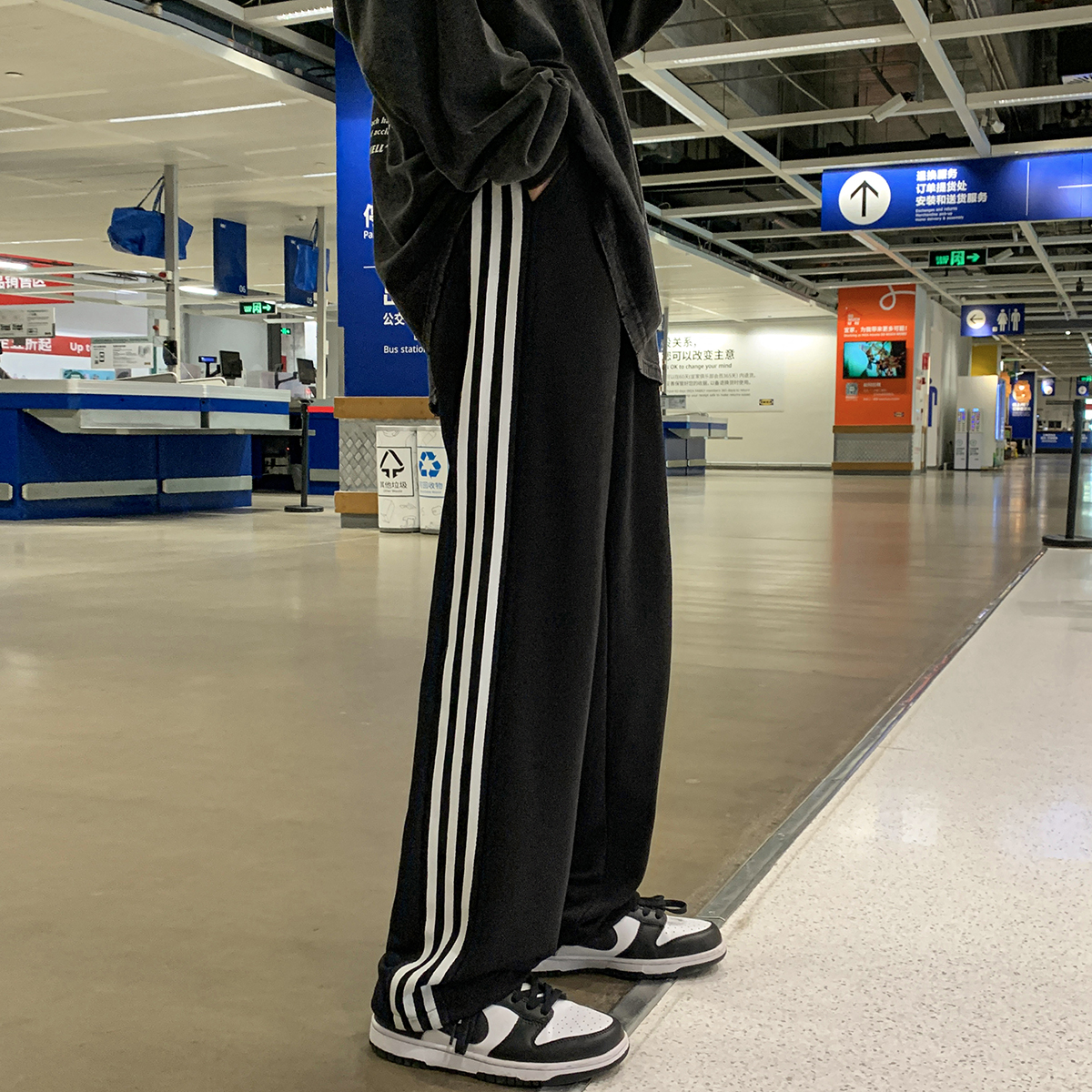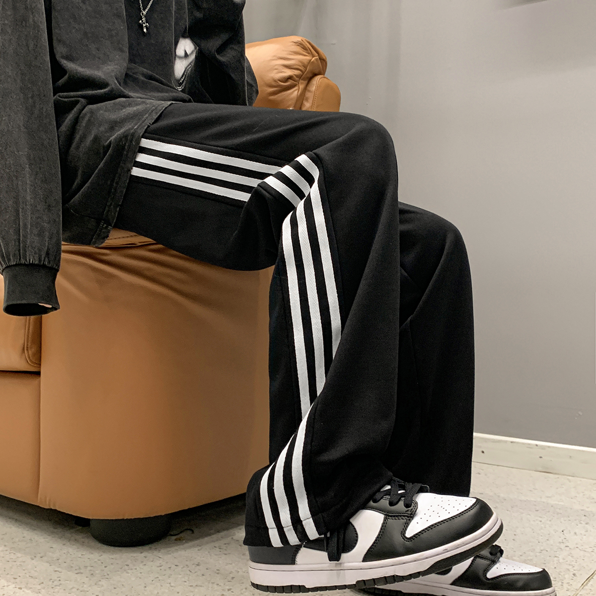 Japanese-Style Side-Striped Sports Sweatpants for Men, Autumn High-Street Versatile Striped Straight-Leg Pants, Drapey Wide-Leg Casual Pants