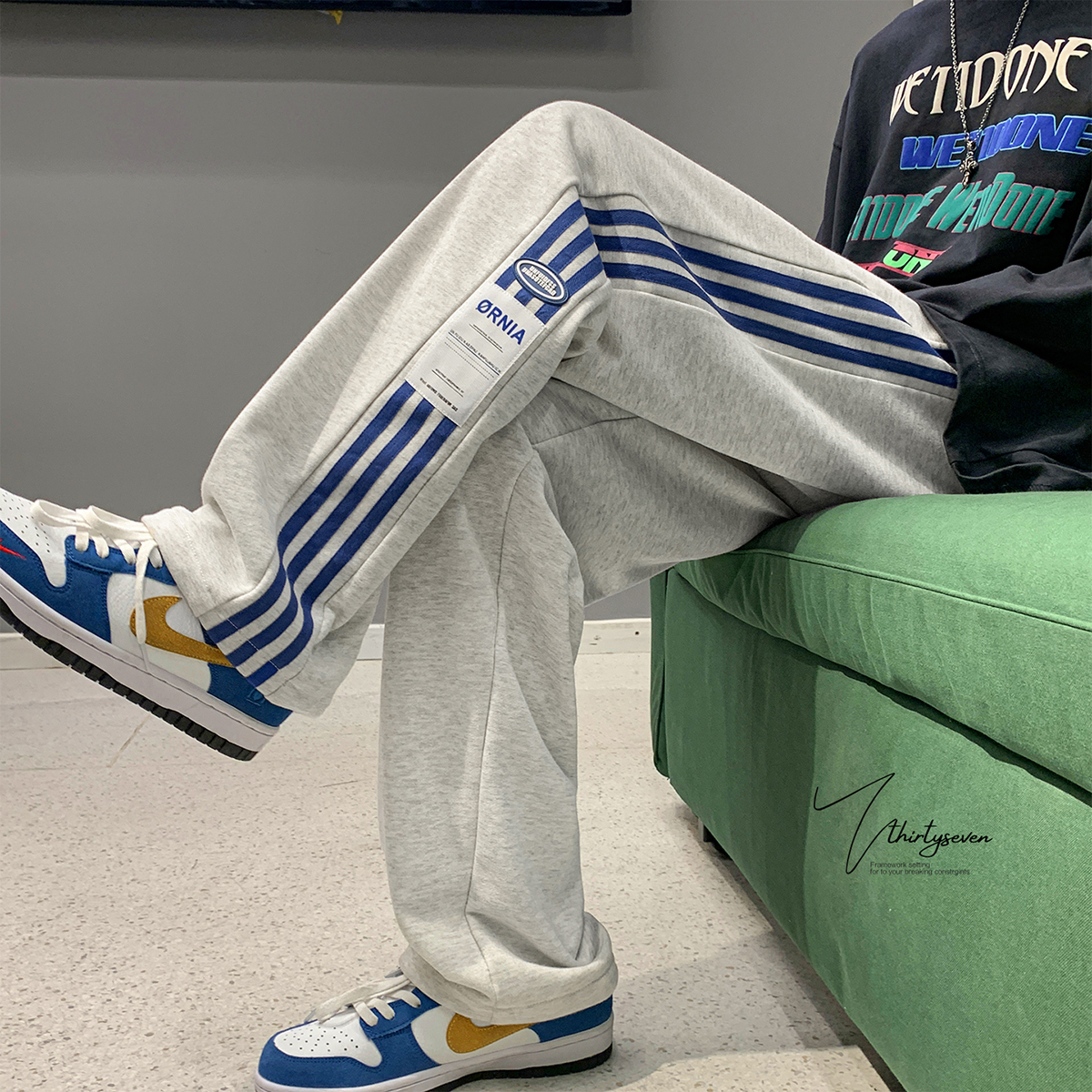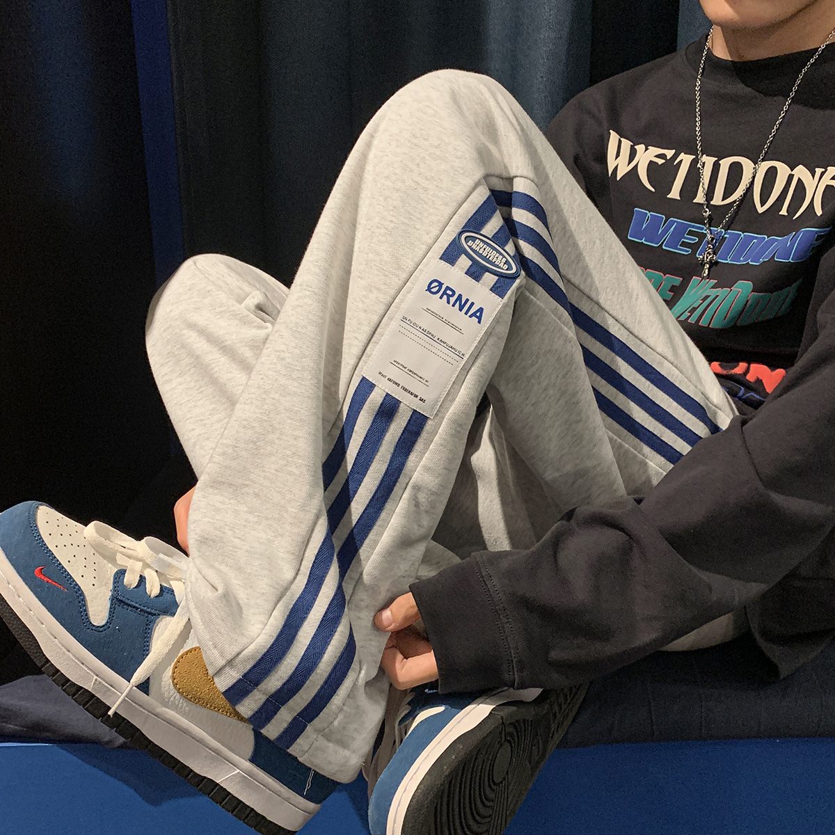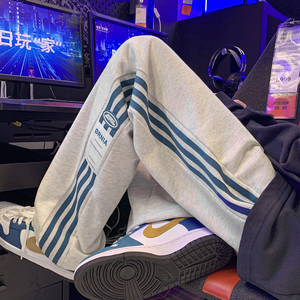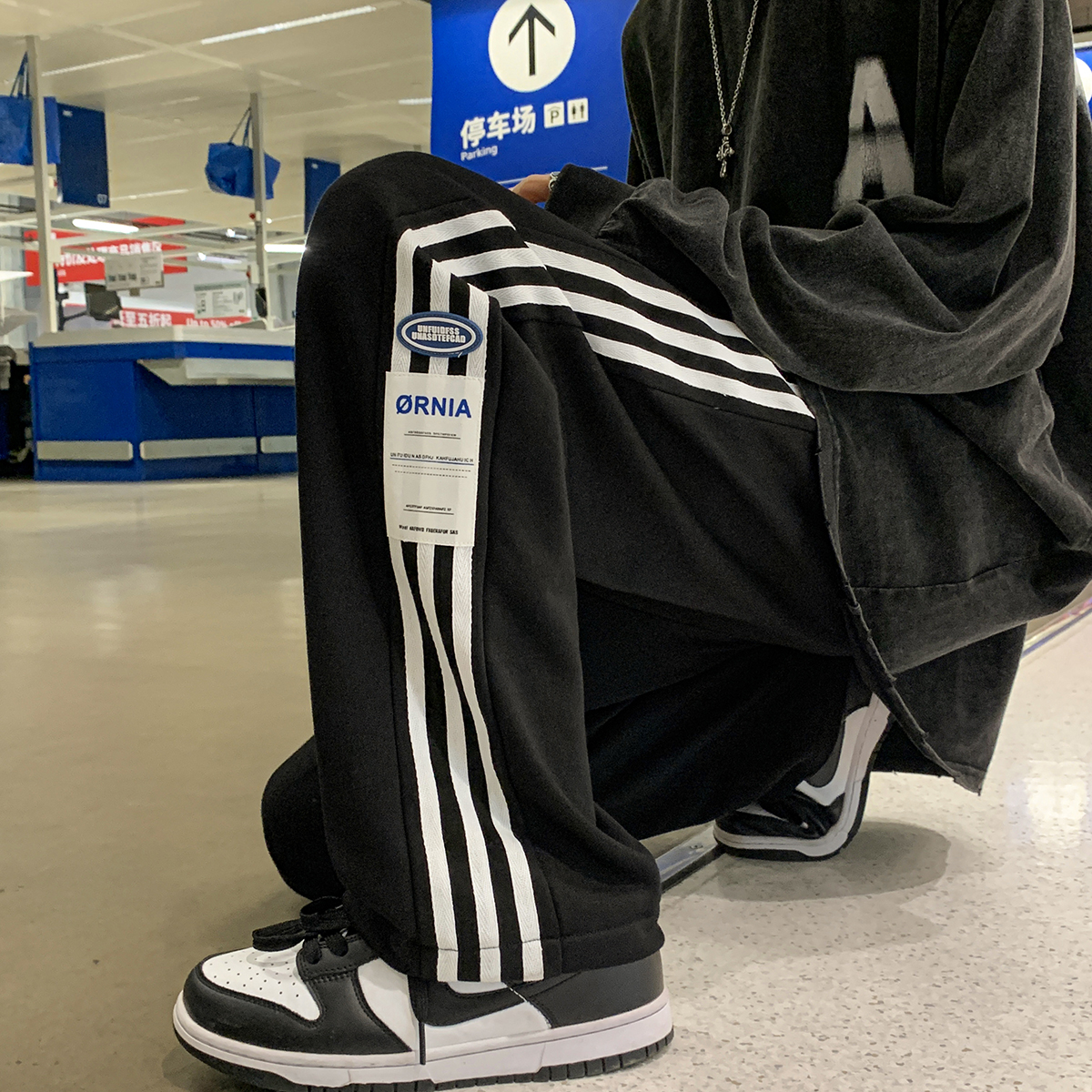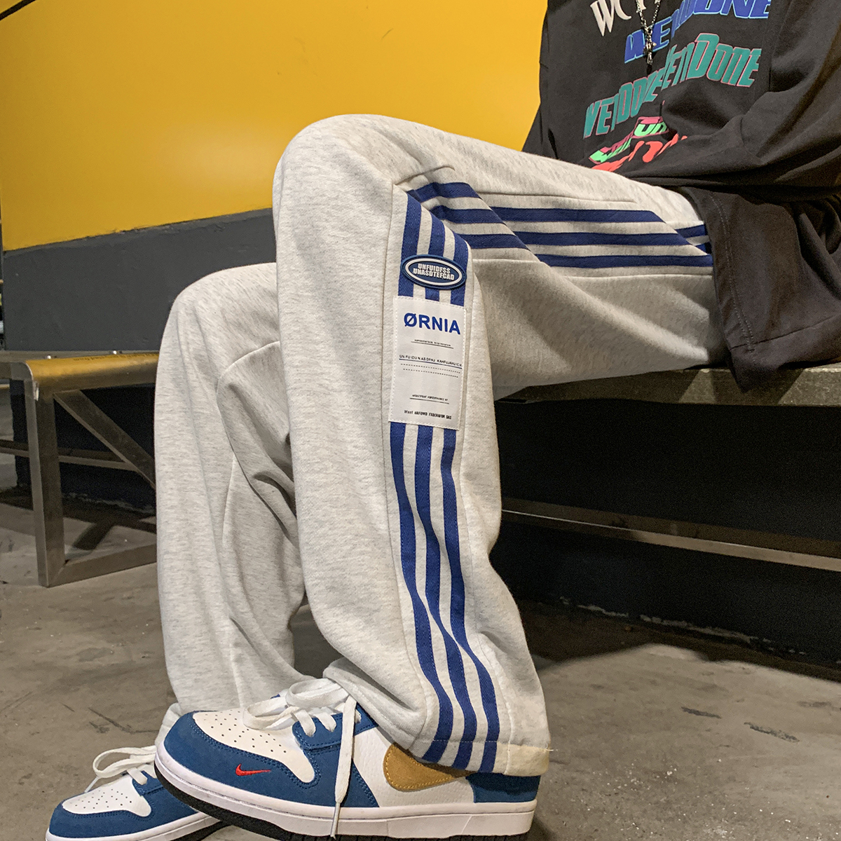 Japanese-Style Side-Striped Sports Sweatpants for Men, Autumn High-Street Versatile Striped Straight-Leg Pants, Drapey Wide-Leg Casual Pants