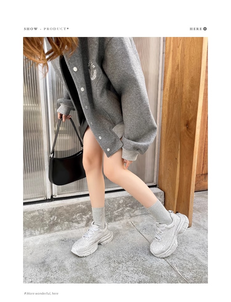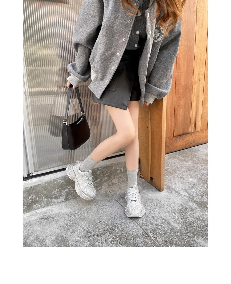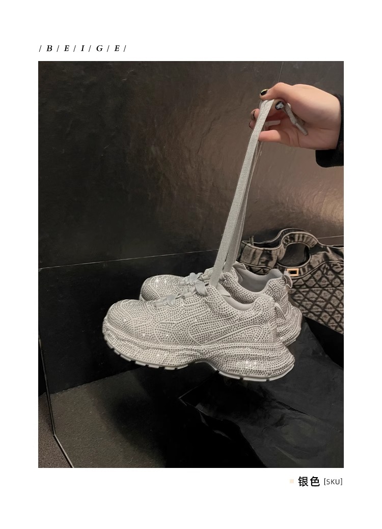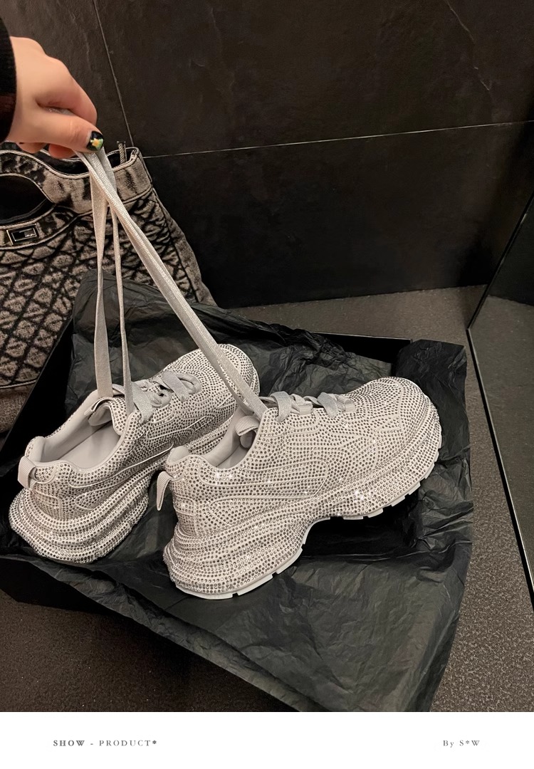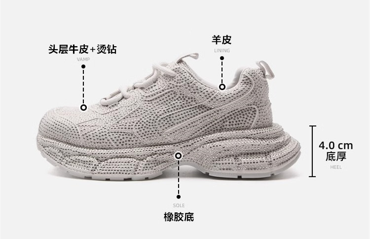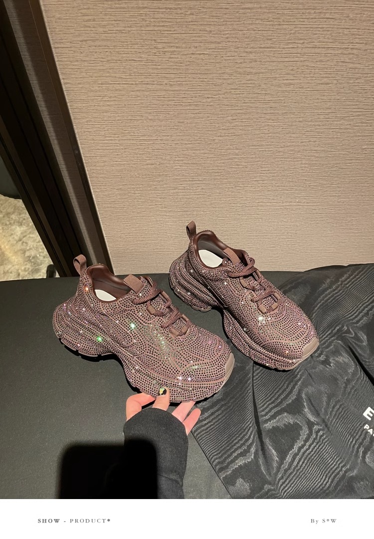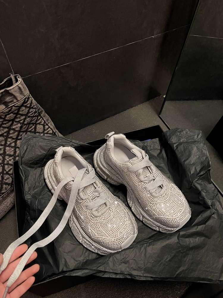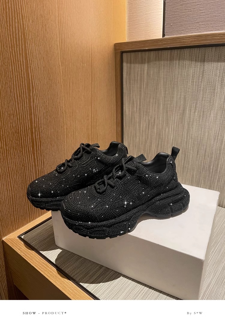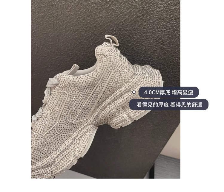 Hong Kong Full-Diamond Paris Dad Sneakers for Women, 2025 Spring and Autumn New Trendy Lace-Up Thick-Soled Height-Increasing Casual Sports Shoes