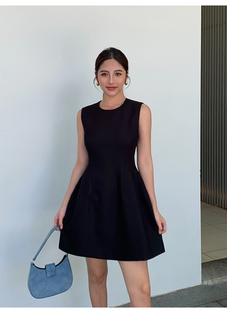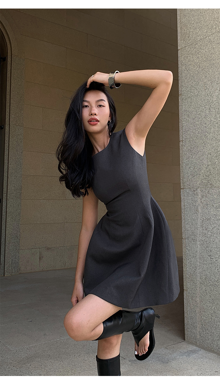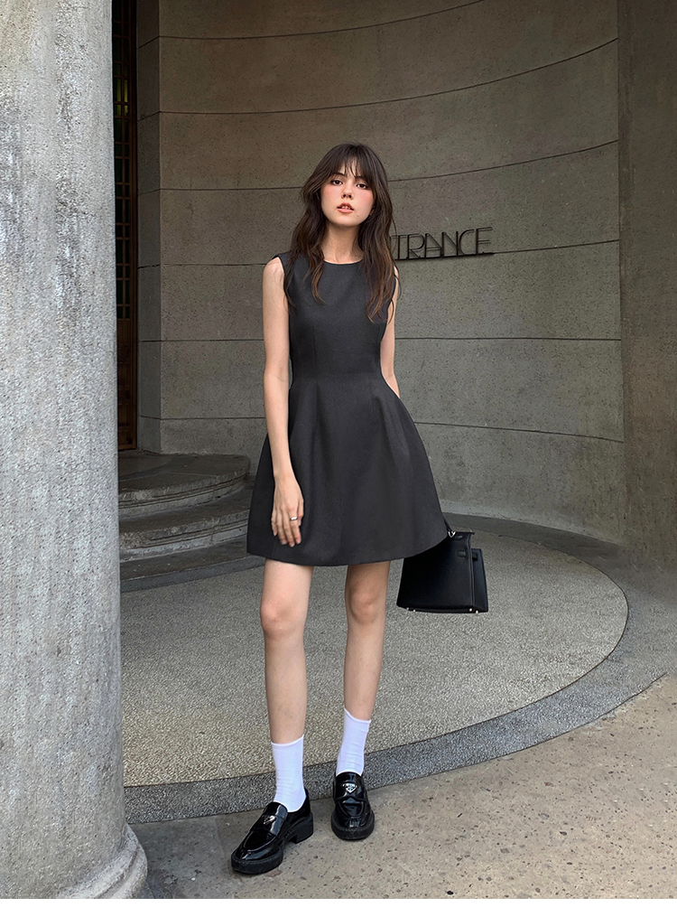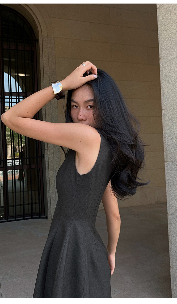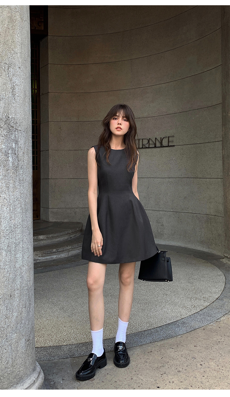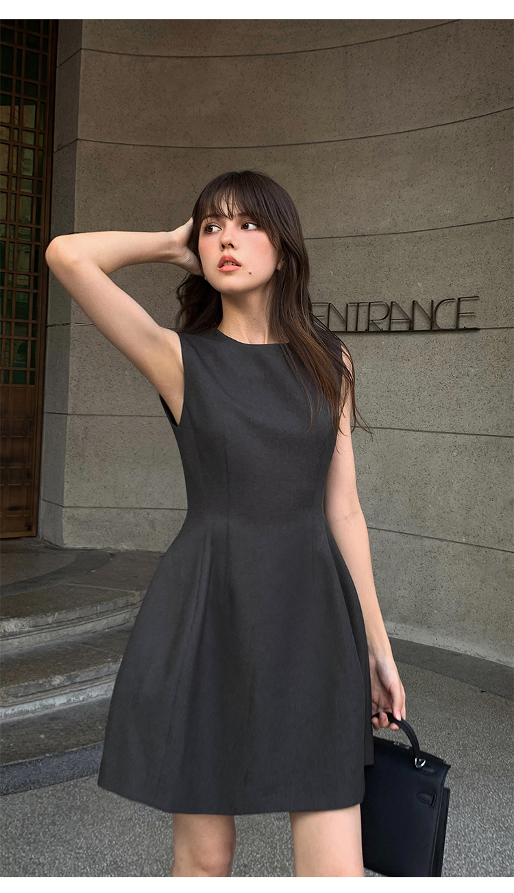 Nevahu Gray Sleeveless Vest Dress for Women 2025 Summer New Style Layered Elegant Waist-Cinching Short Skirt for Petite Figures