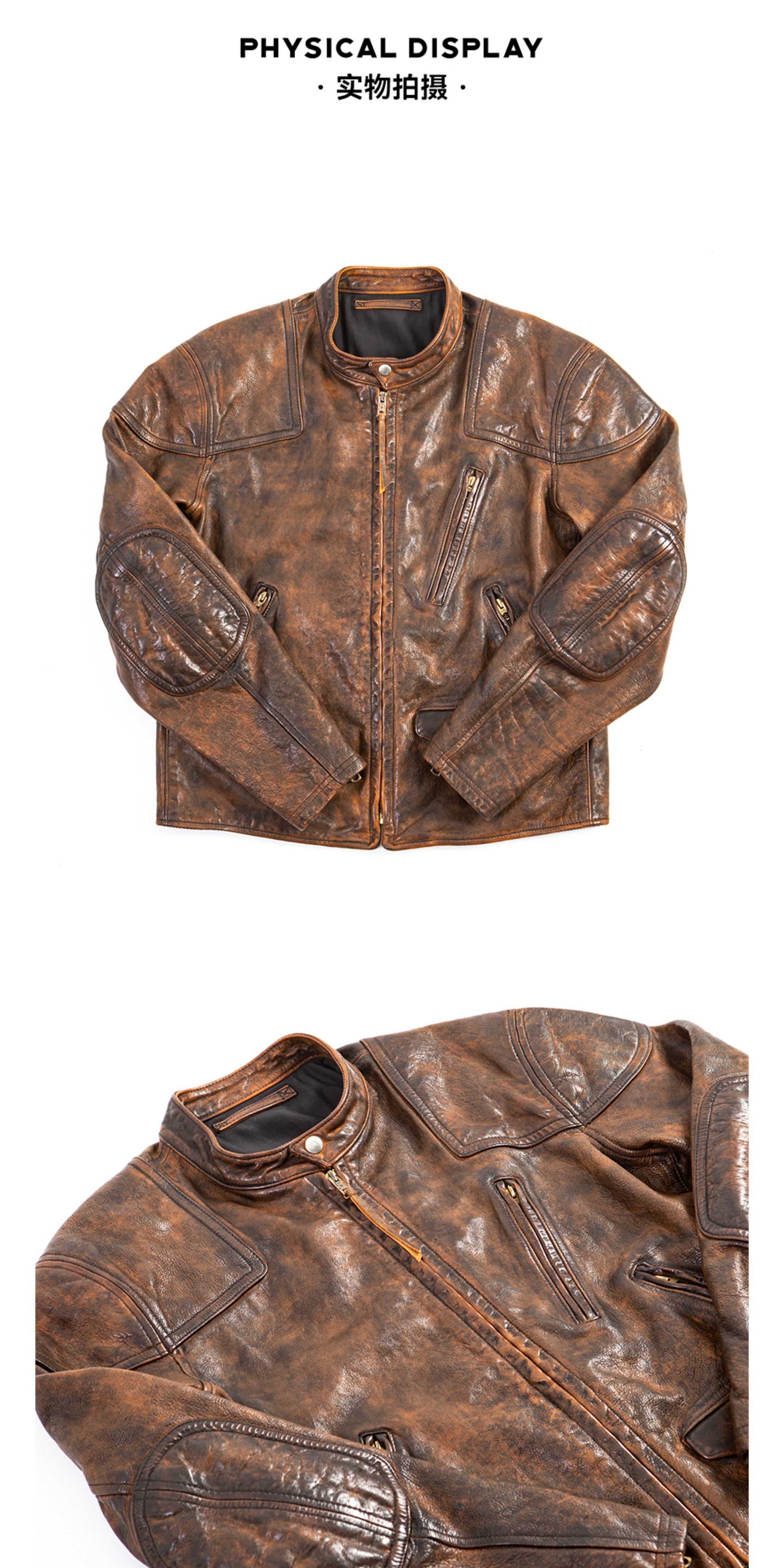 Big Red Date Reddate Deep Replica Venom Leather Jacket, Cowhide Biker Short Jacket, Washed and Distressed, American Retro Style