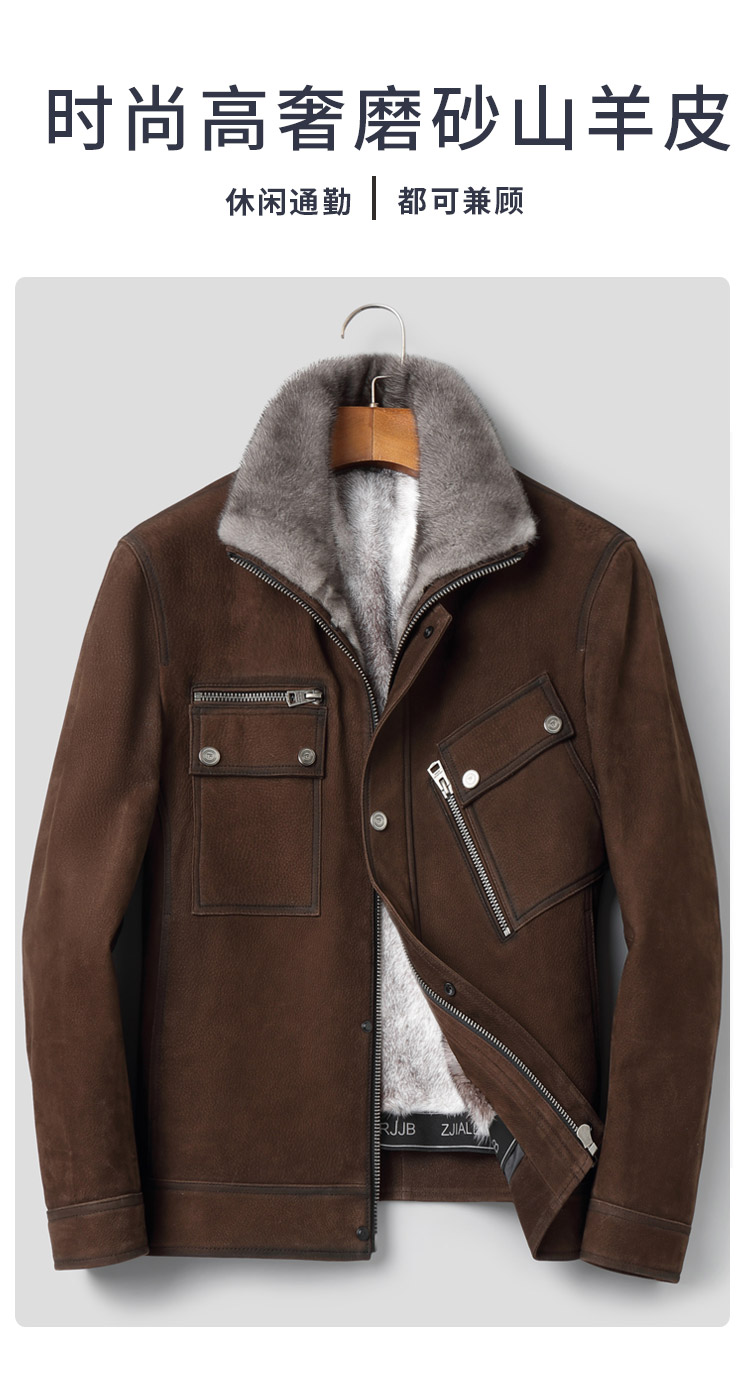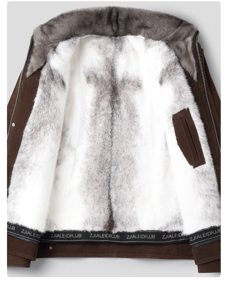 Mink Fur Coat for Men, Whole Mink, Mink Lining, Genuine Leather Jacket, Fur Integrated, Fur Suede, Goatskin Jacket