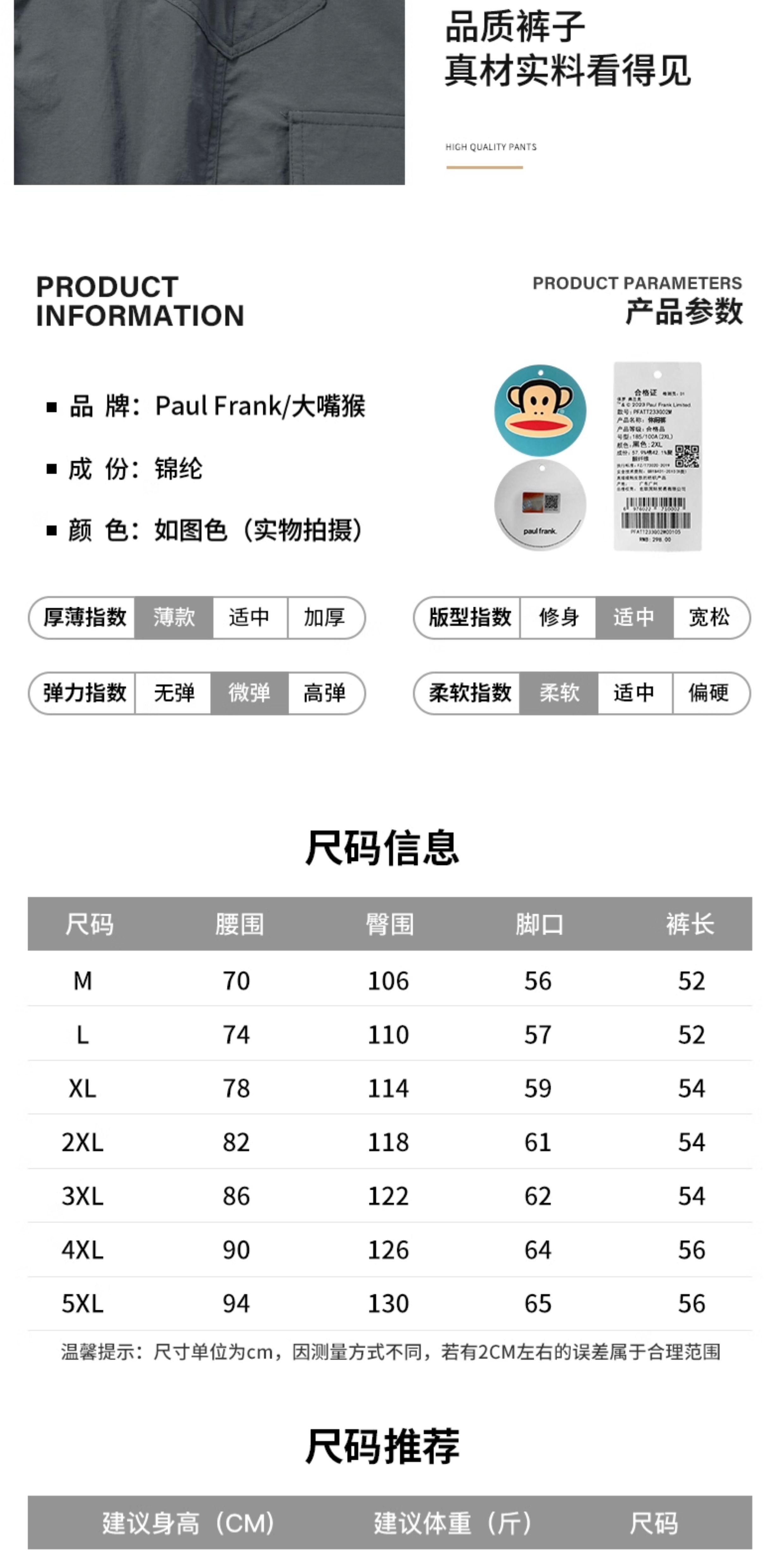Paulfrank/Big Mouth Monkey 2025 Summer New Casual Shorts Loose Ice Silk Pants for Men