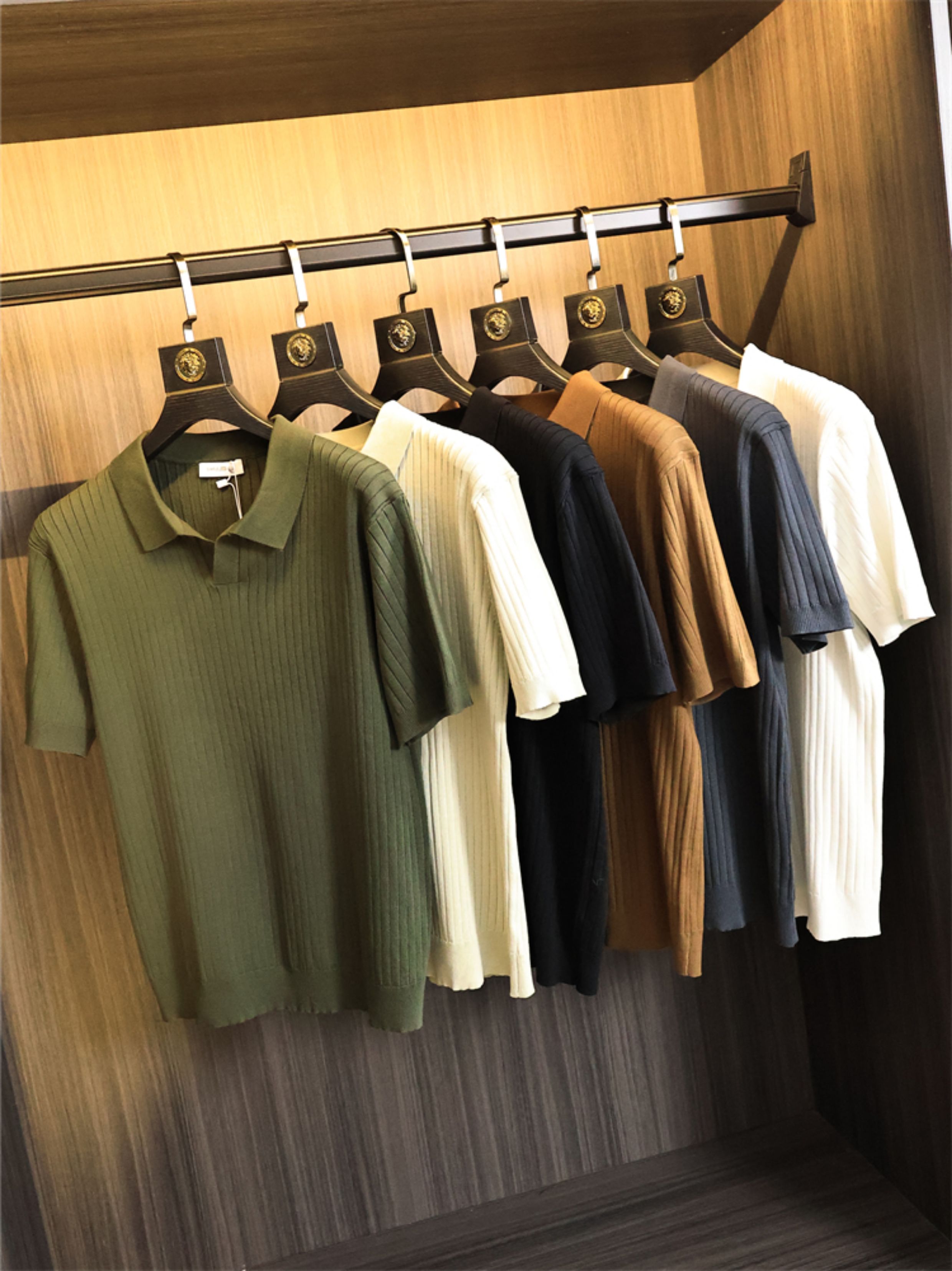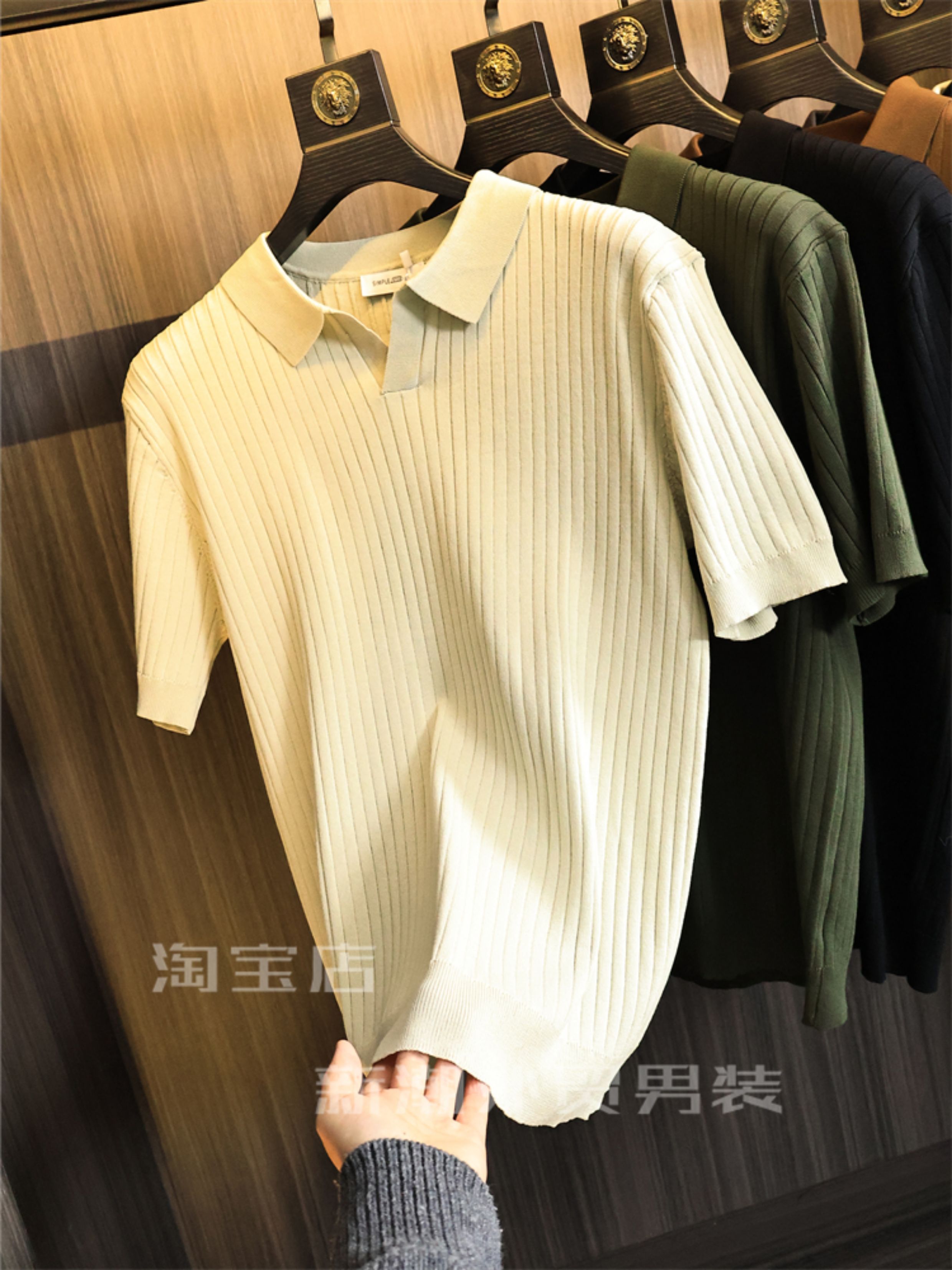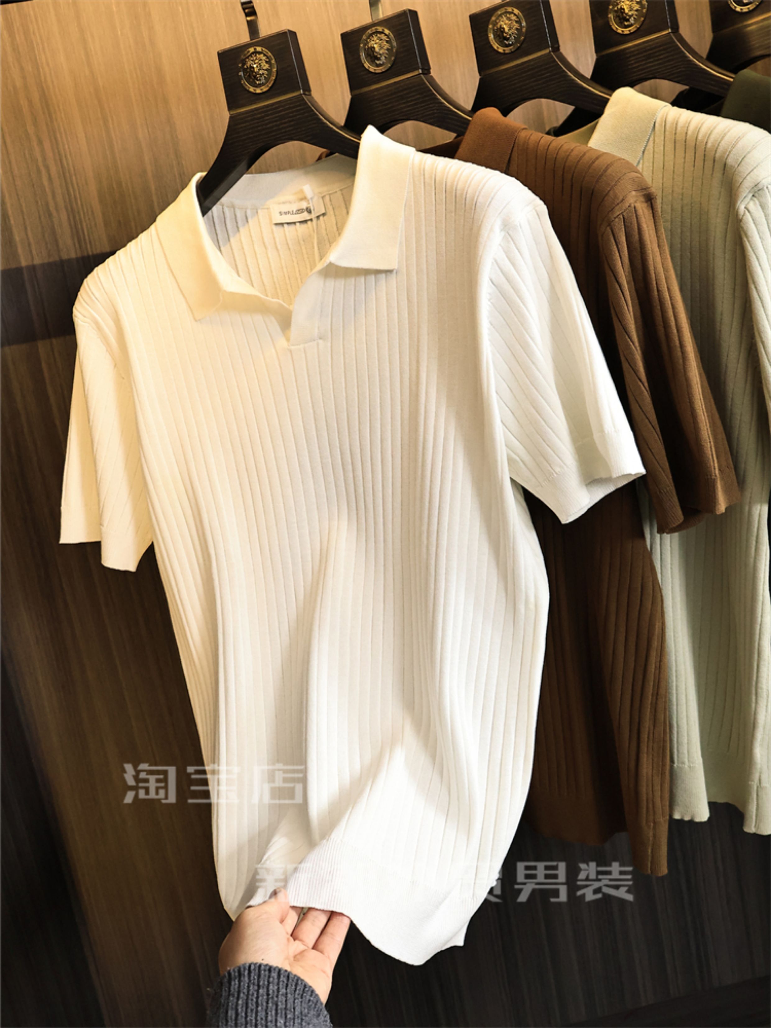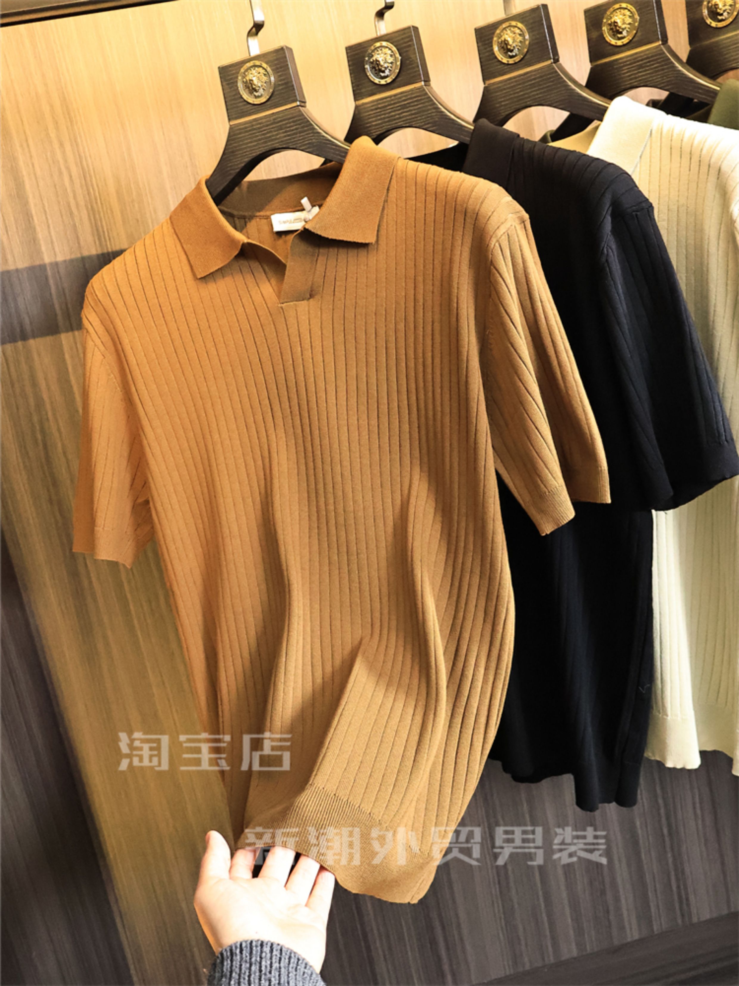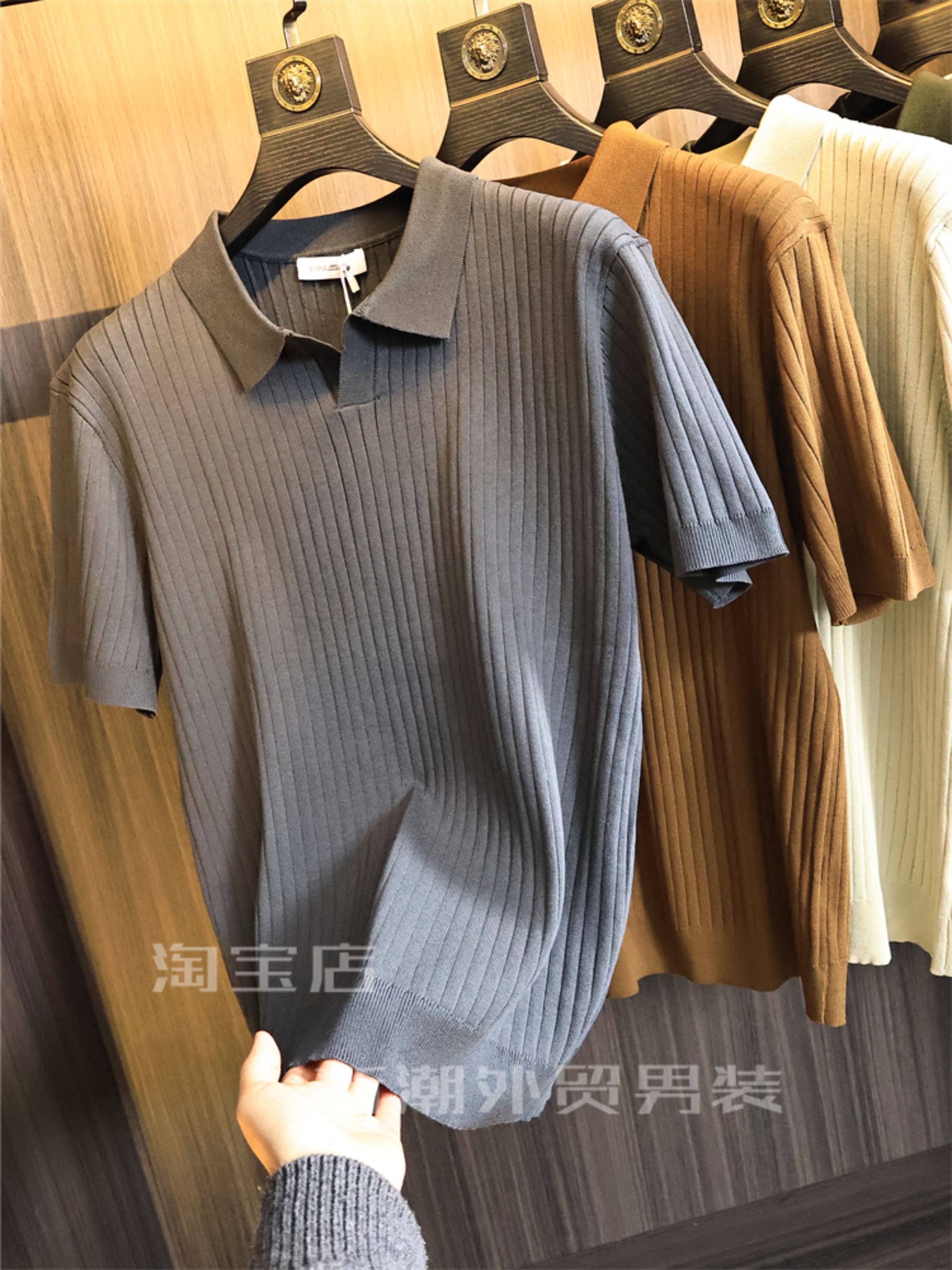 Spanish Surplus Stock! 300 Pieces! Summer Men's High-End Light Business Polo Shirts, High-Density Knit Short-Sleeve Shirts