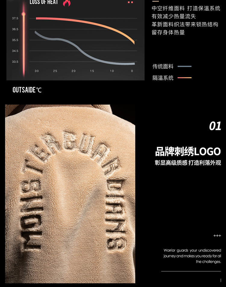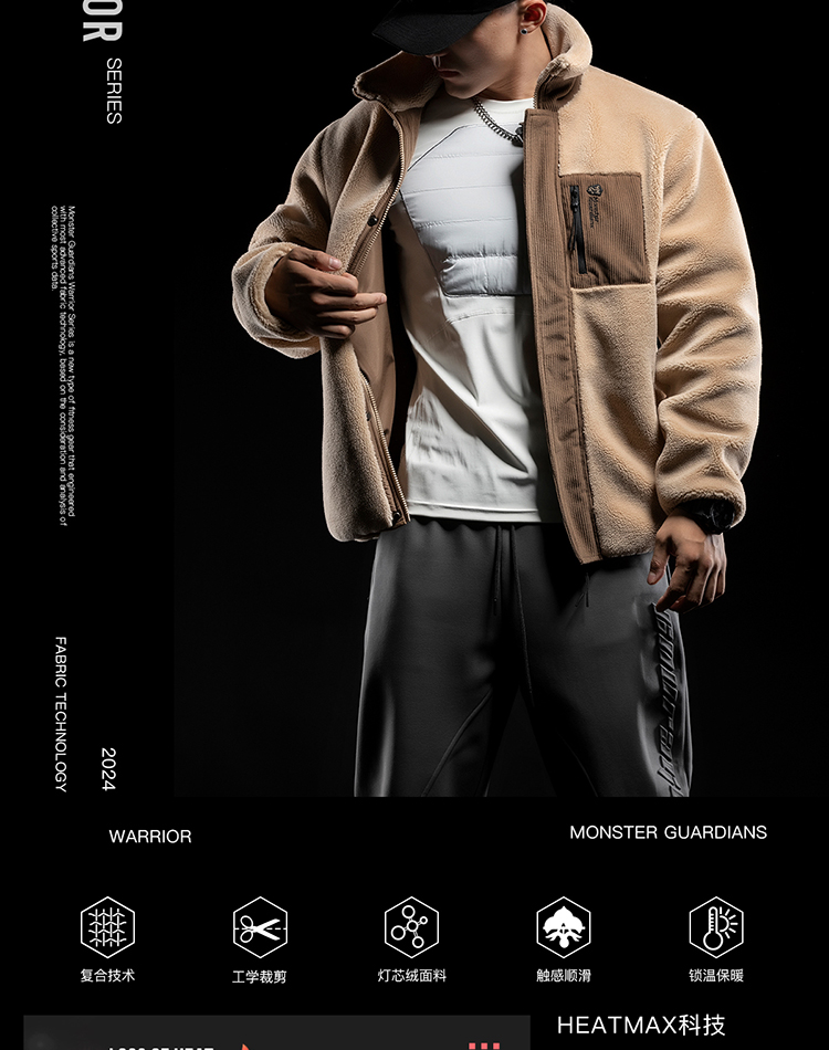 Monster Guardians Brave and Fearless Series Men's Winter Corduroy Windproof and Warm Sports Jacket