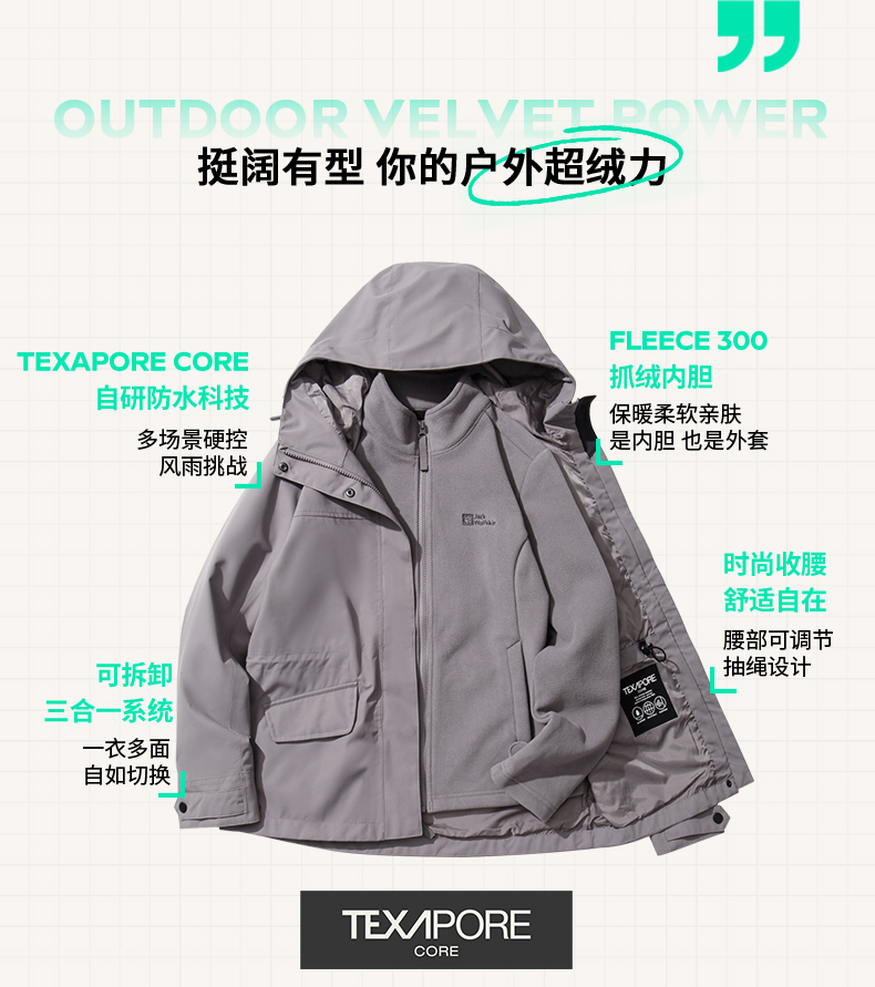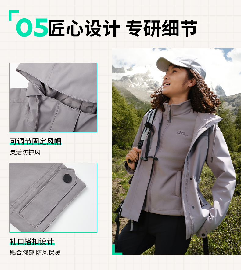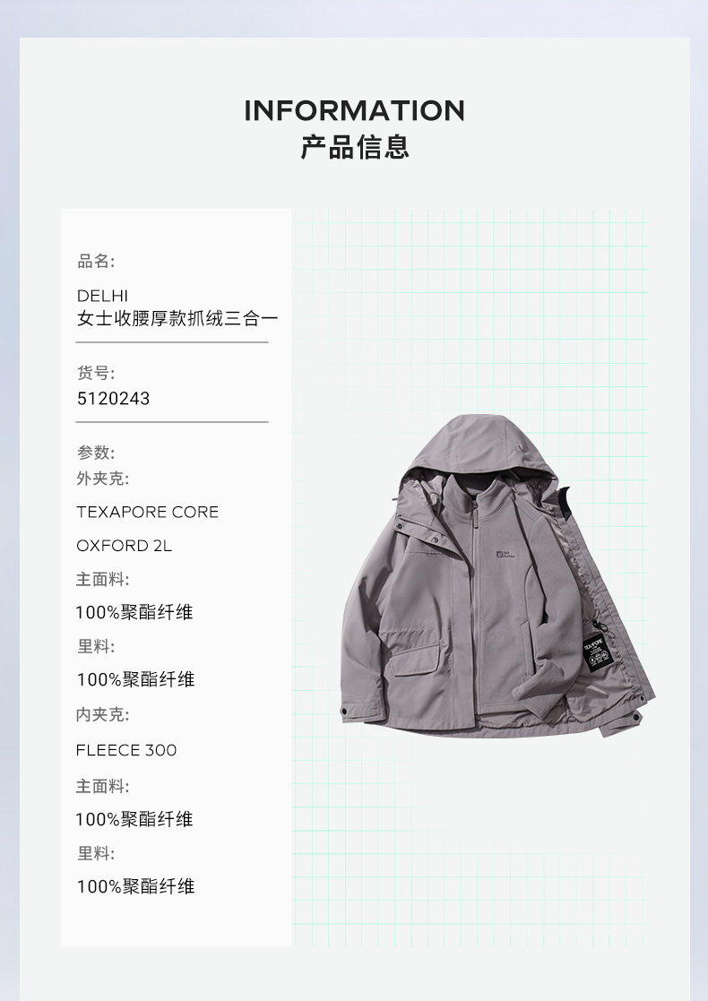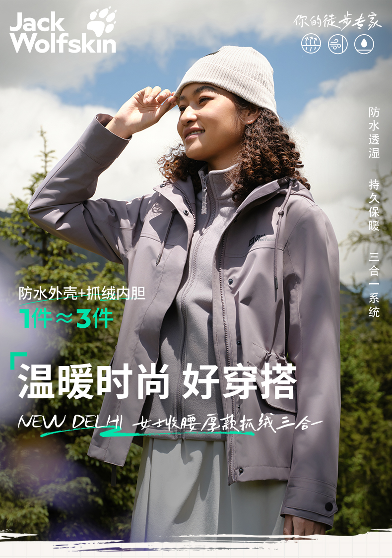 Jackwolfskin Wolf Claw 25 Autumn/Winter New Delhi Women's Waist-Tightening Fleece Three-In-One Jacket 5120243