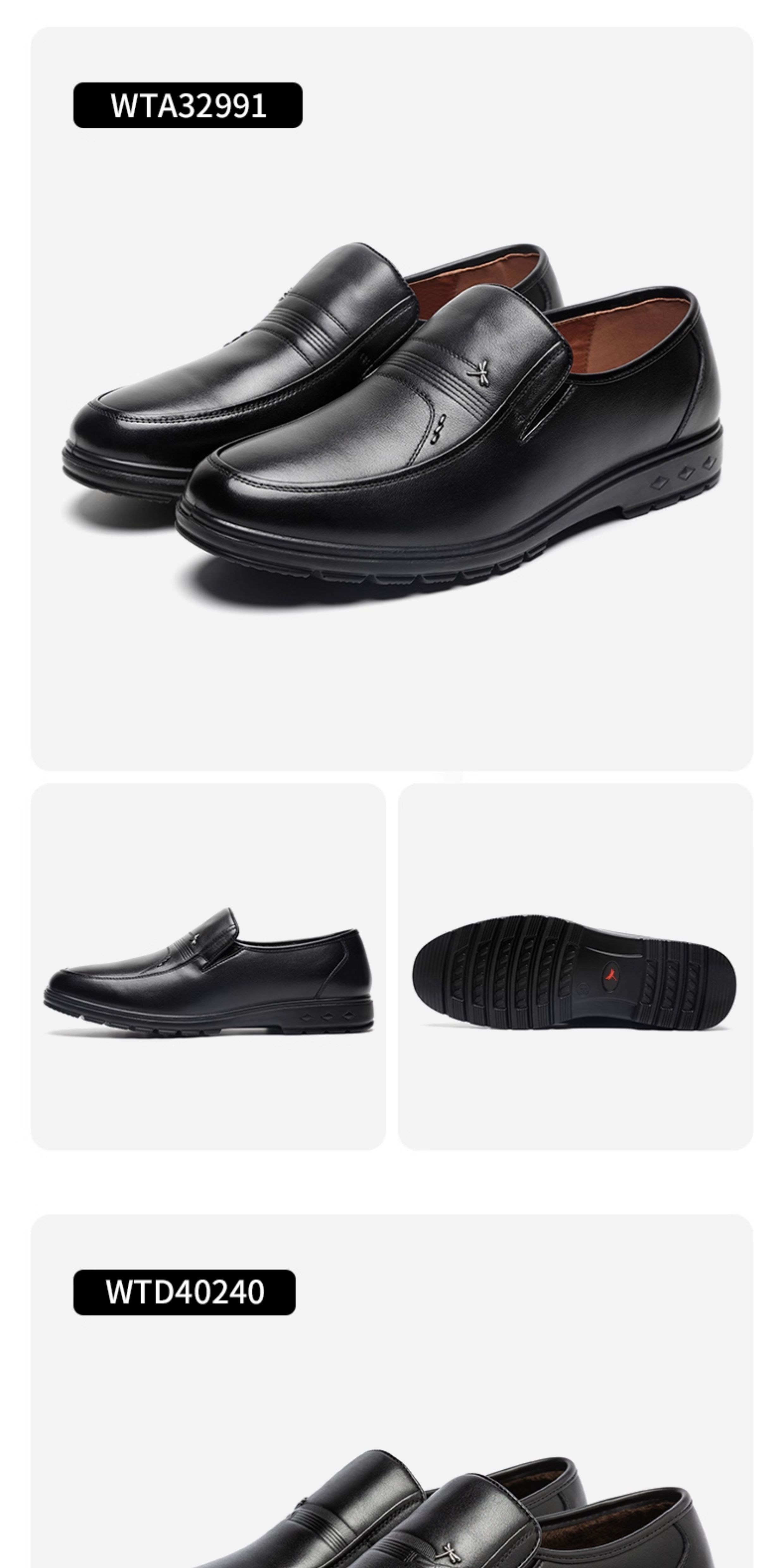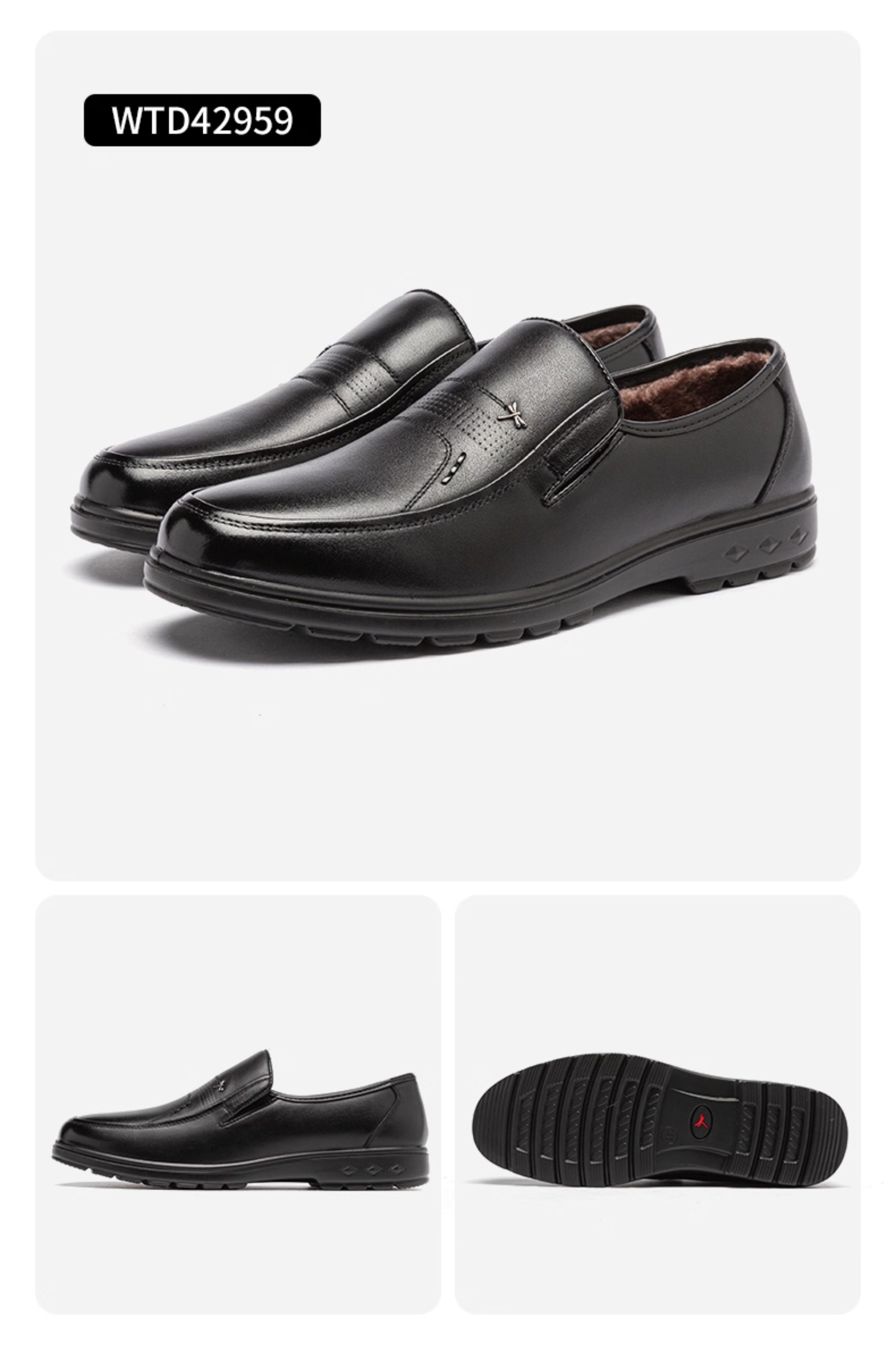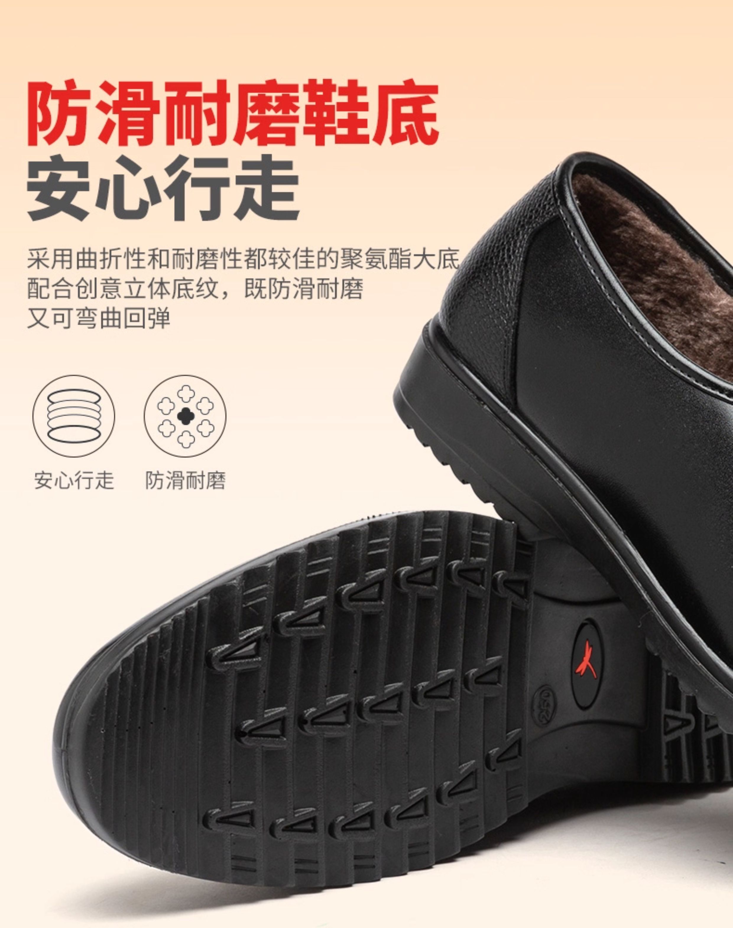 Red Dragonfly Dad Shoes Autumn and Winter Men's Leather Shoes Winter Fleece-Lined Warm Genuine Leather Soft Sole Middle-Aged and Elderly Cotton Shoes for Men