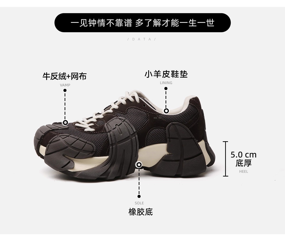 Hong Kong Thick-Soled Height-Increasing Dad Sneakers for Women 2025 Autumn Melard Retro Fashion Lightweight Casual Sports Shoes