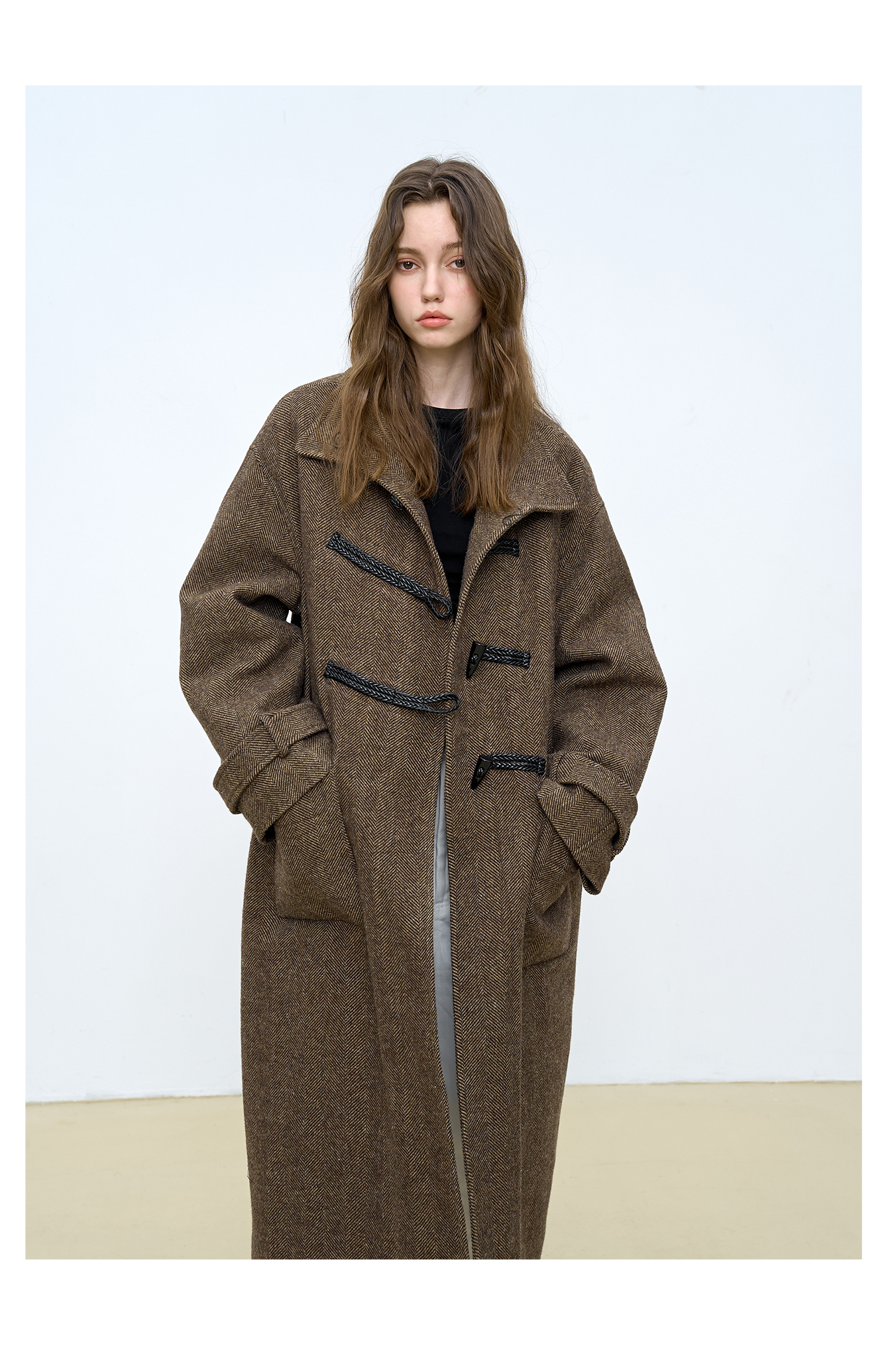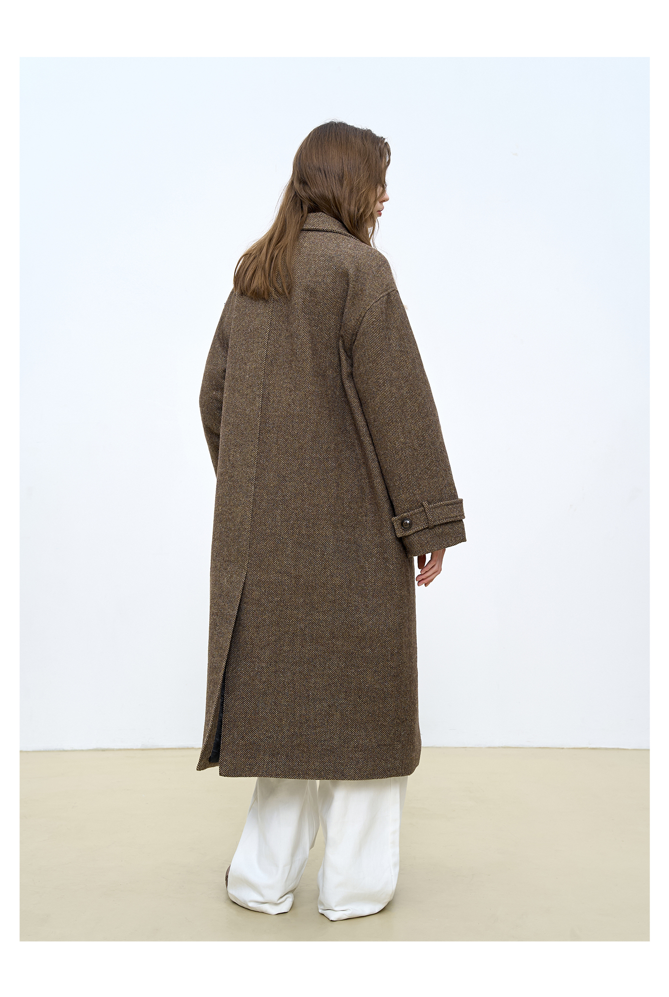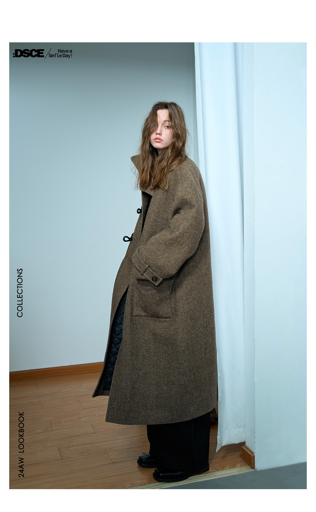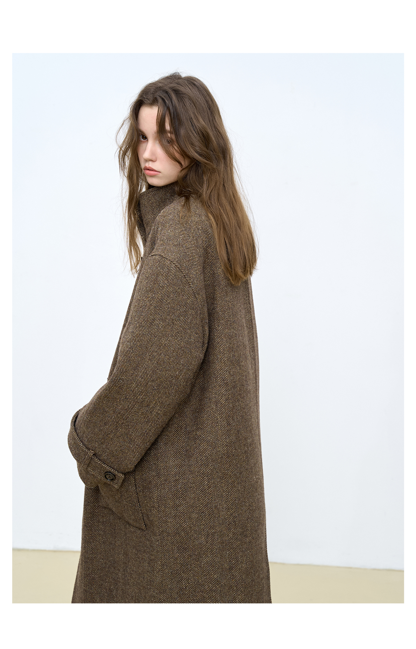 Dailyscene's Simple Stand-Up Collar Herringbone Pattern Long Woolen Coat Is a Winter Essential Outerwear