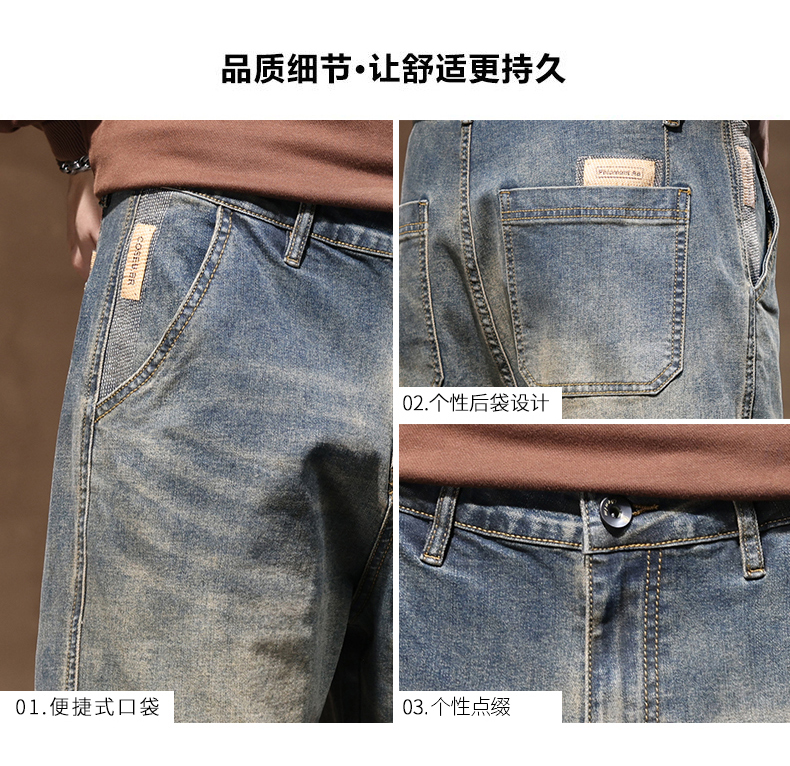 High-End 2025 Autumn New Men's Straight-Leg Loose Vintage Jeans, Autumn and Winter Pants for Men, Spring and Autumn Style