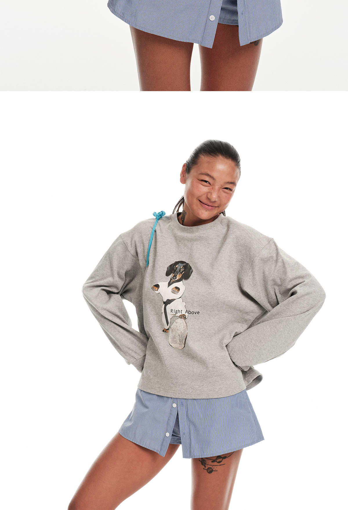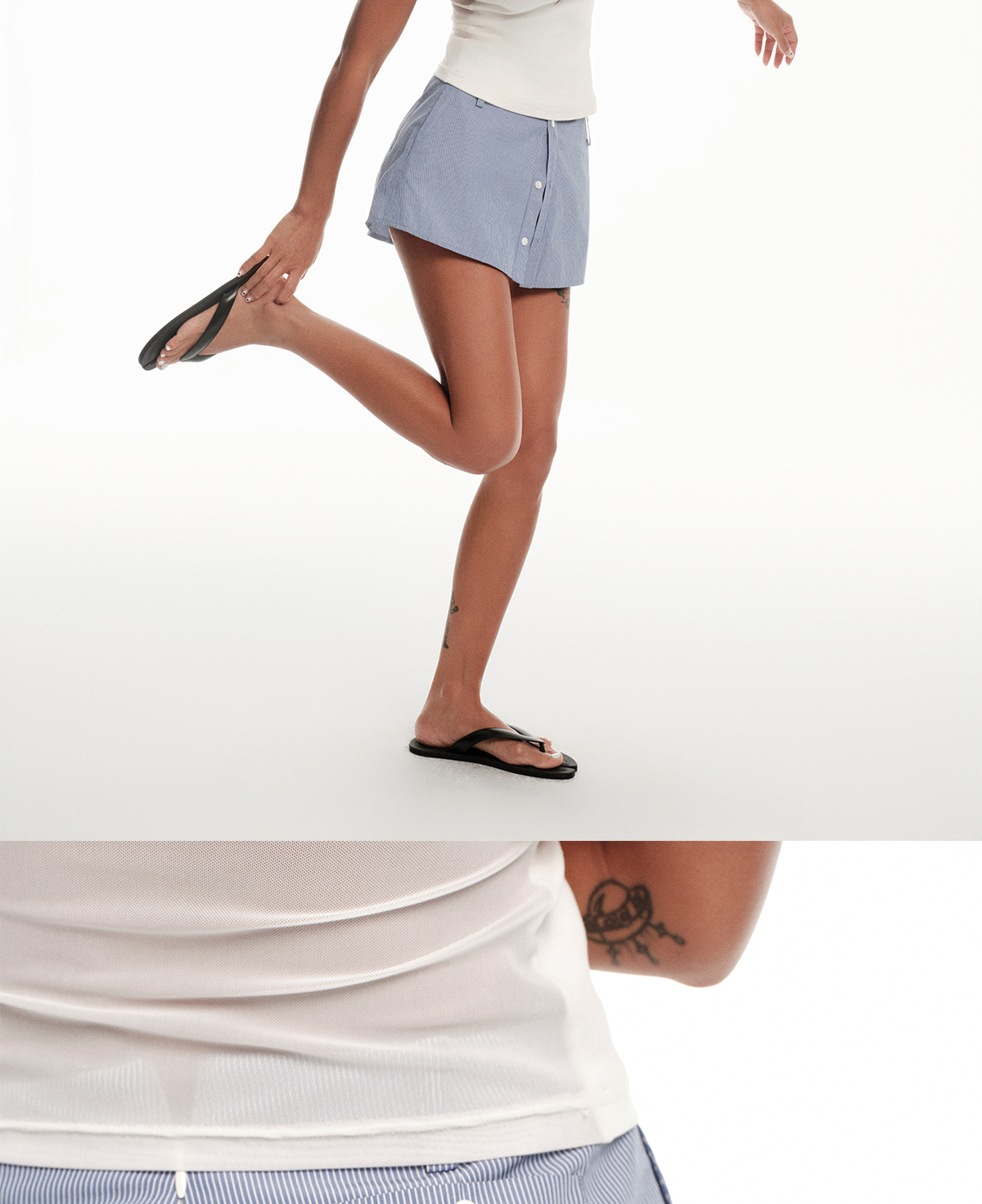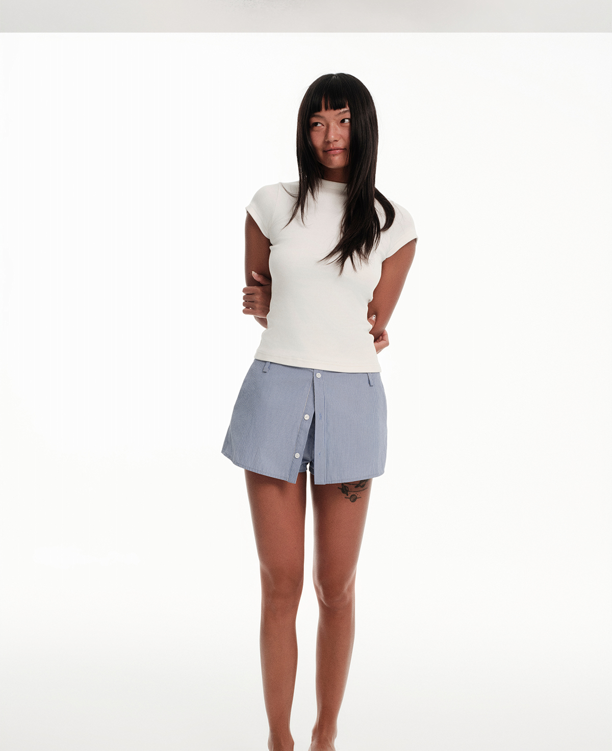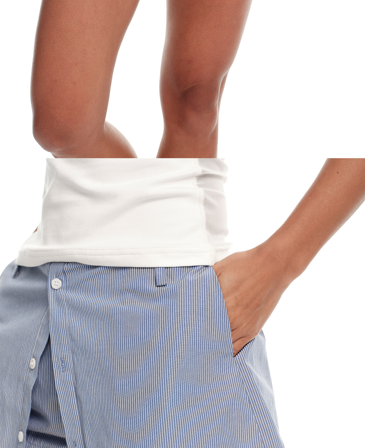 Right Above Blue Striped Skirt Pants with Faux Two-Piece Design, Lined with Buttons, Summer A-Line Shirt Skirt, Short Skirt