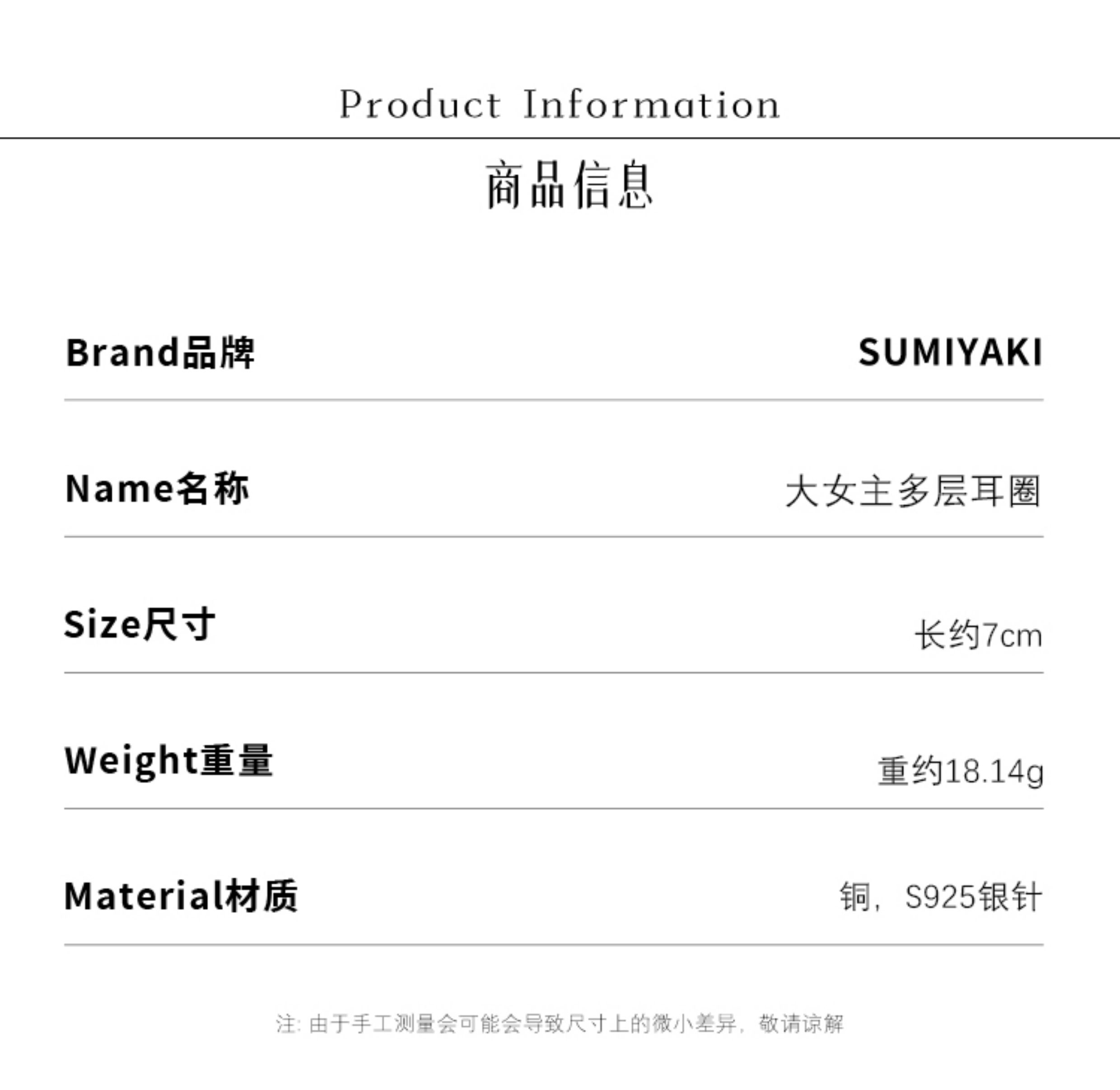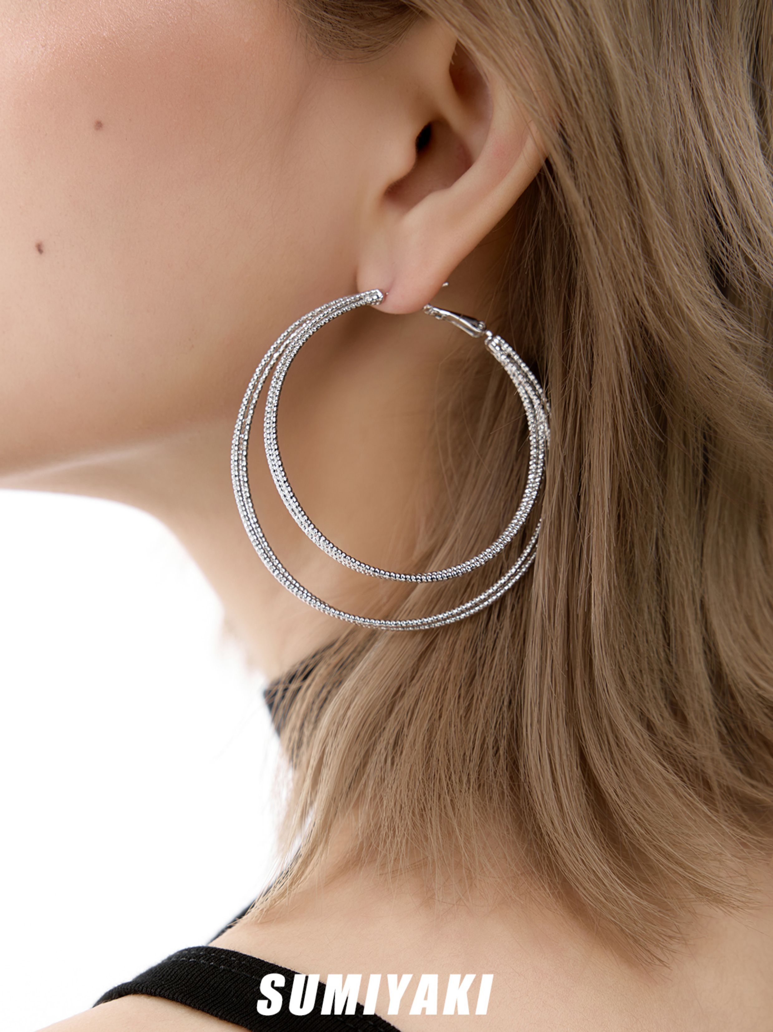 Sumiyaki Big Heroine Multi-Layered Hoop Earrings High-End Simple Hoop Large Earrings Big Hoop Jewelry Makes Face Look Smaller and Slimmer Gift