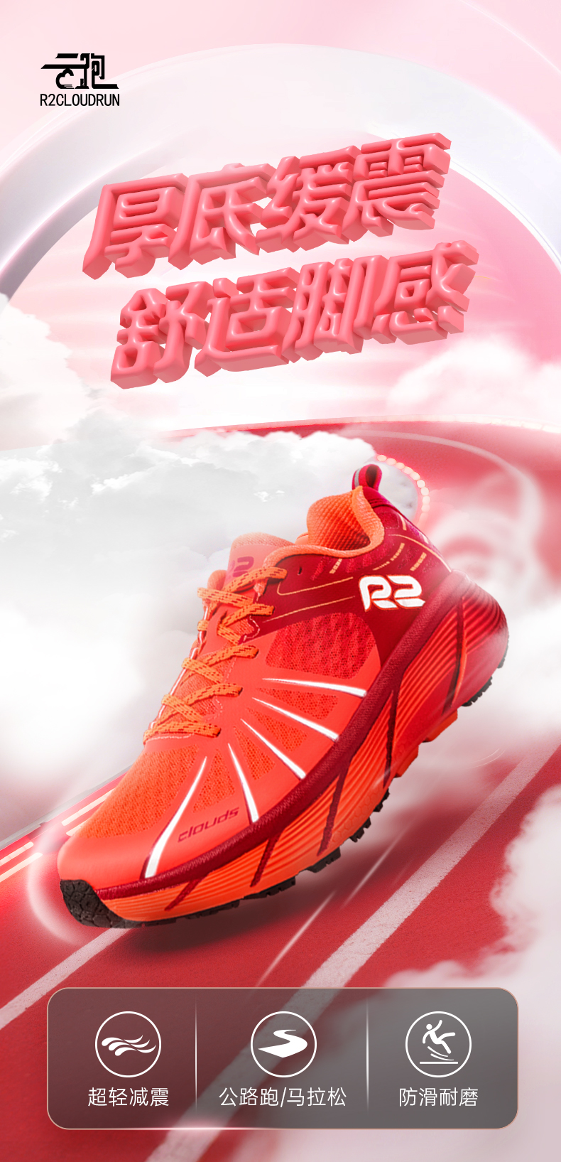 R2Cloudrun Cloud Running New Model Running Shoes Marathon Ultra-Light Shock-Absorbing Professional Sports Shoes Training Jump Rope Shoes for Men and Women