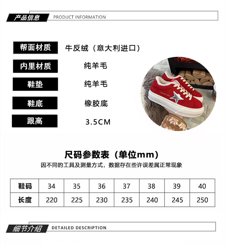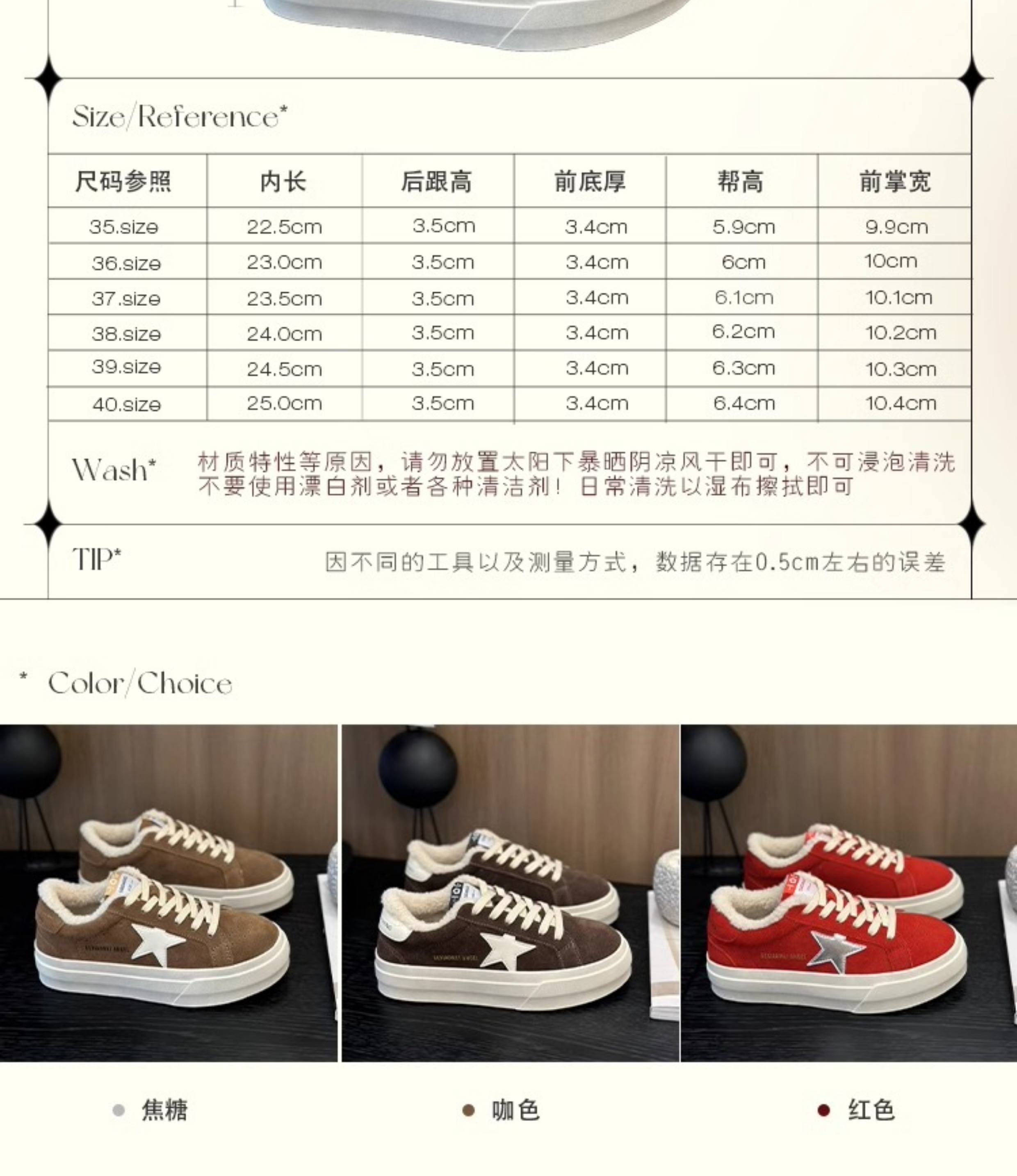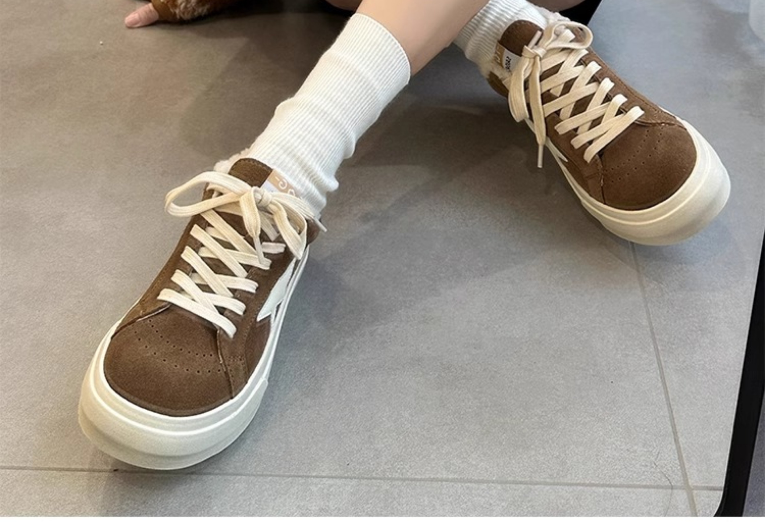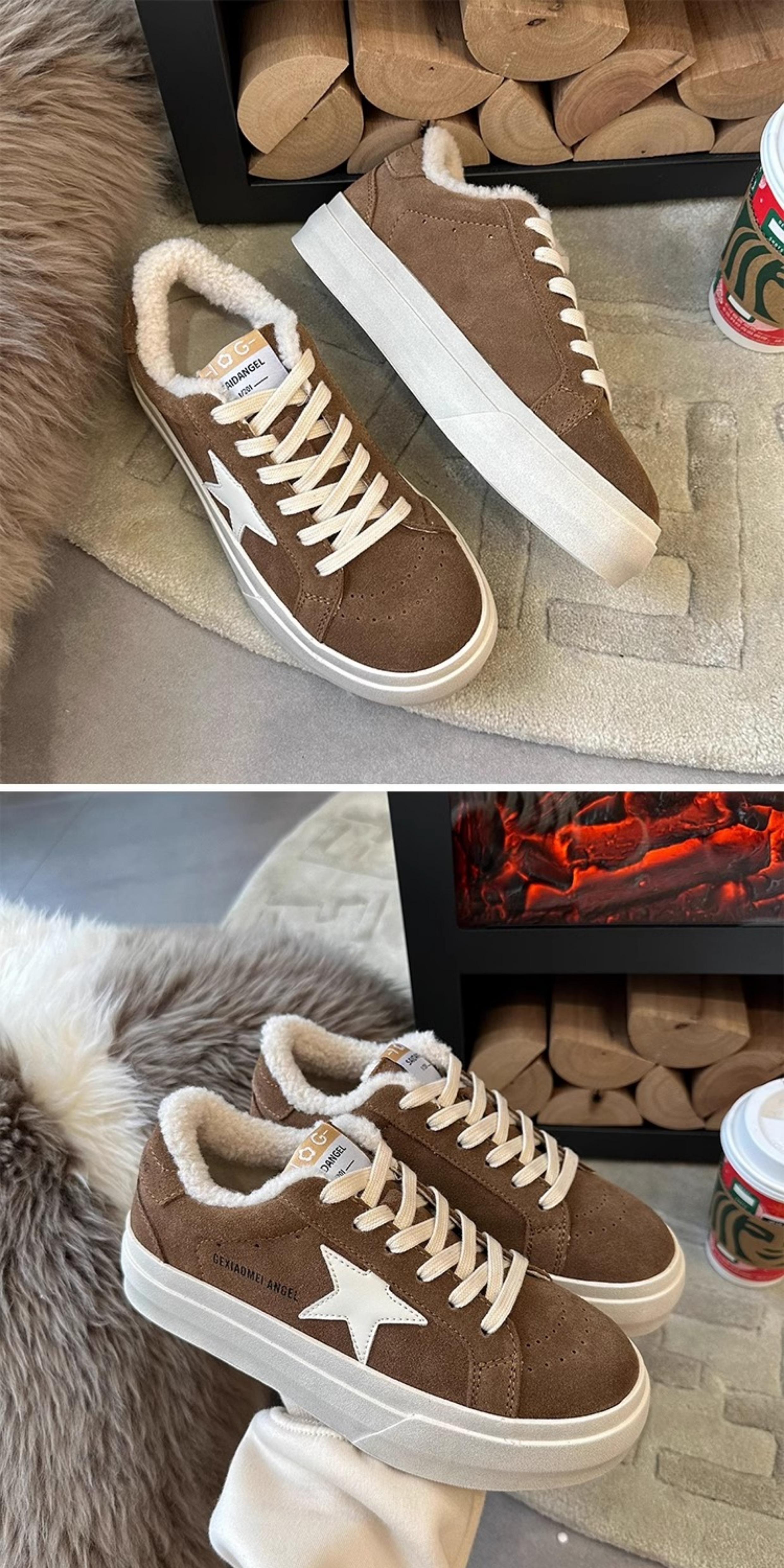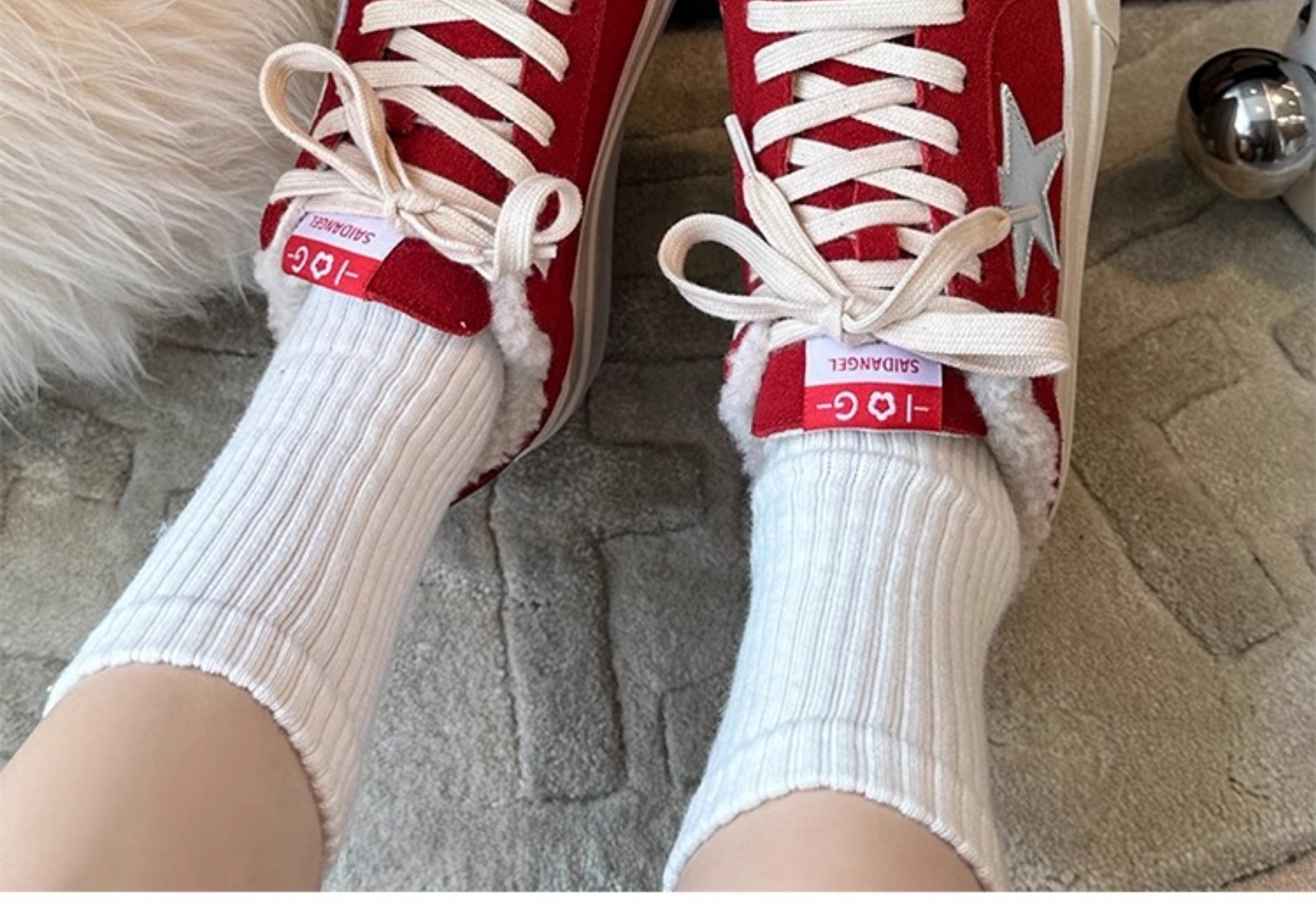 Hong Kong Genuine Leather Lamb Wool Star Shoes for Women 2025 New Winter Fleece-Lined Sports Casual Shoes Round Toe Lace-Up Sneakers